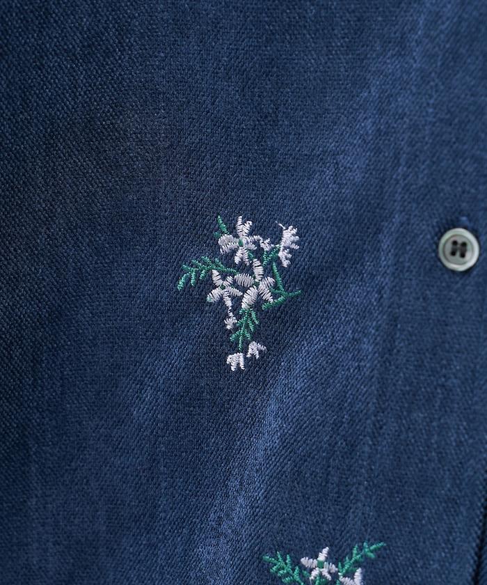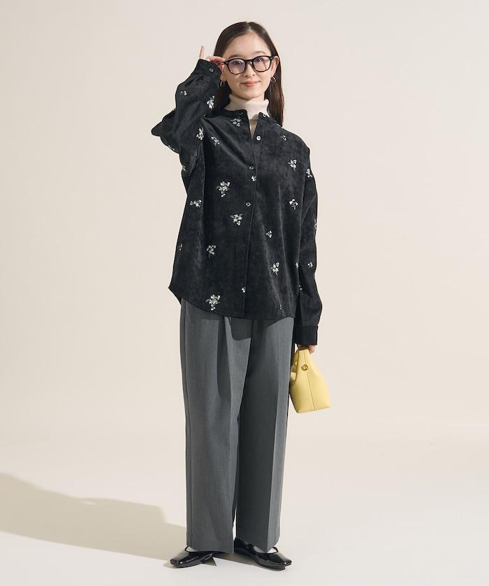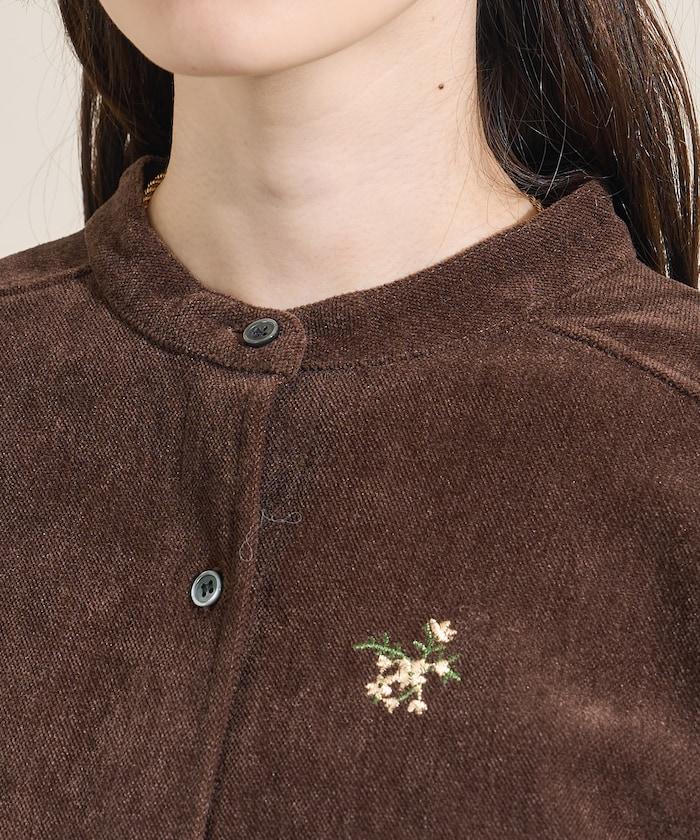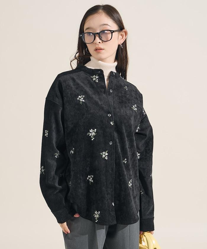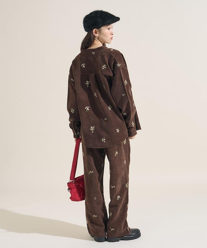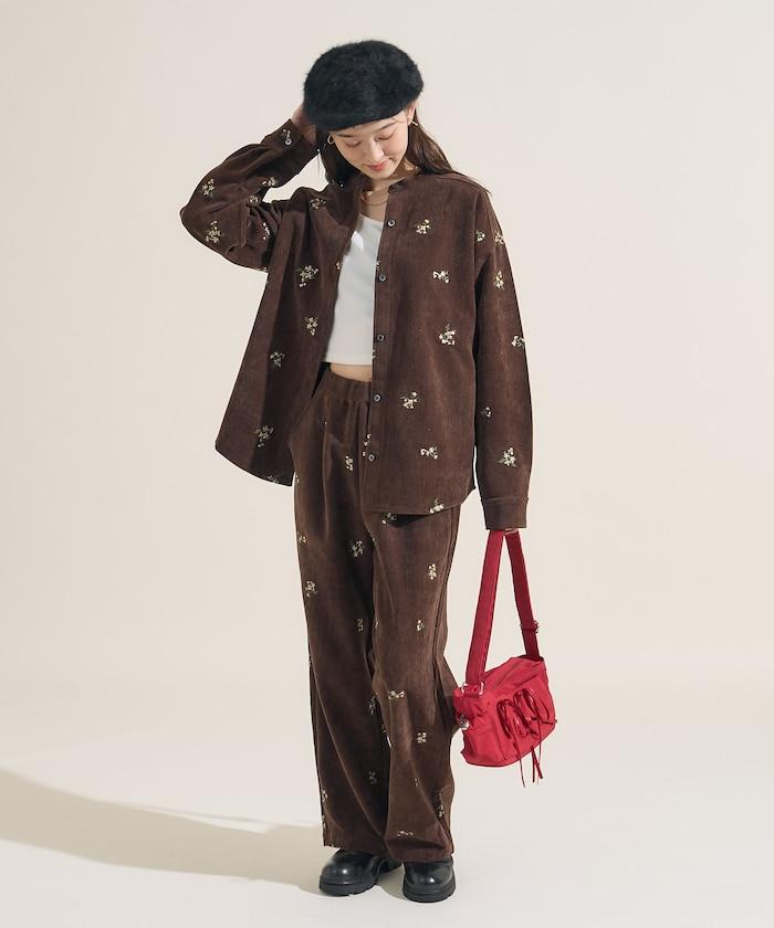 仿天鵝絨平紋燈芯絨小花圖案襯衫<可搭配套裝>