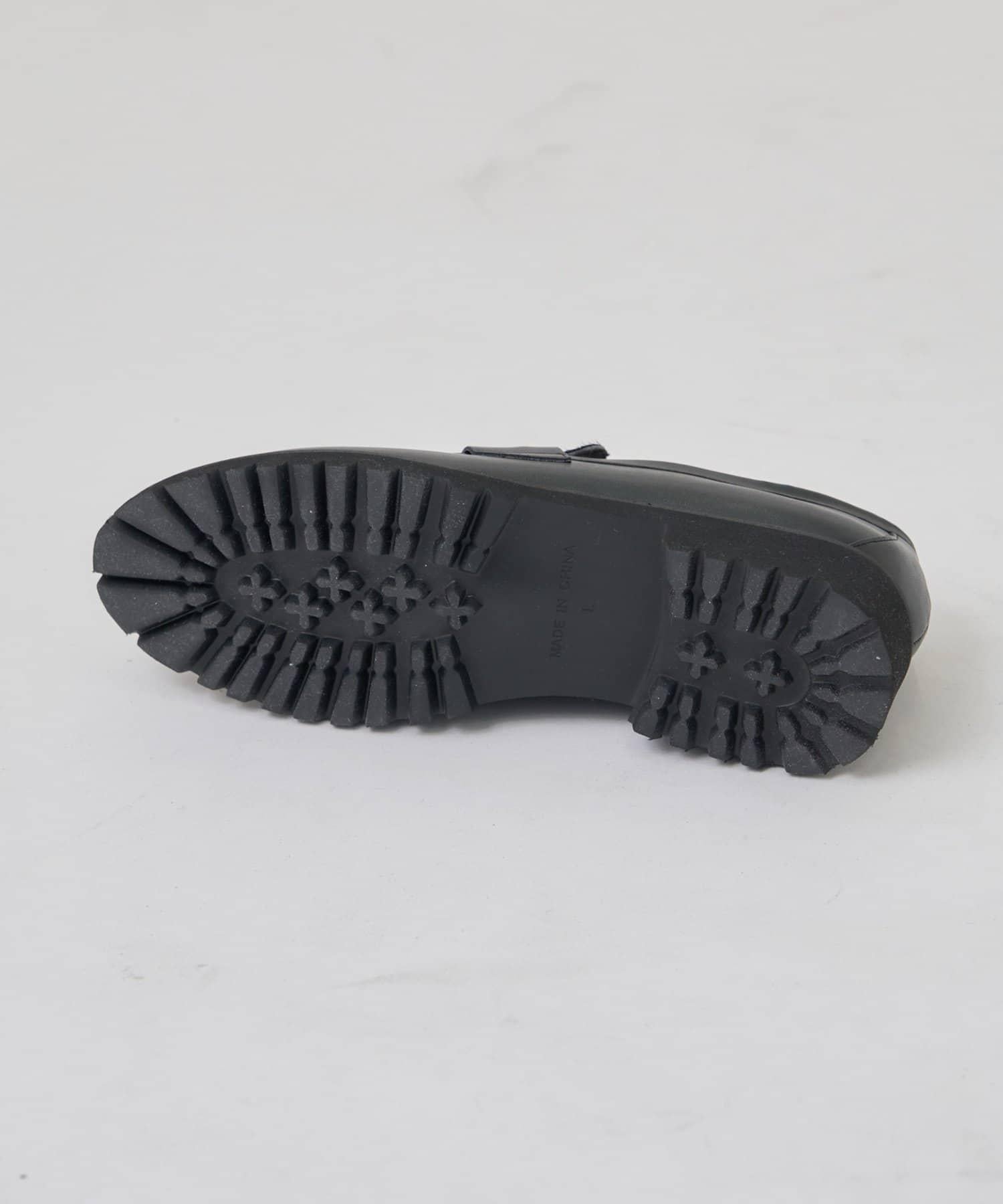 這款樂福鞋採用簡潔的皮革和時尚的 harraco 材料製成,充滿了季節感和優雅感。