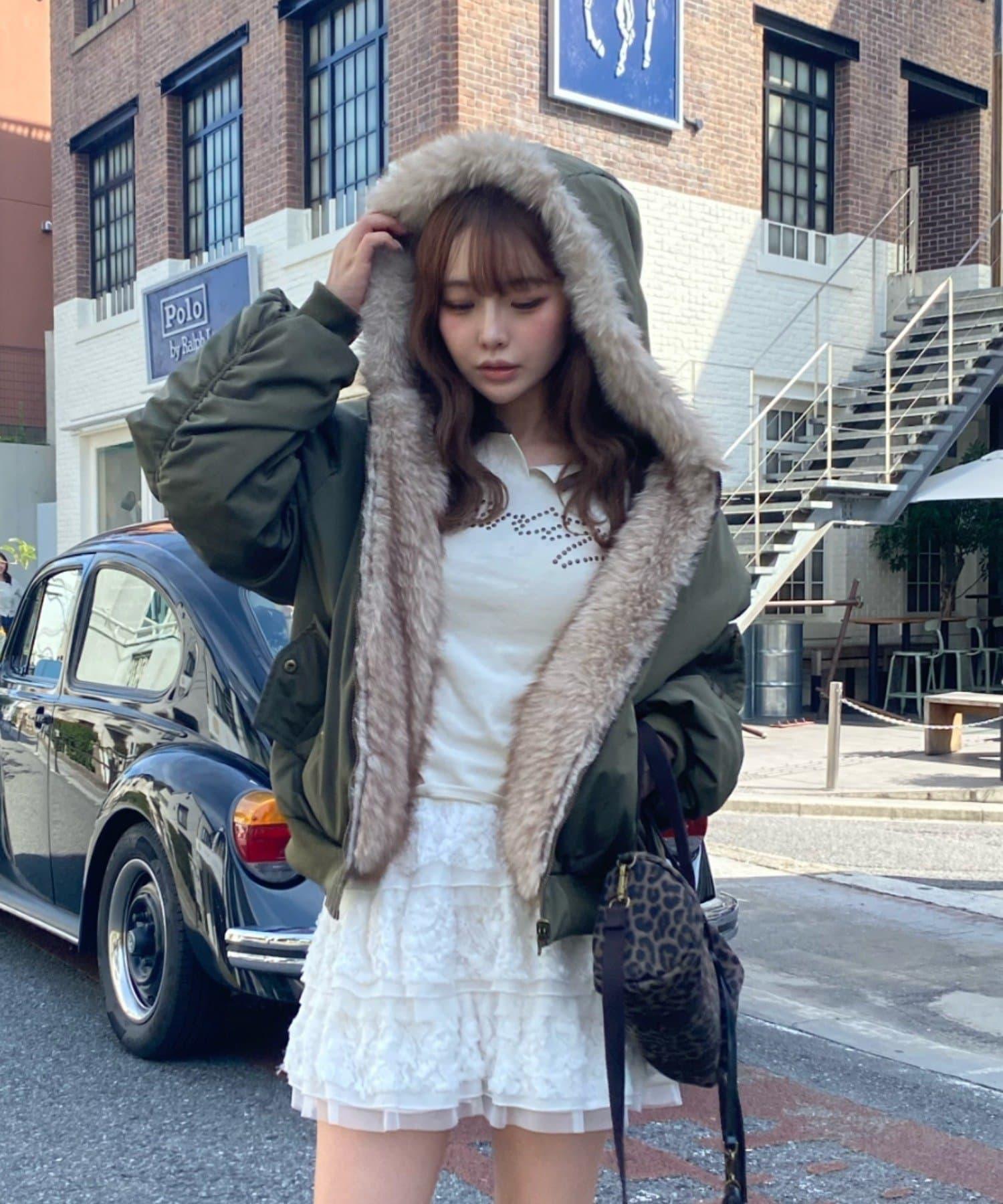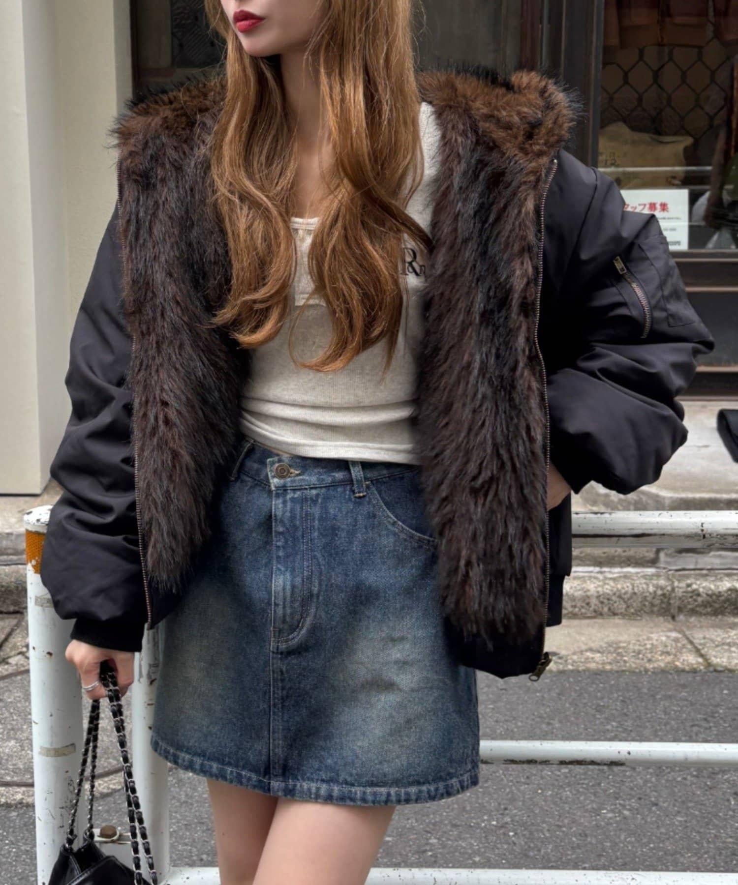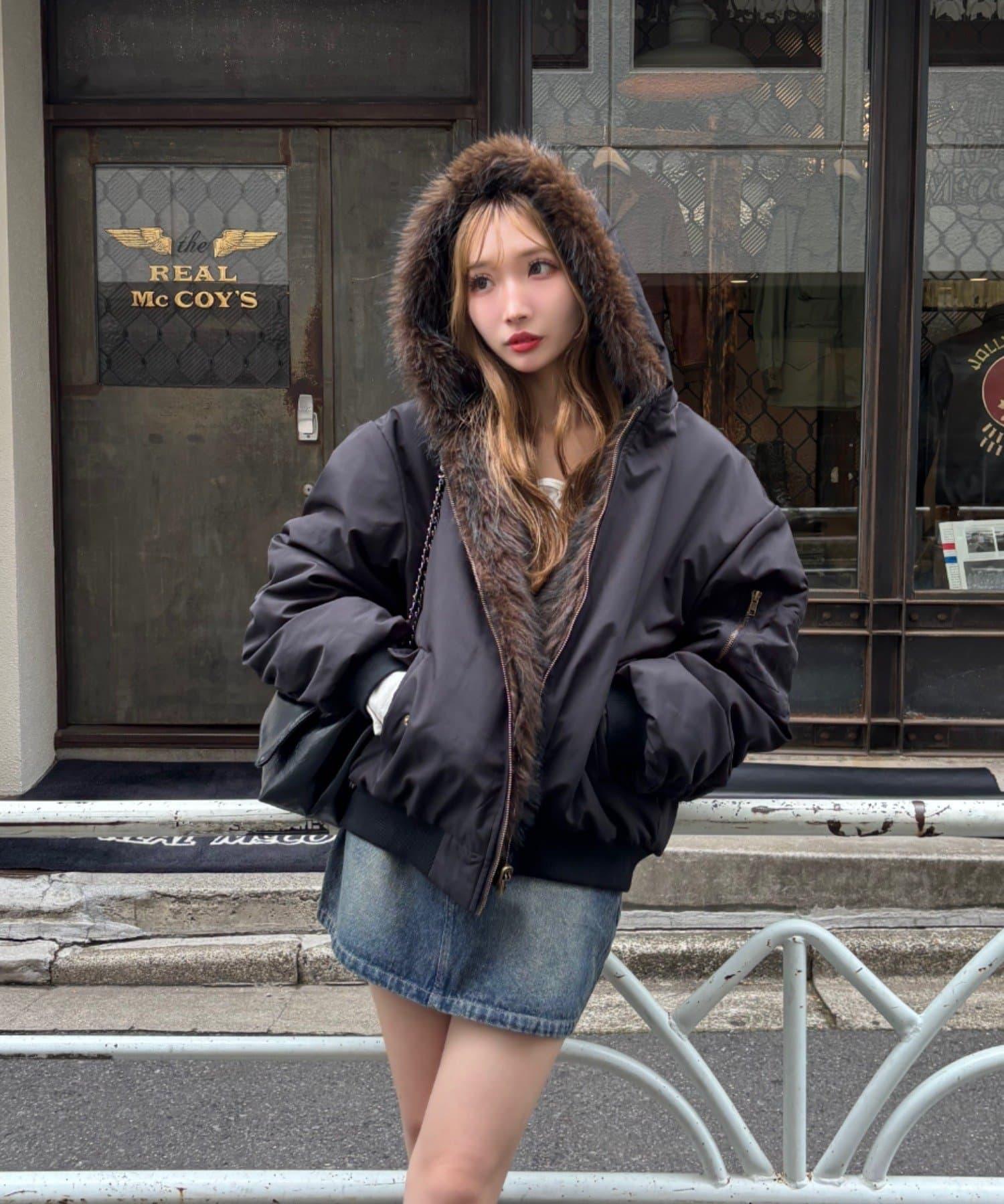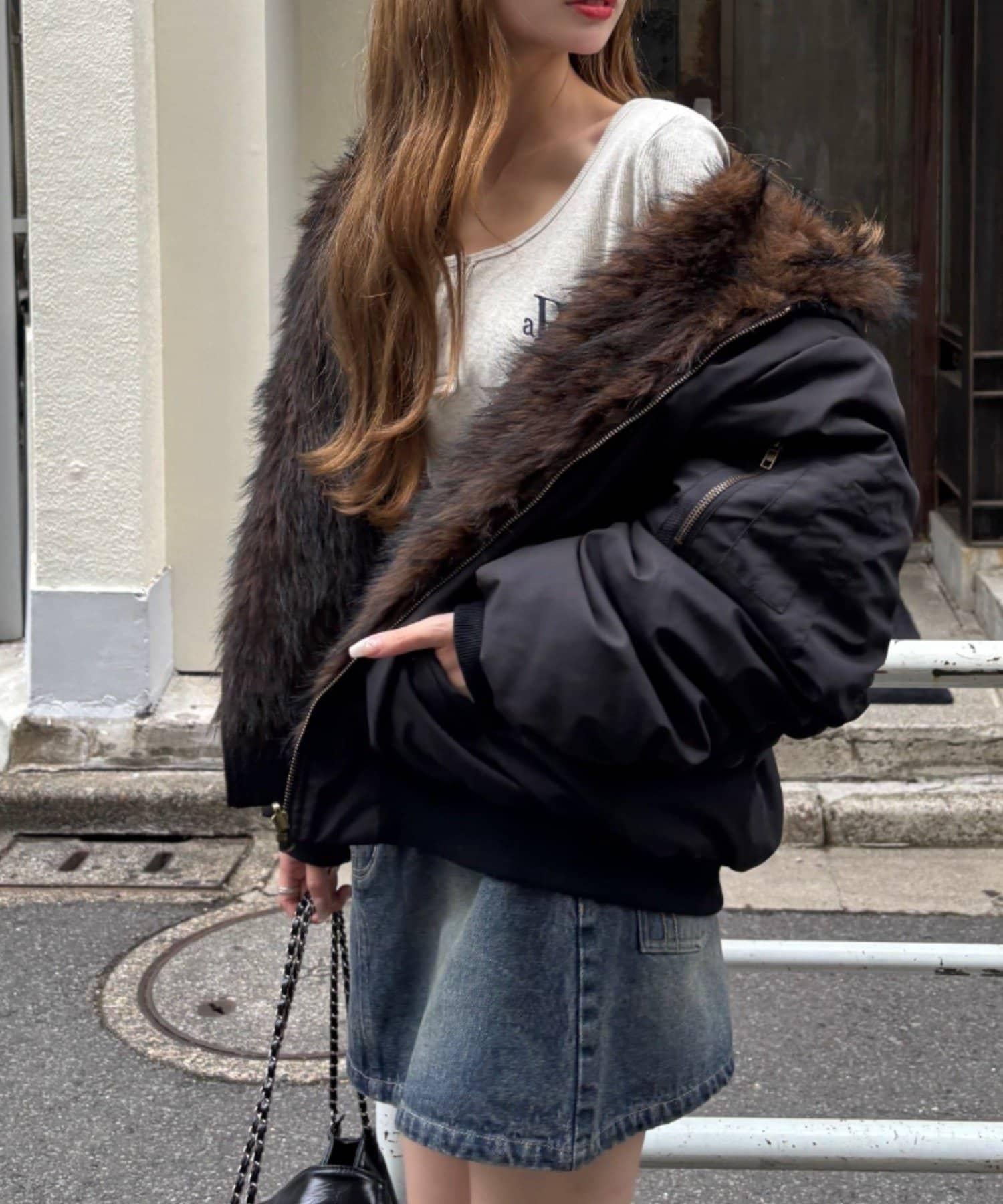 它既可以作為 MA-1 休閒款式穿著,也可以將毛皮朝外,打造出更優雅的造型。