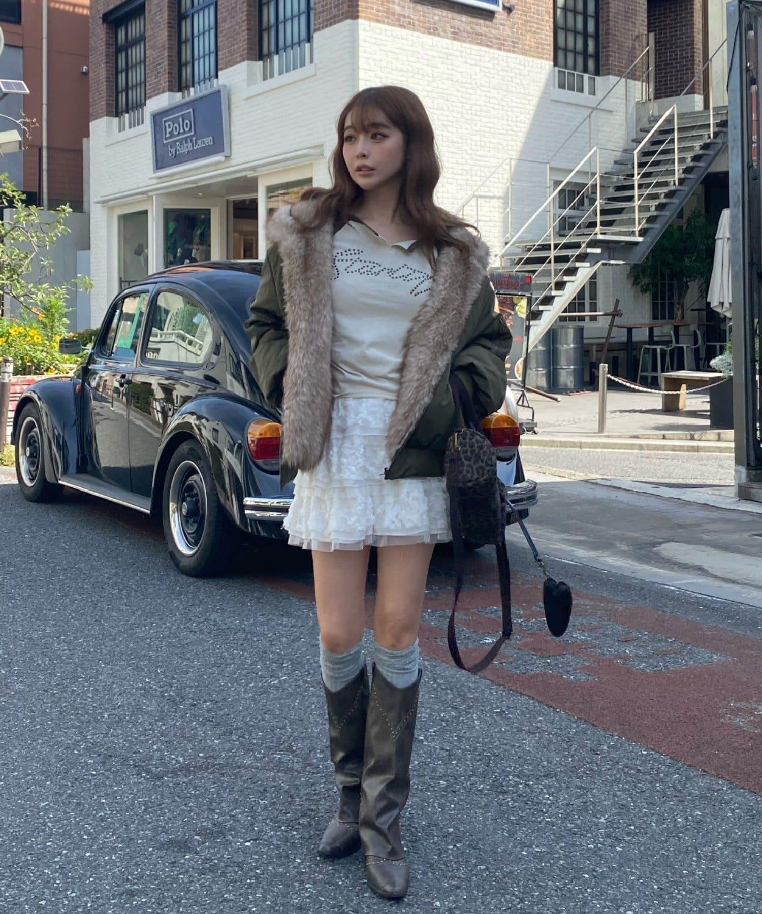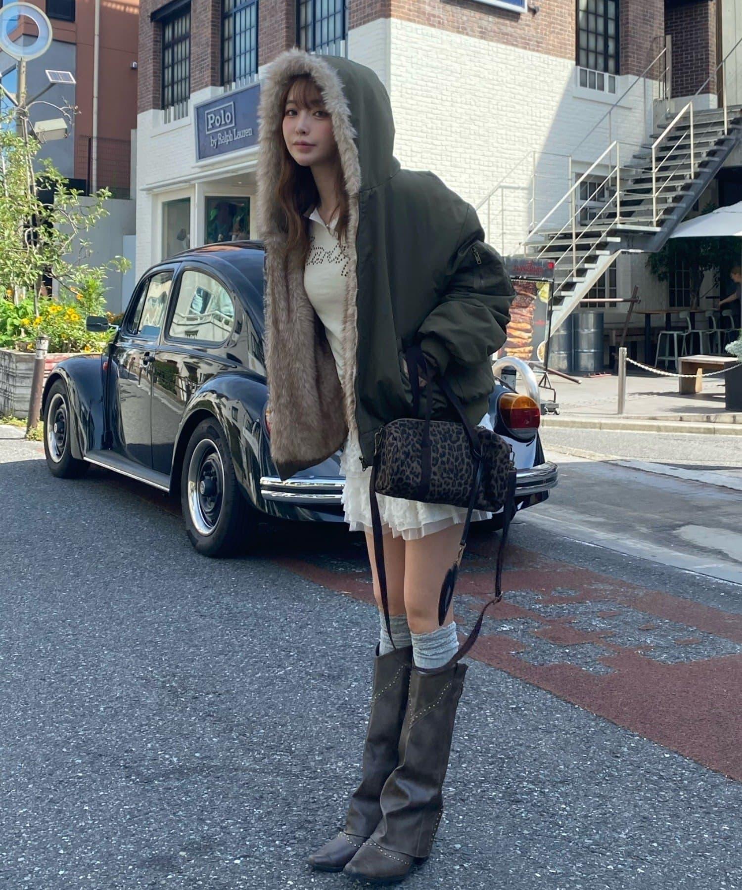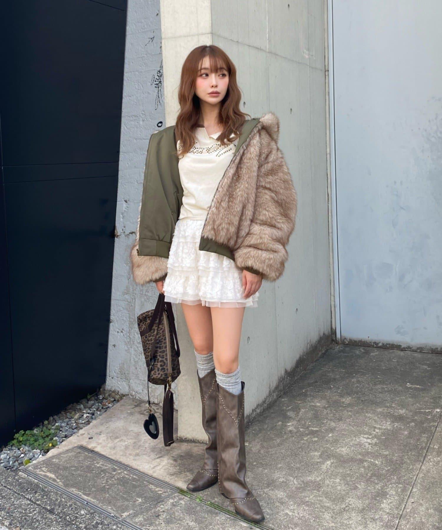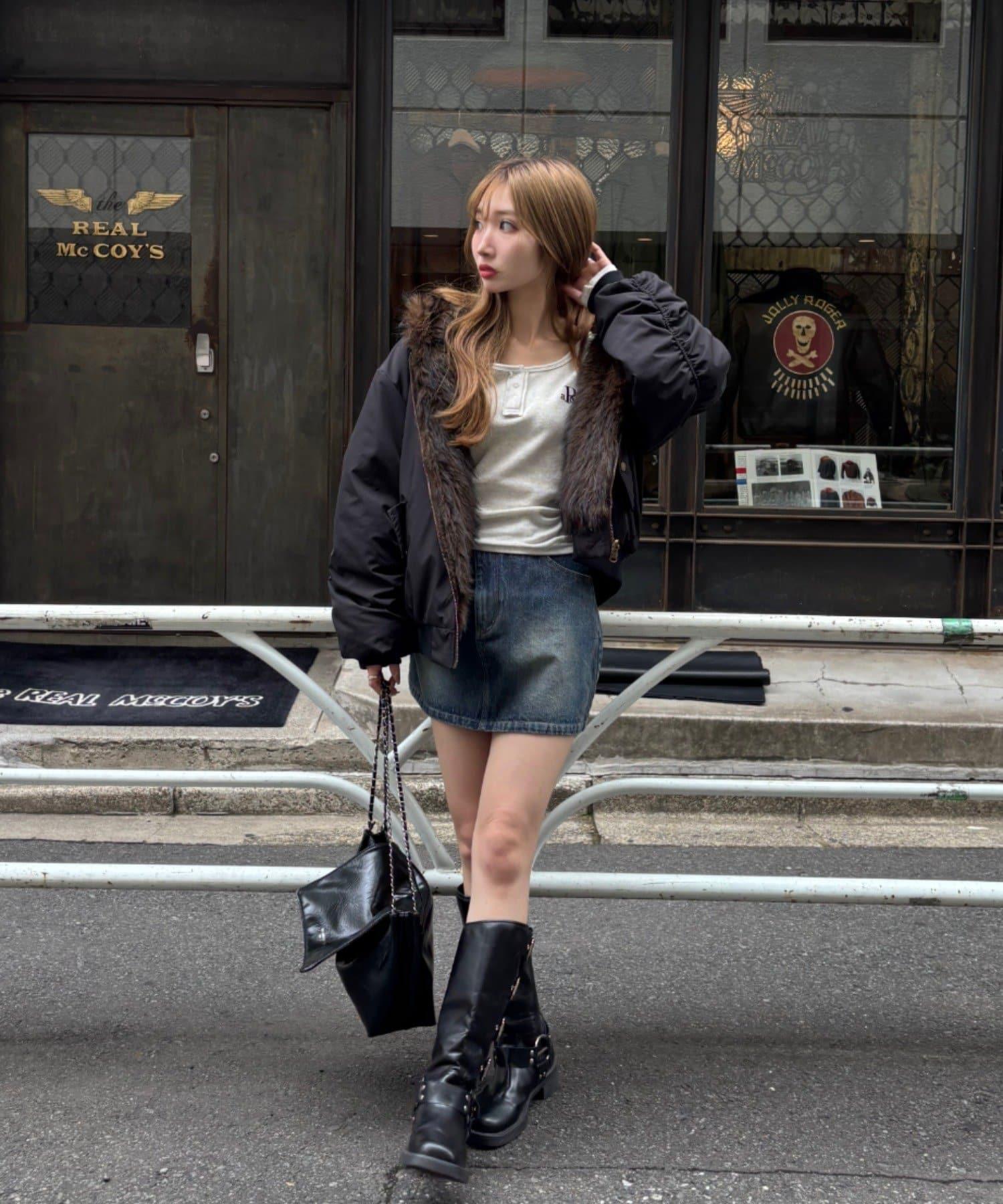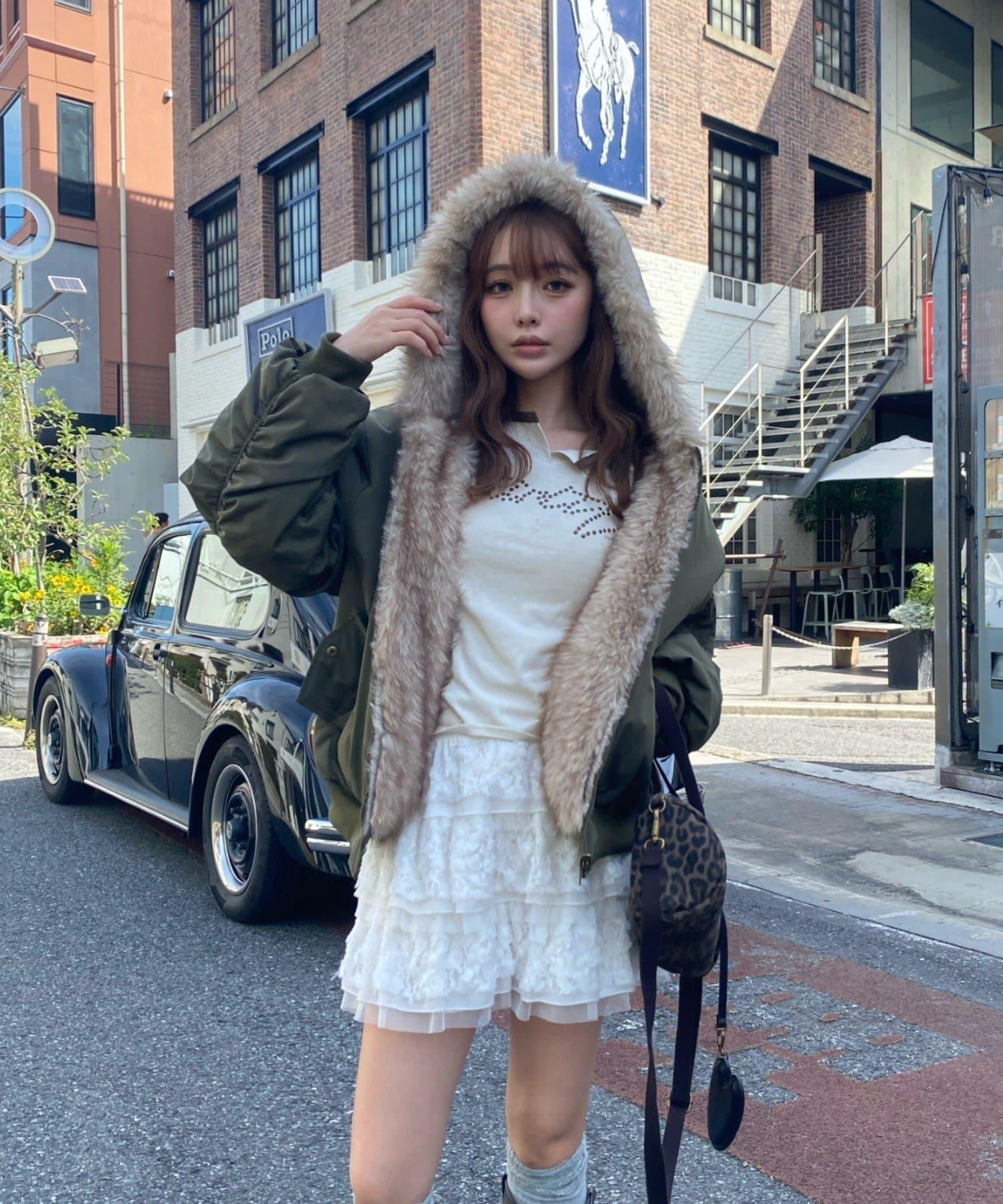 它既可以作為 MA-1 休閒款式穿著,也可以將毛皮朝外,打造出更優雅的造型。