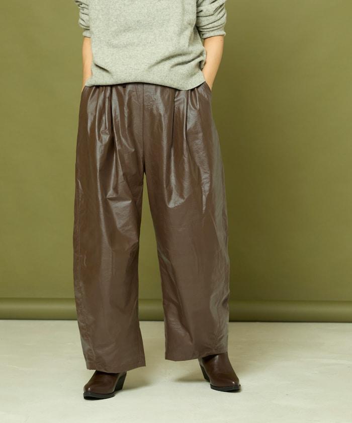 採用仿皮面料製成的寬鬆長褲,即使天氣依然炎熱,也能讓您盡享秋冬氛圍。