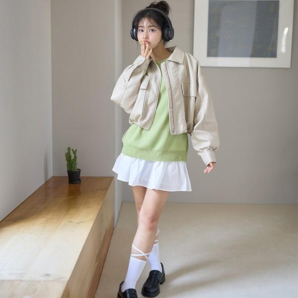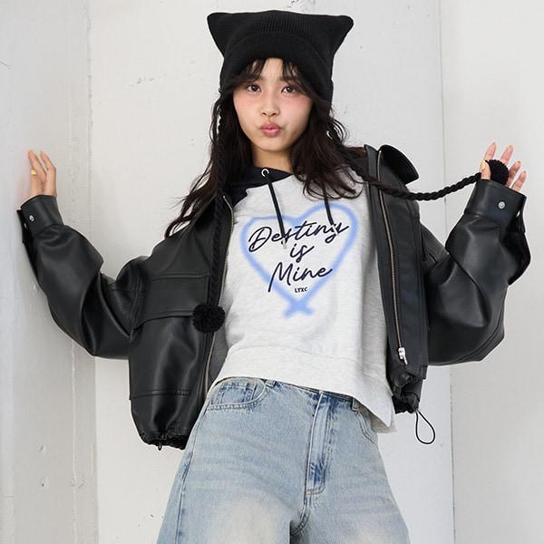 可愛的皮質寬鬆上衣,盡顯淑女硬朗氣質。