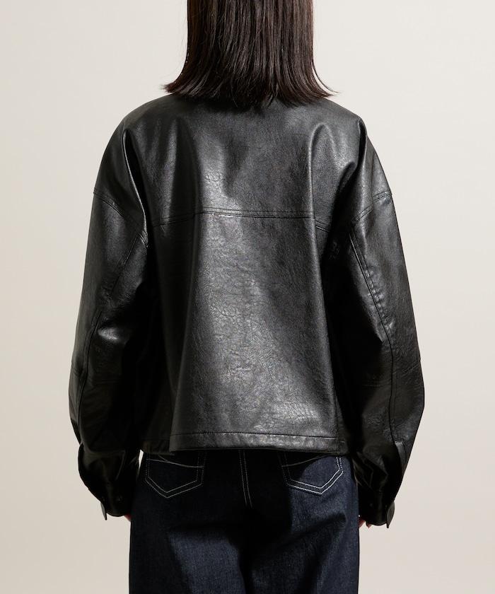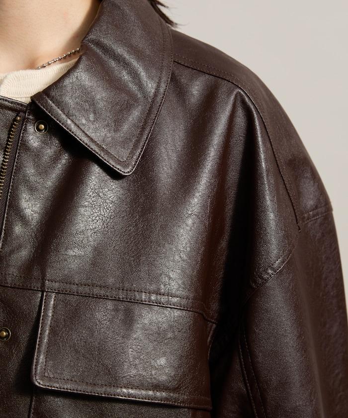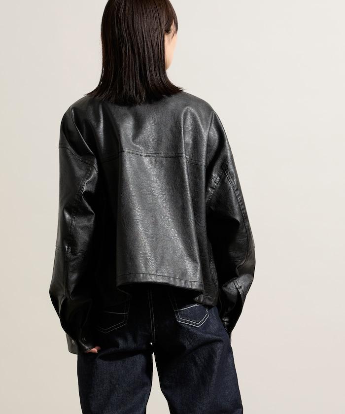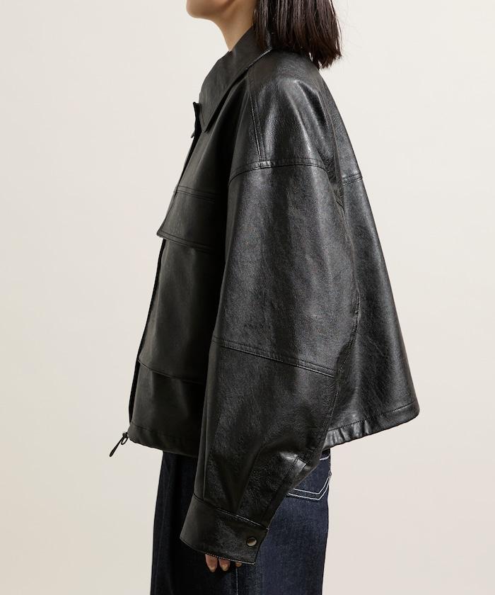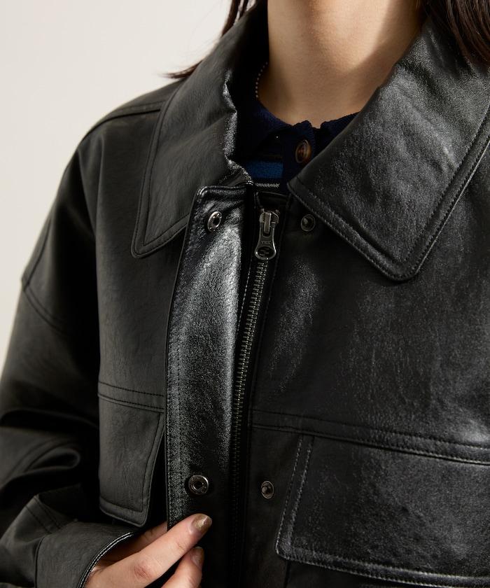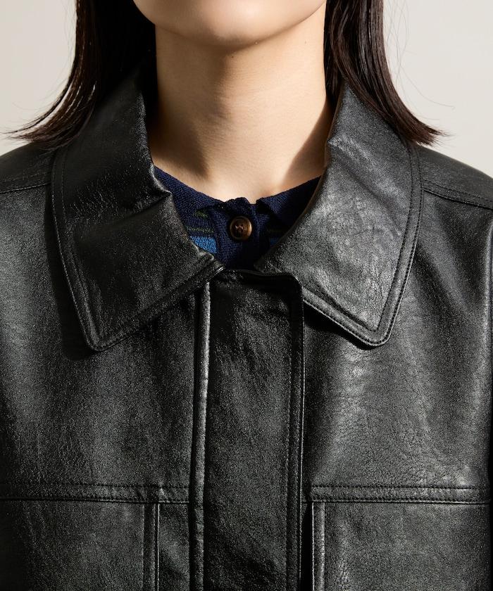這是一款時髦的短款皮革長罩衫,靈感源自復古服裝中的男士大廓形長罩衫。