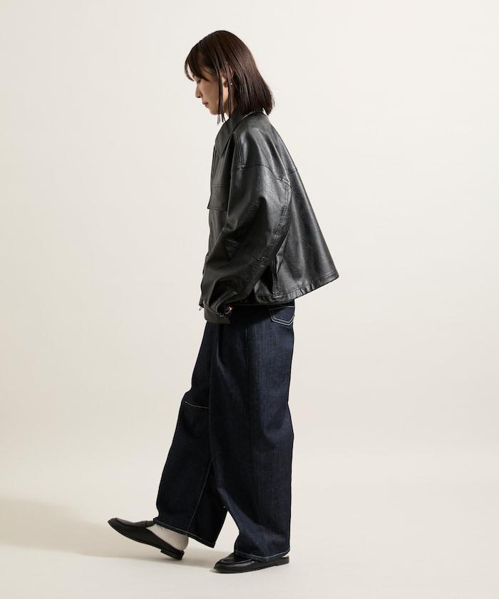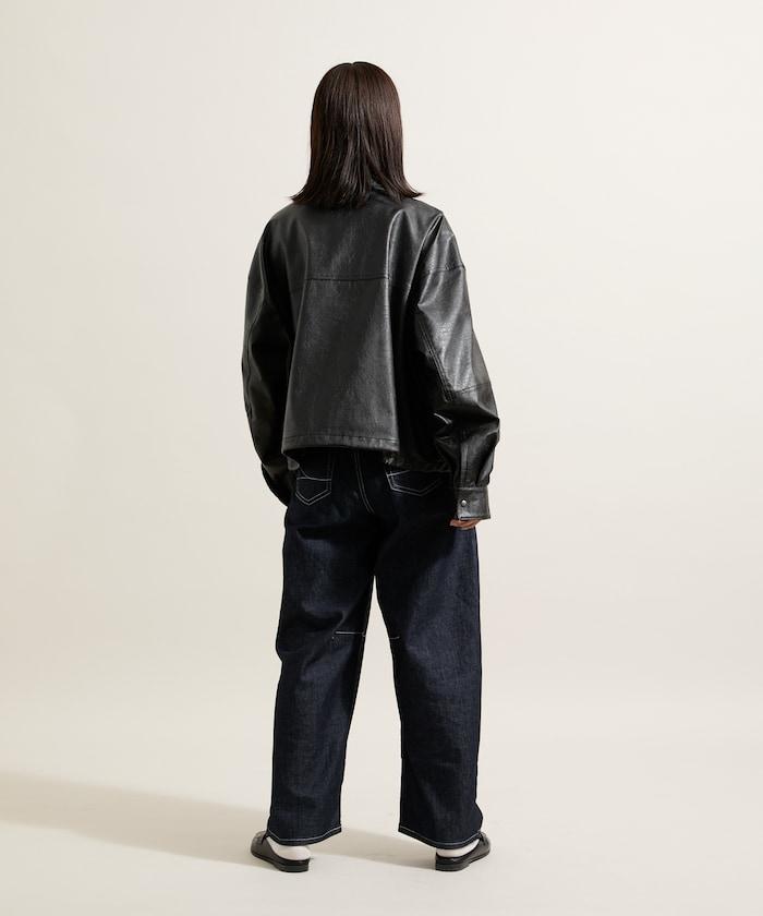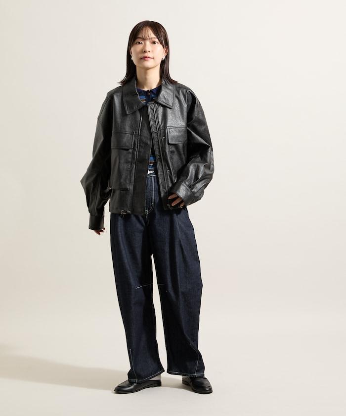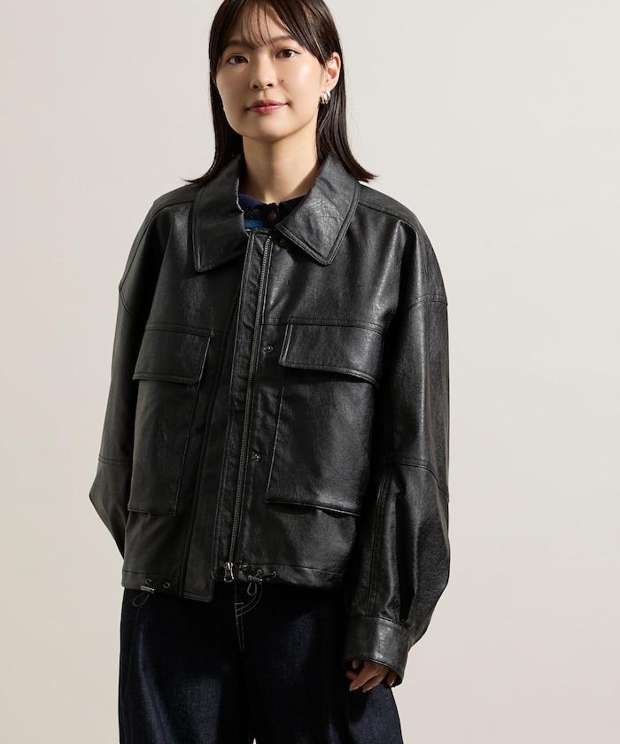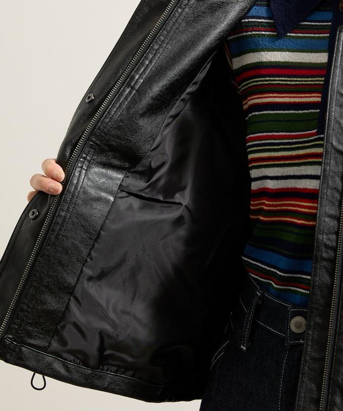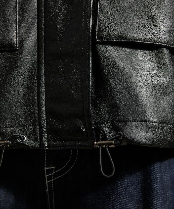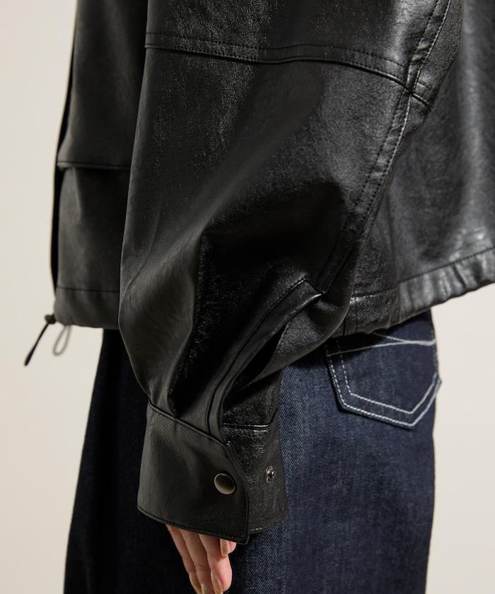 這是一款時髦的短款皮革長罩衫,靈感源自復古服裝中的男士大廓形長罩衫。