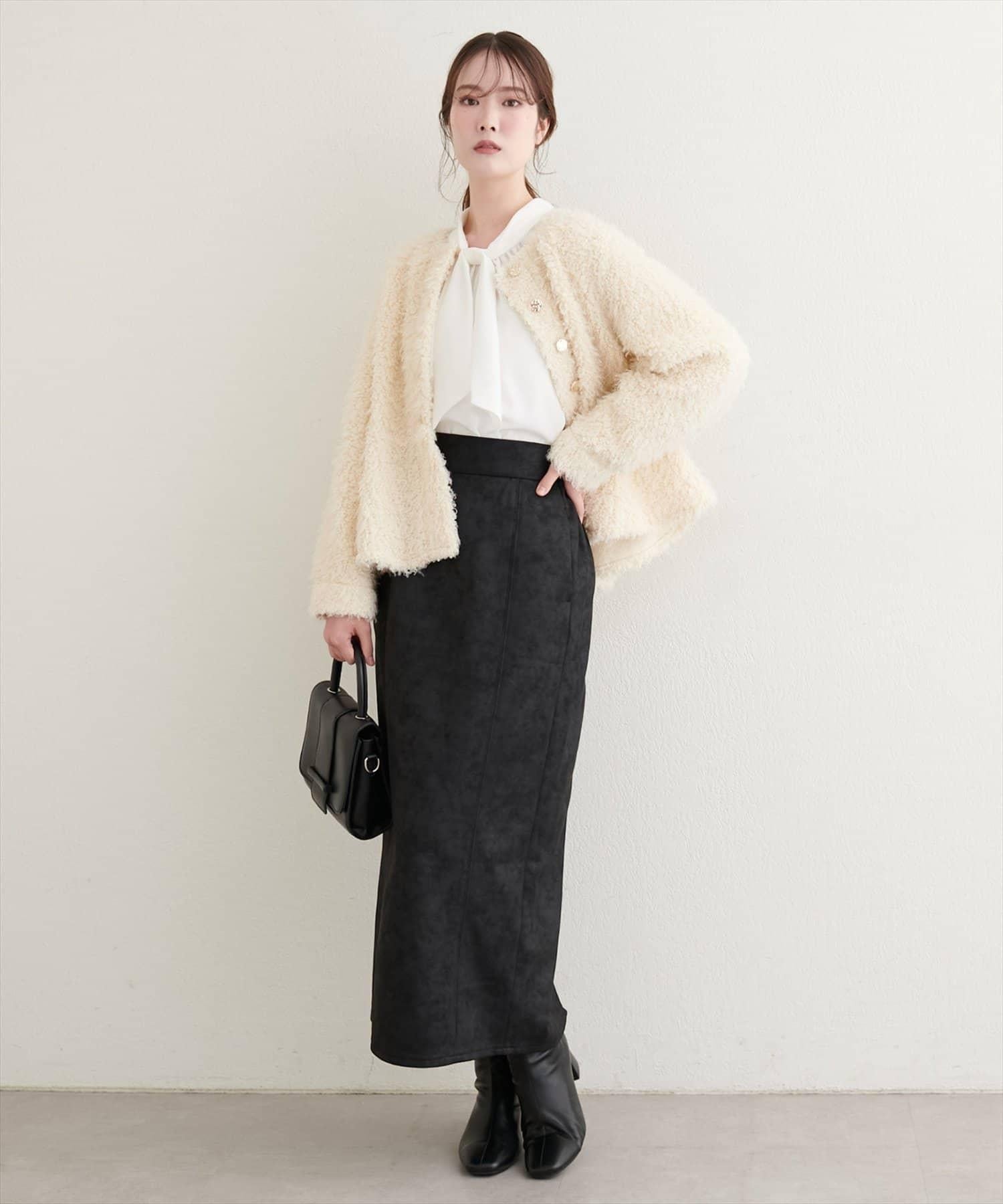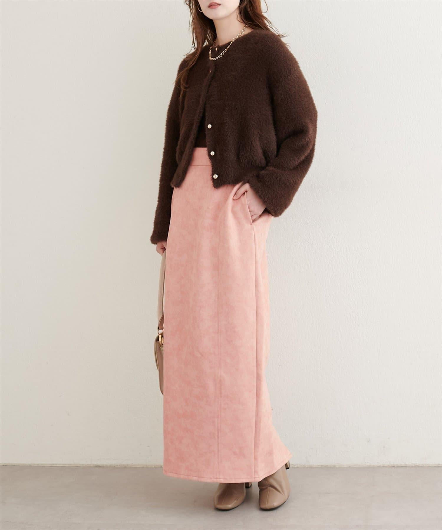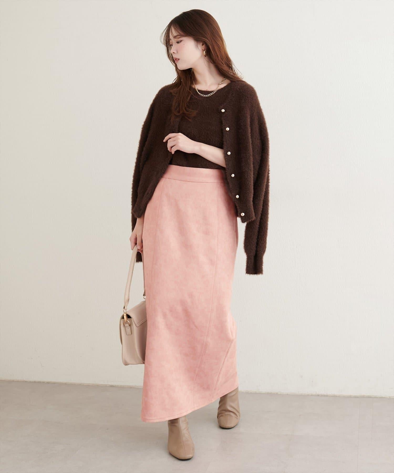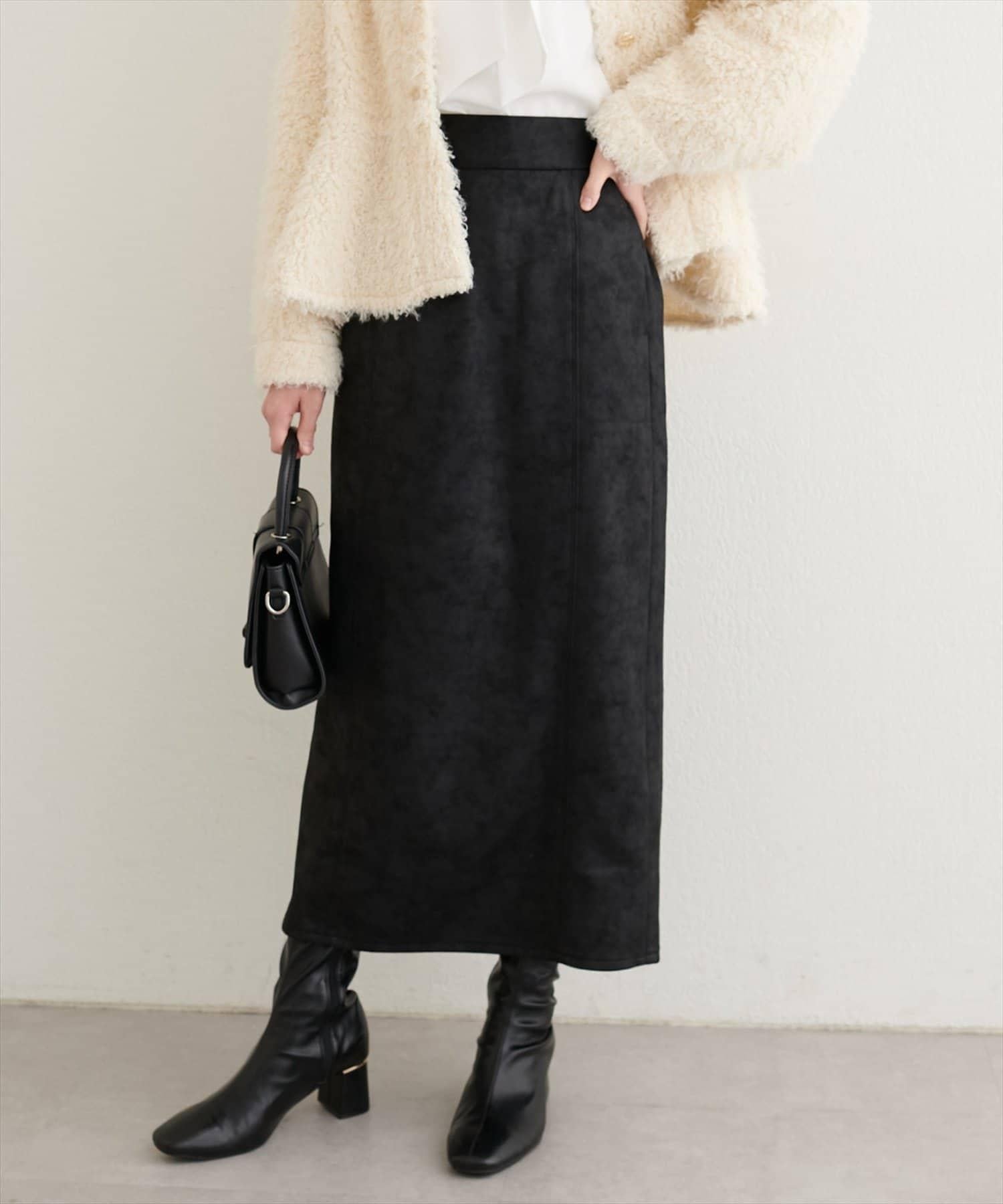 人造仿皮蓬鬆麂皮絨緊身裙,質地溼潤,手感優雅。