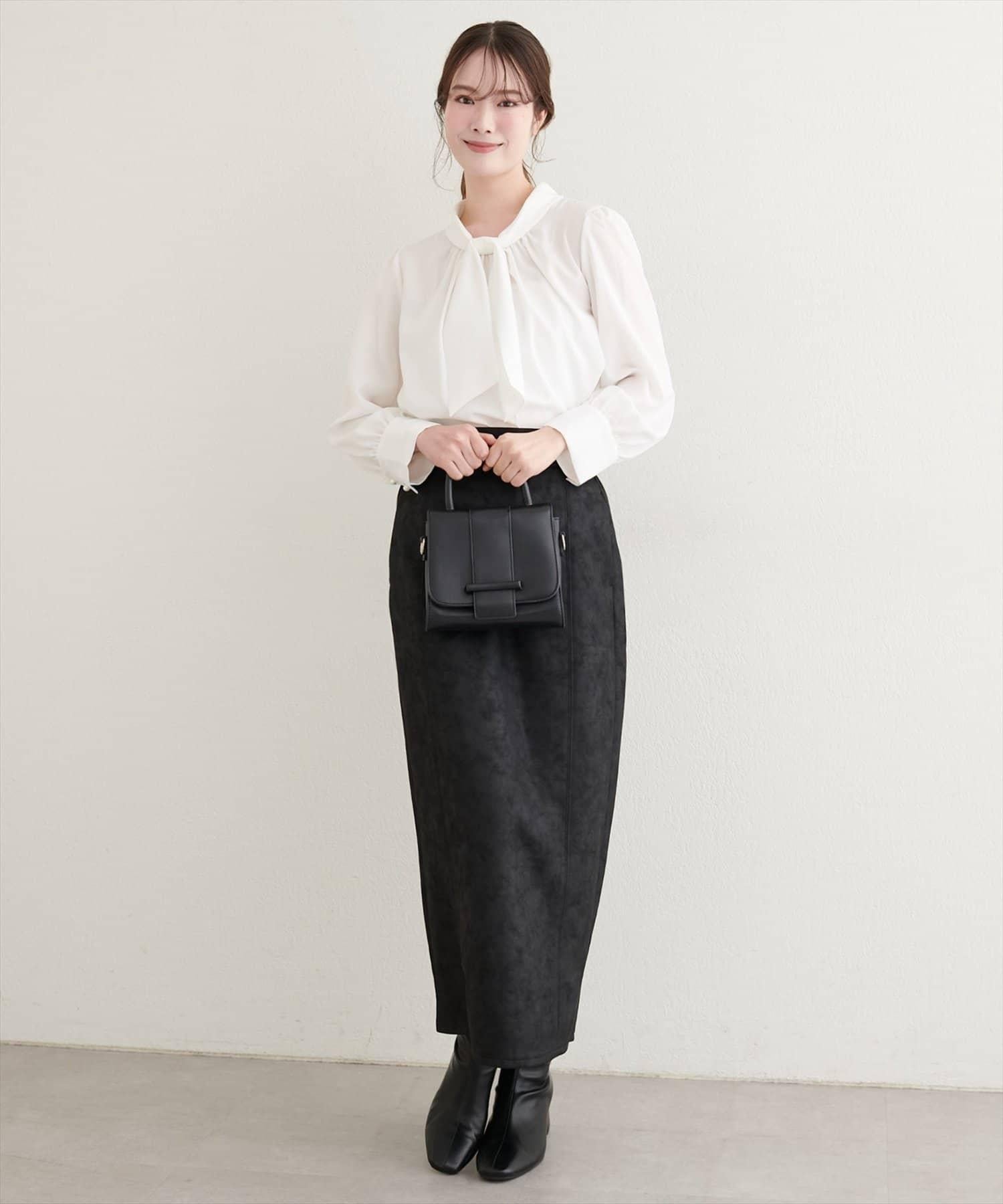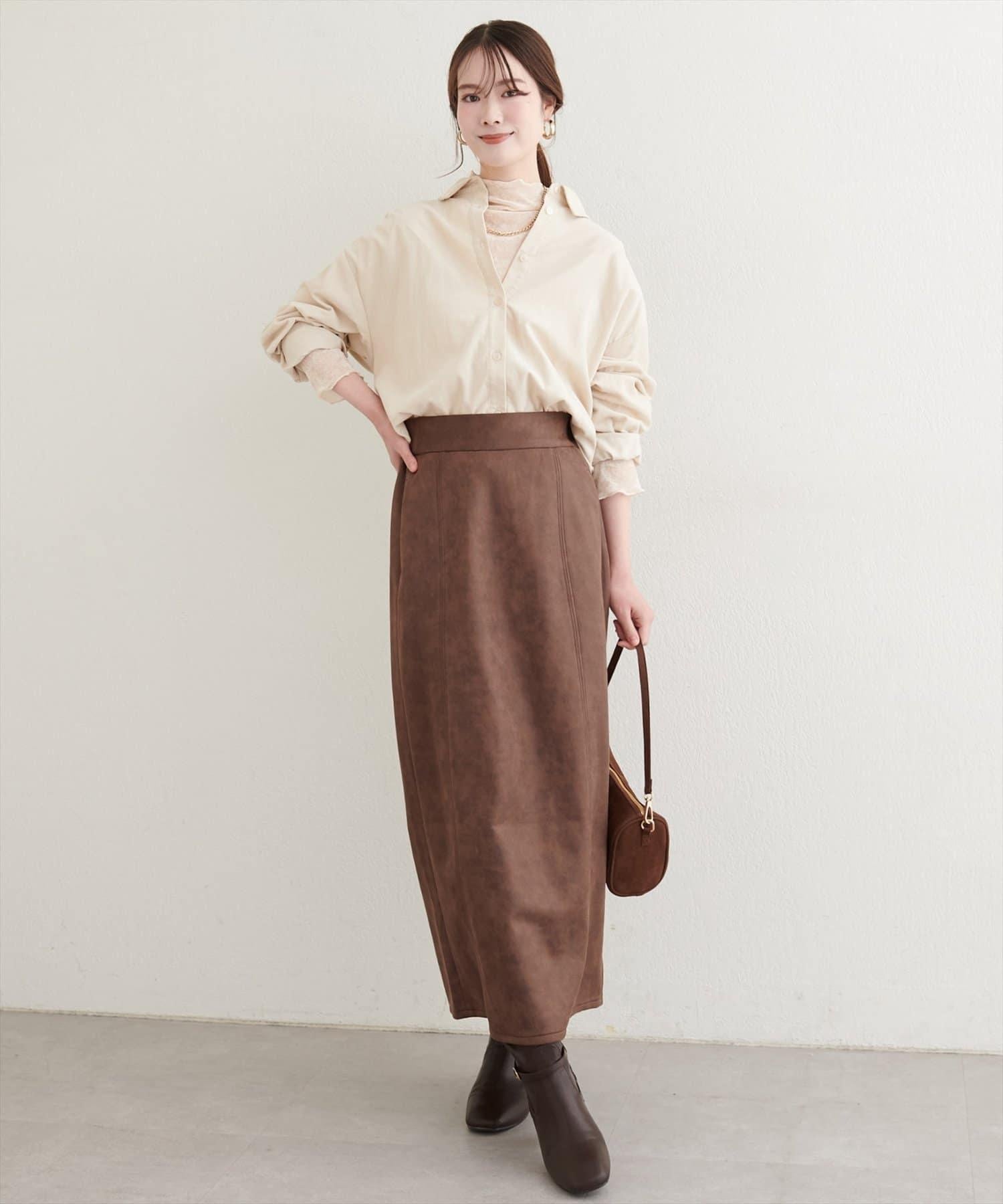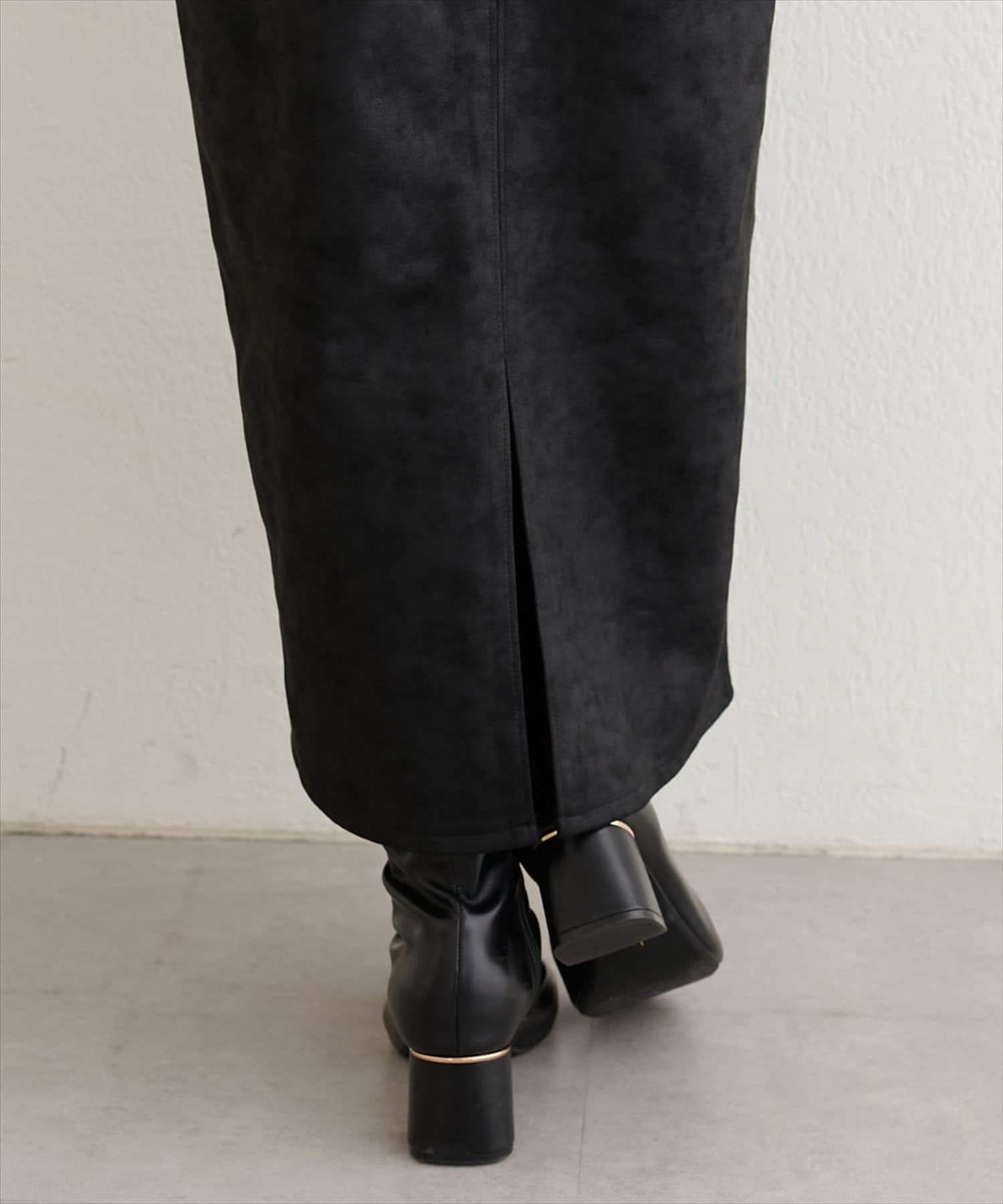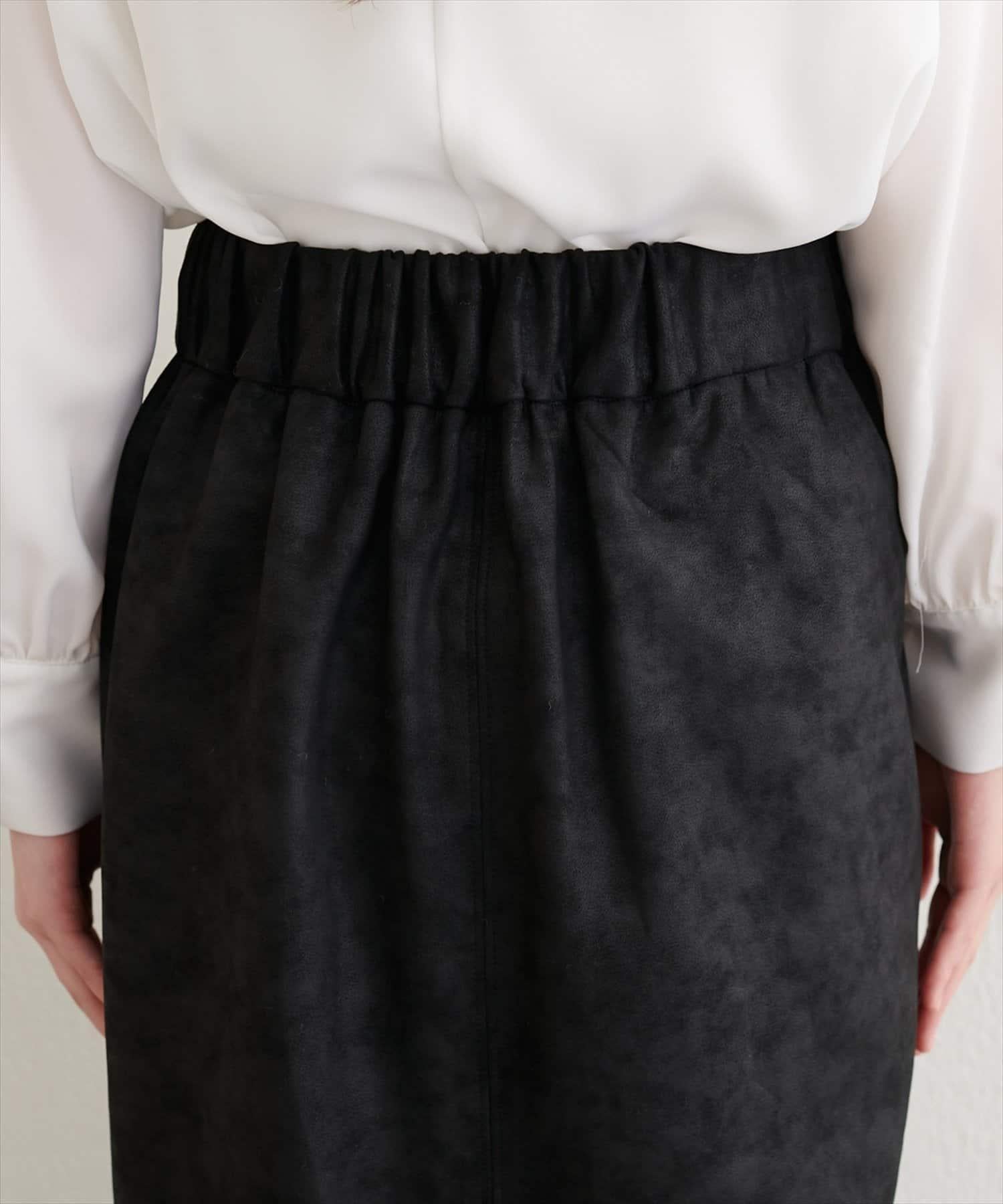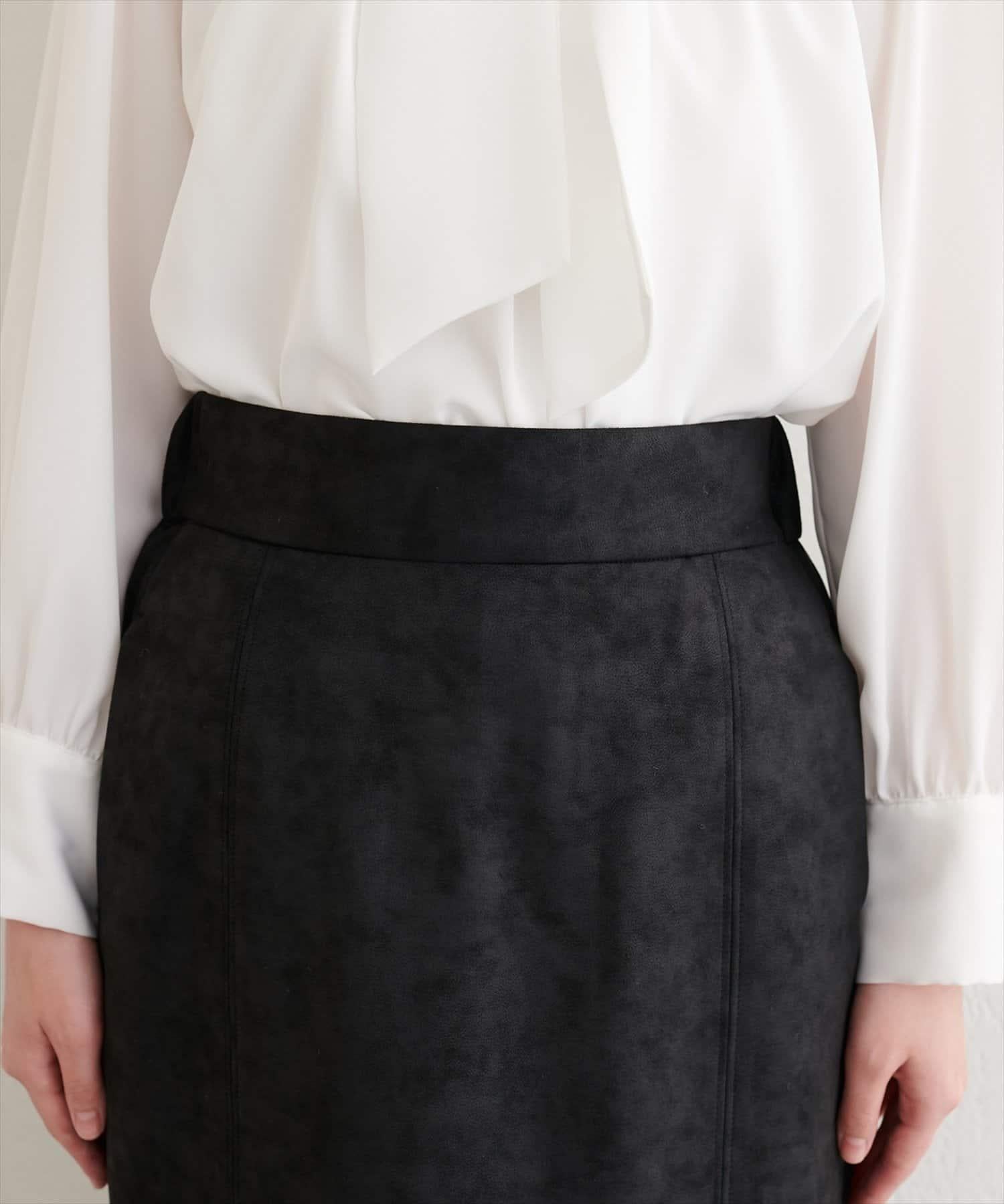 仿皮絨面修身半身裙