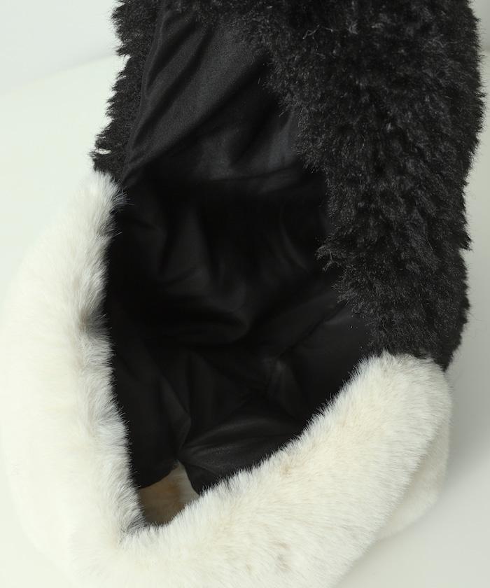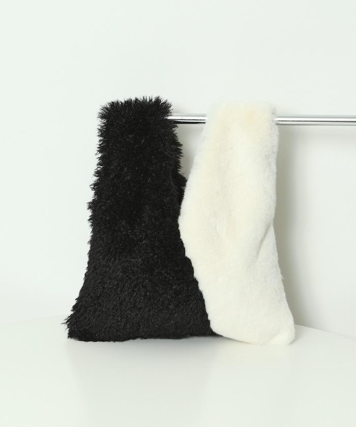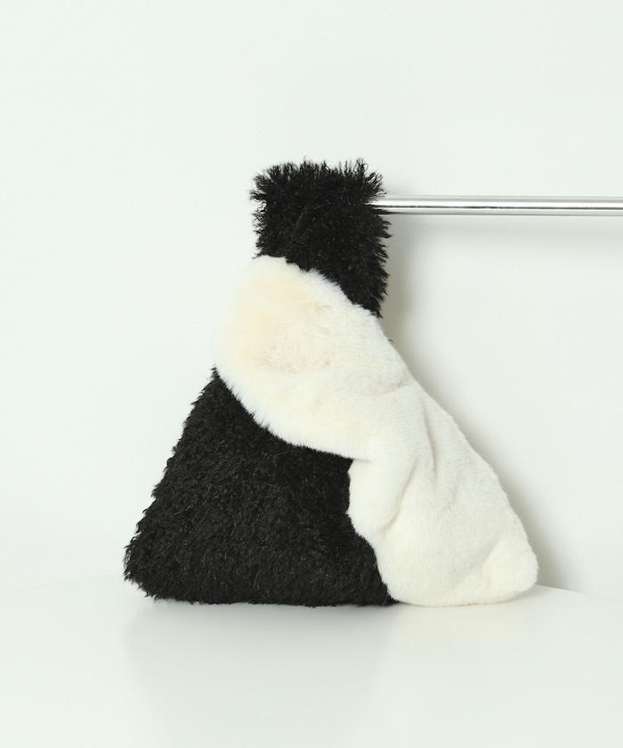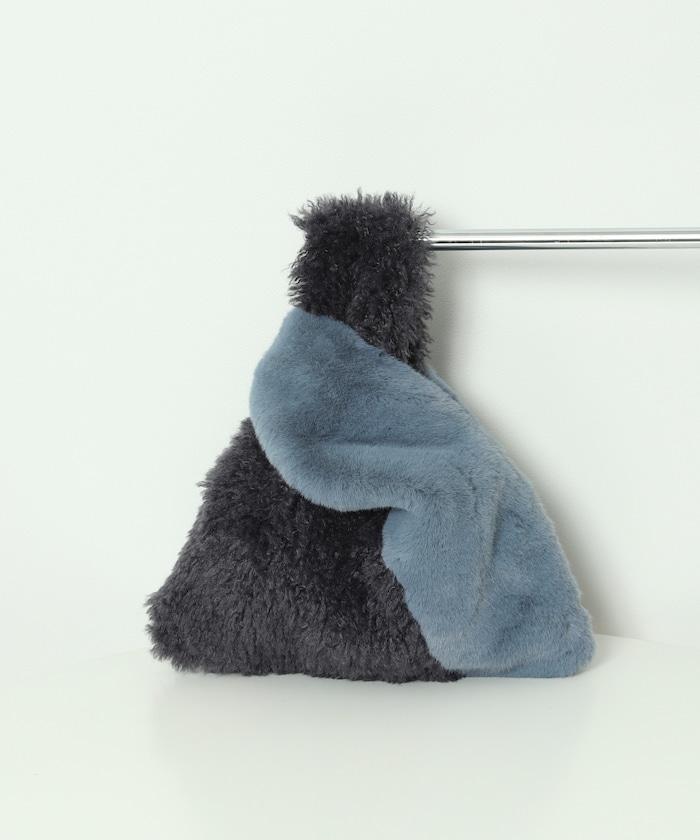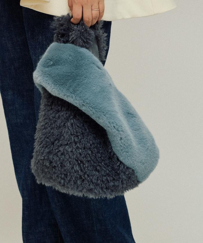 這款手提包採用對接設計,將長皮草和短皮草結合在一起。
