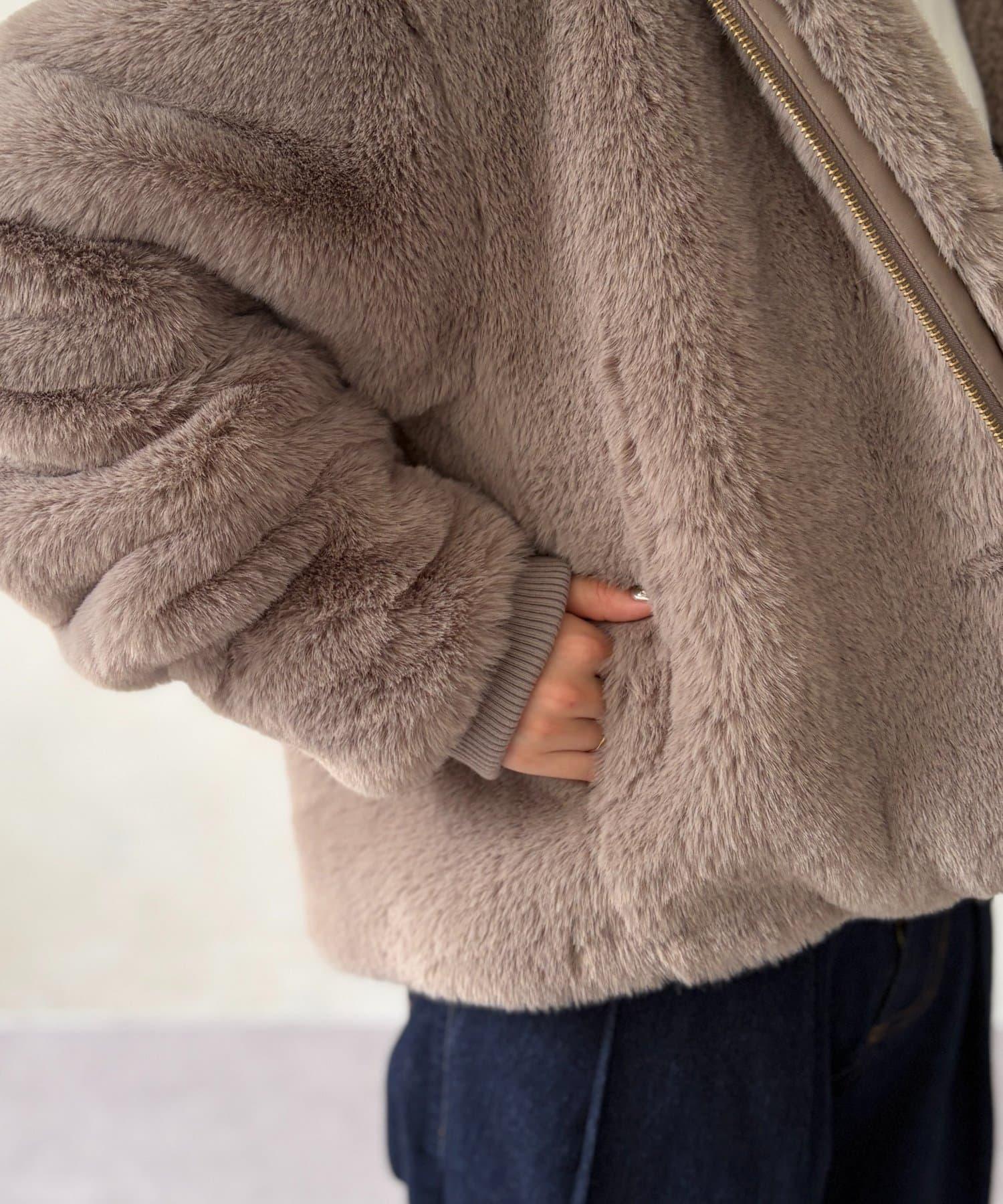 由柔軟蓬鬆的人造皮草製成的夾克。
