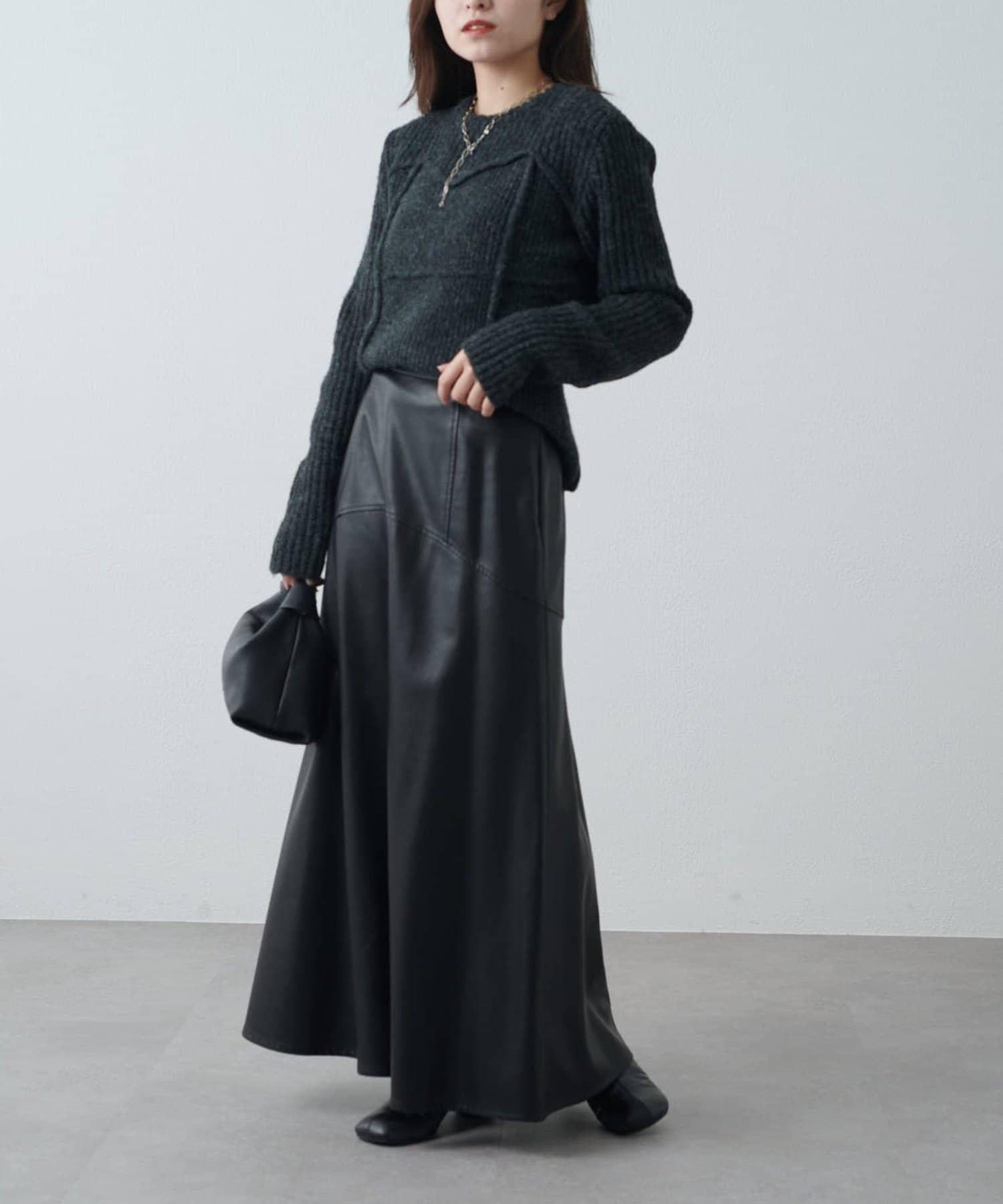 它是一款長裙,搭配素色針織衫或基本款上衣都很好看。