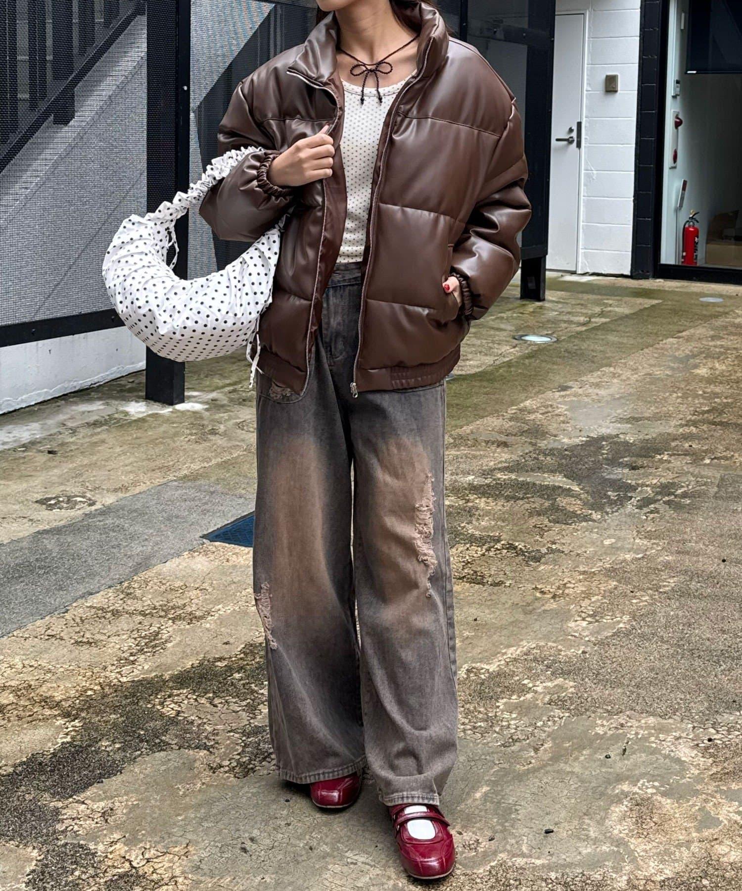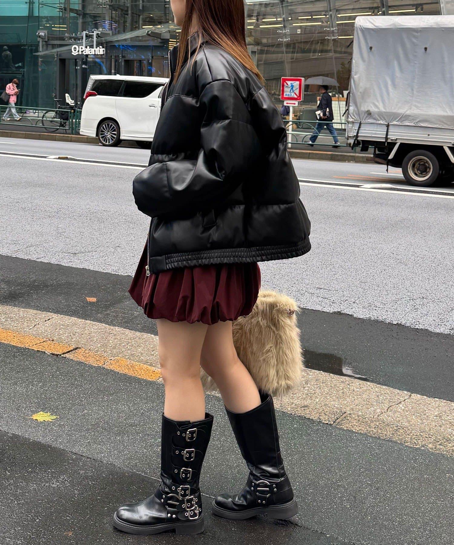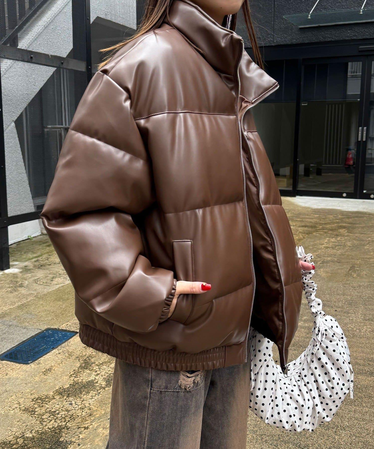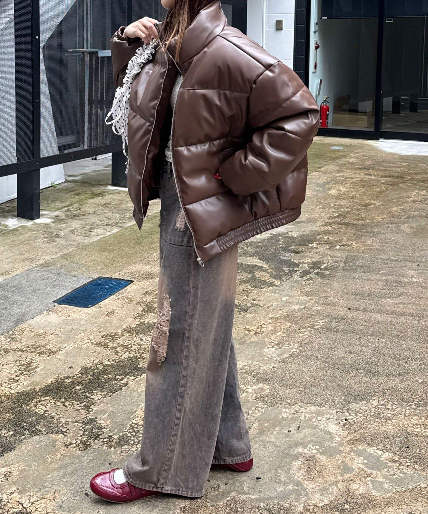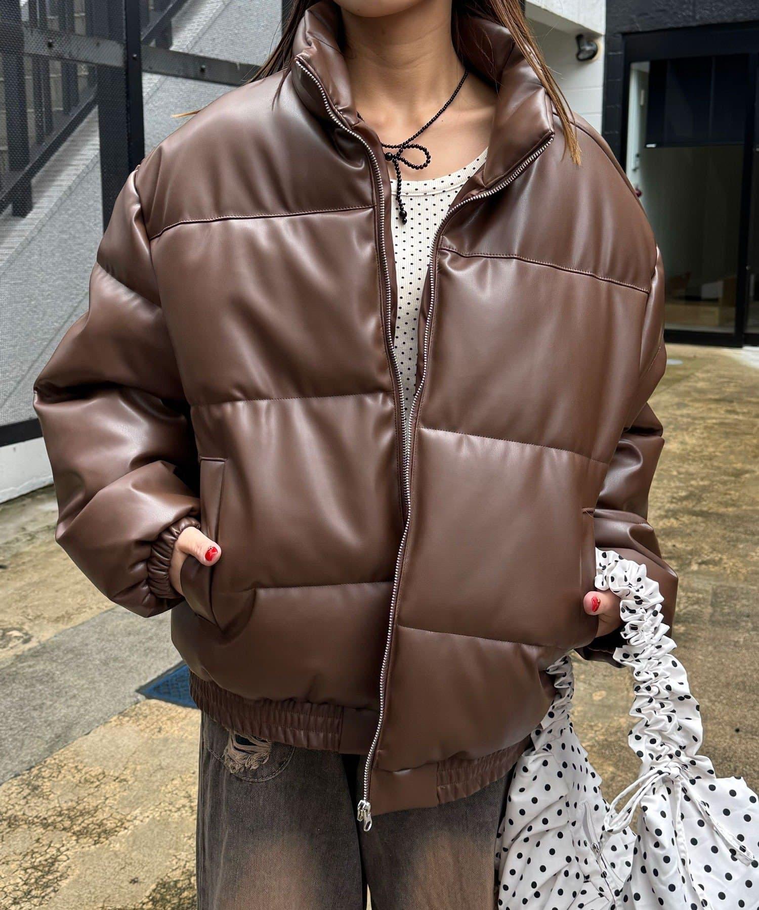 仿皮革泡芙夾克