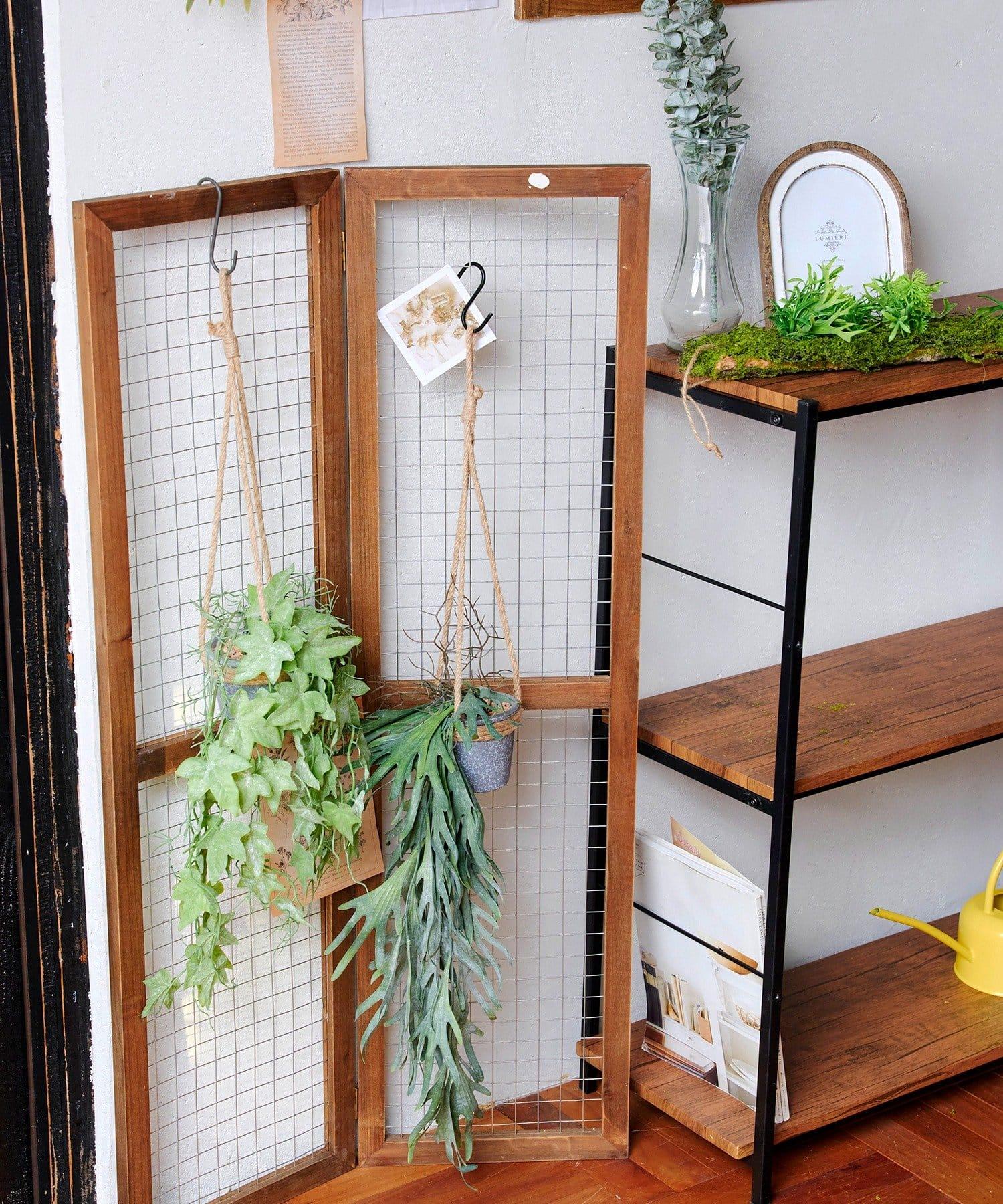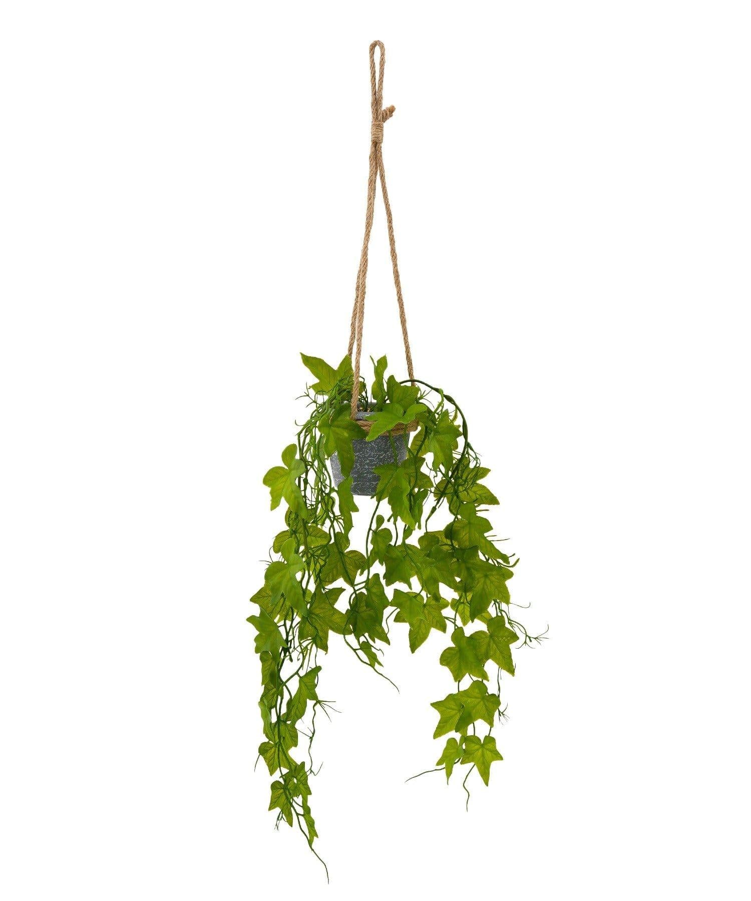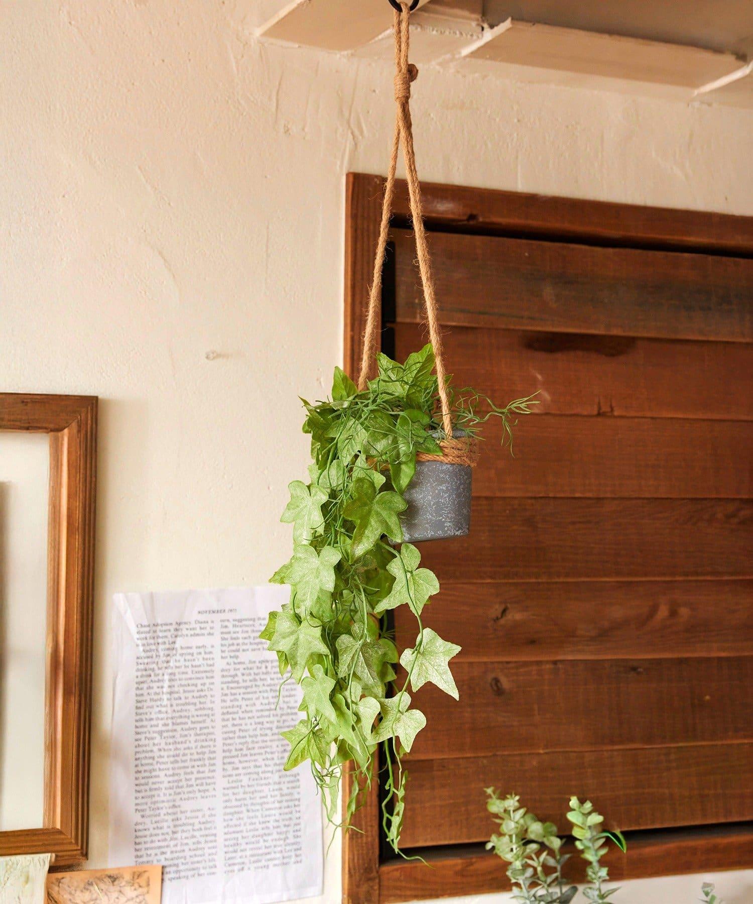 帶麻繩的時尚懸掛花盆,融入了常春藤及其細膩柔韌的藤蔓。