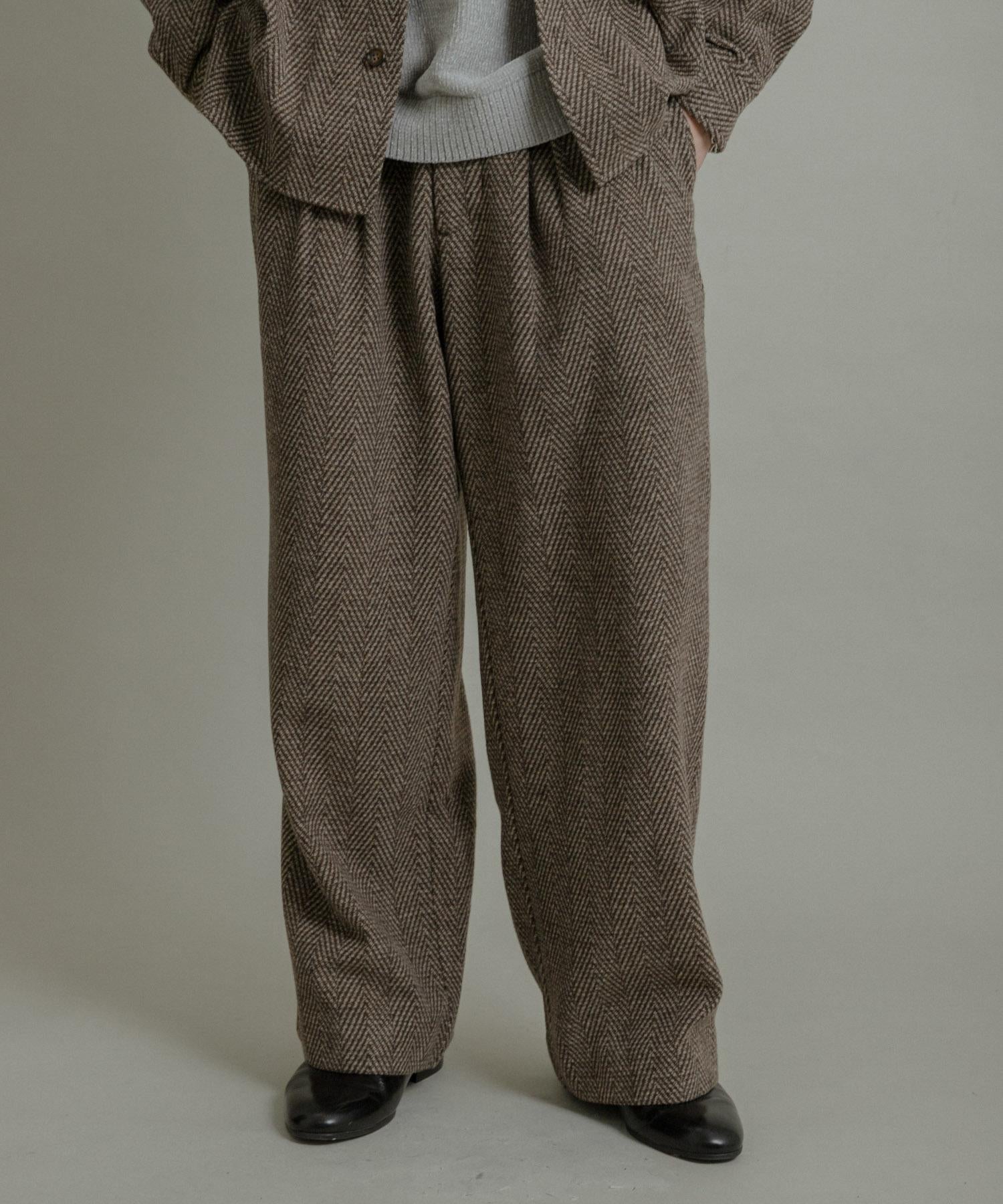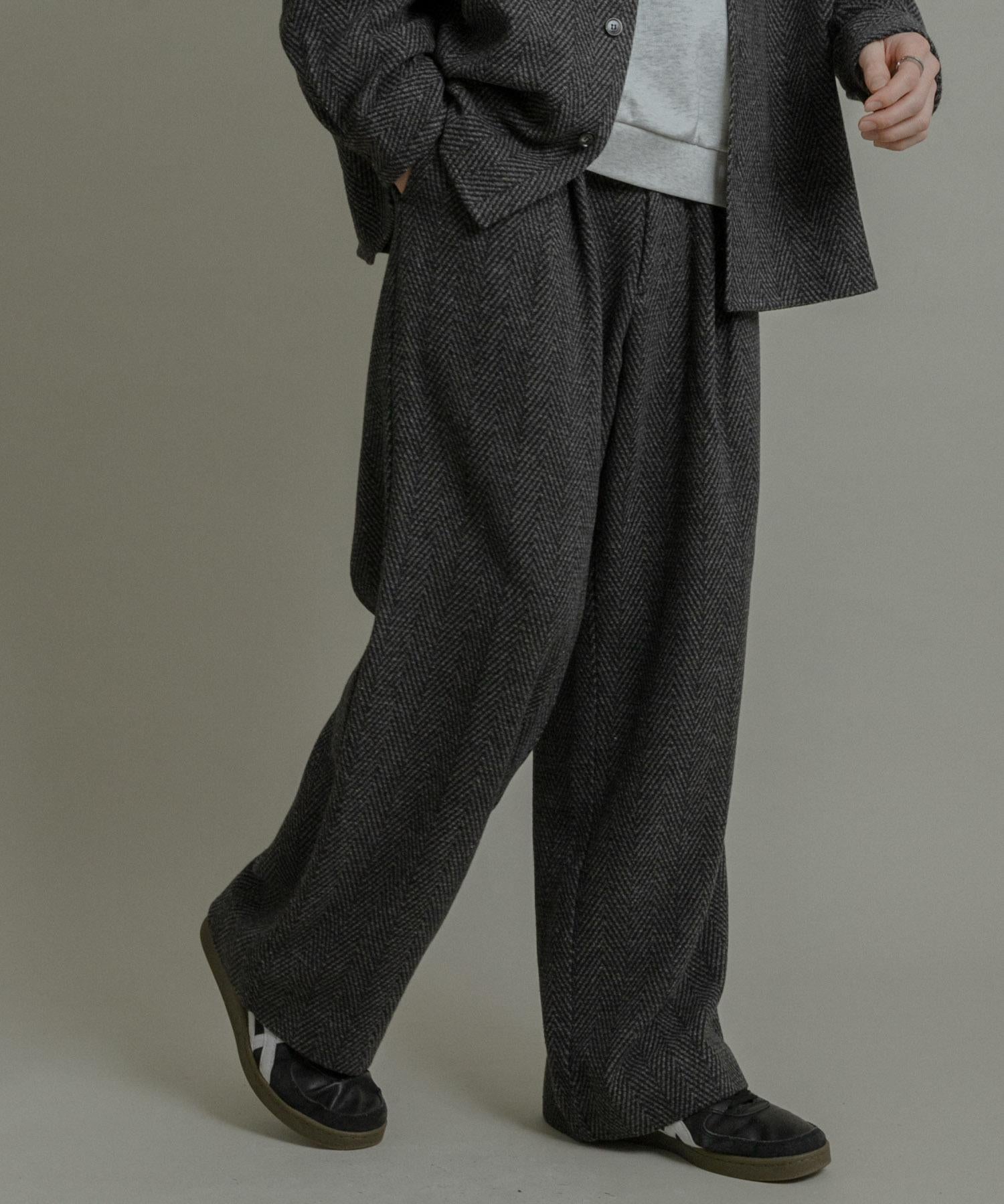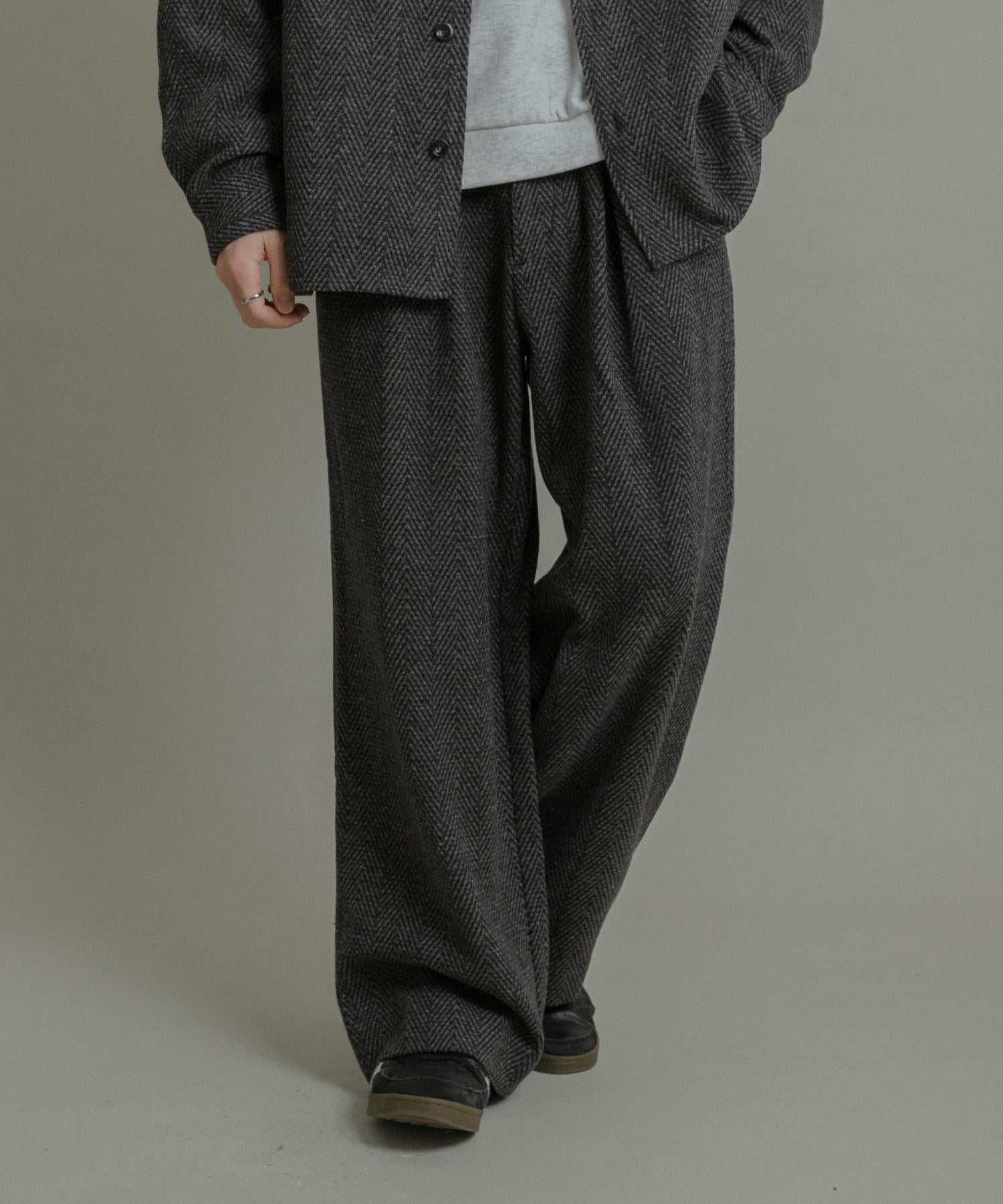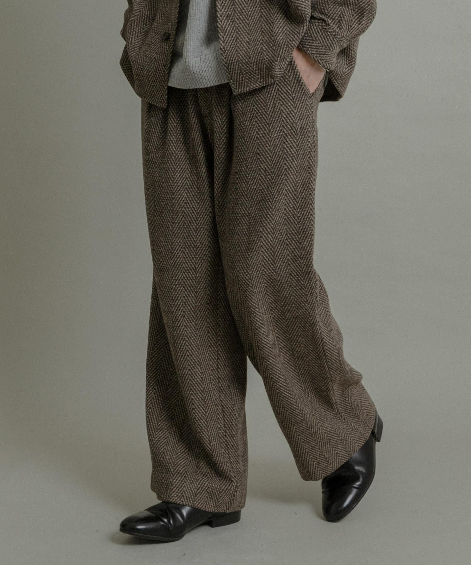 仿羊毛人字紋寬腿褲