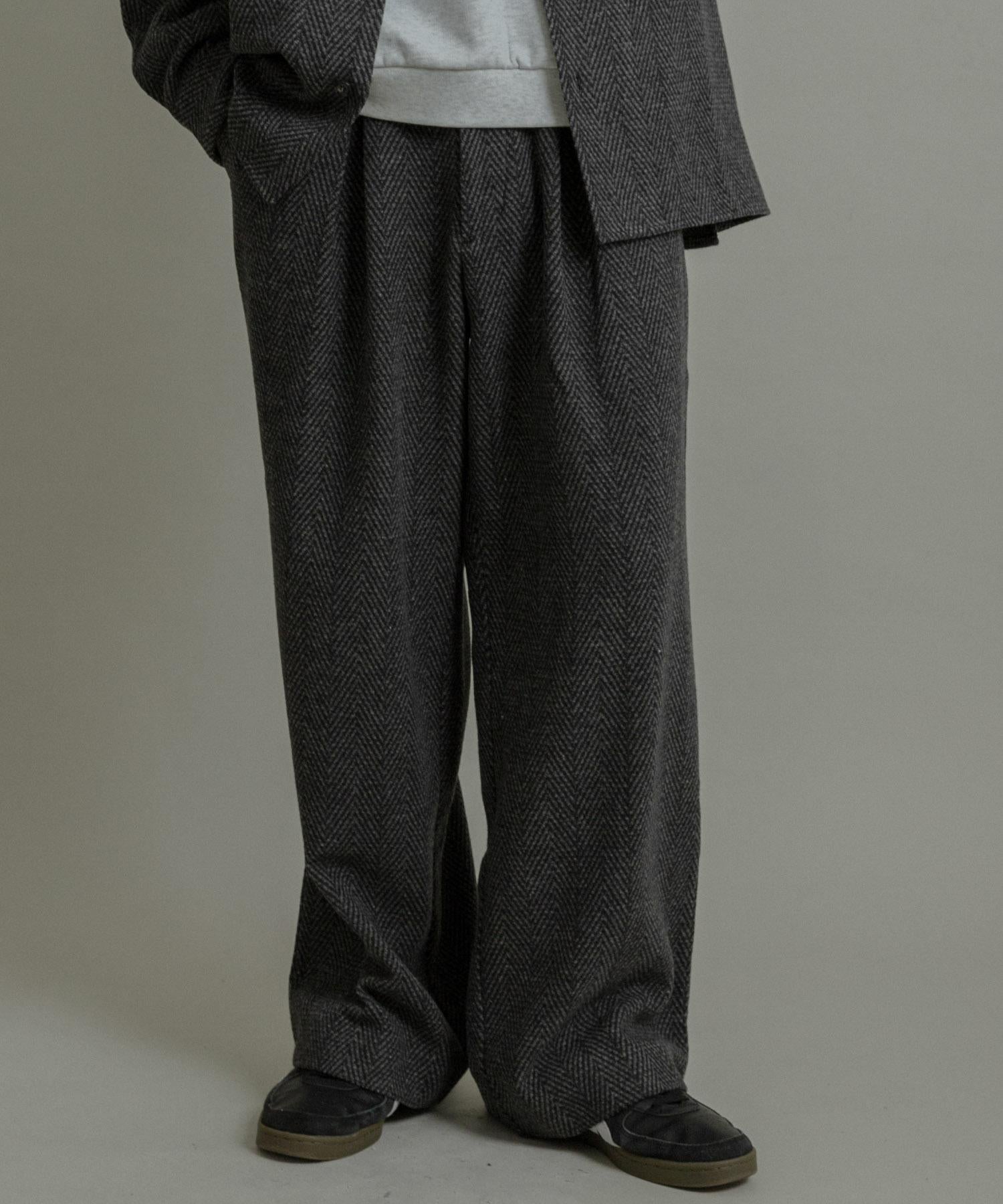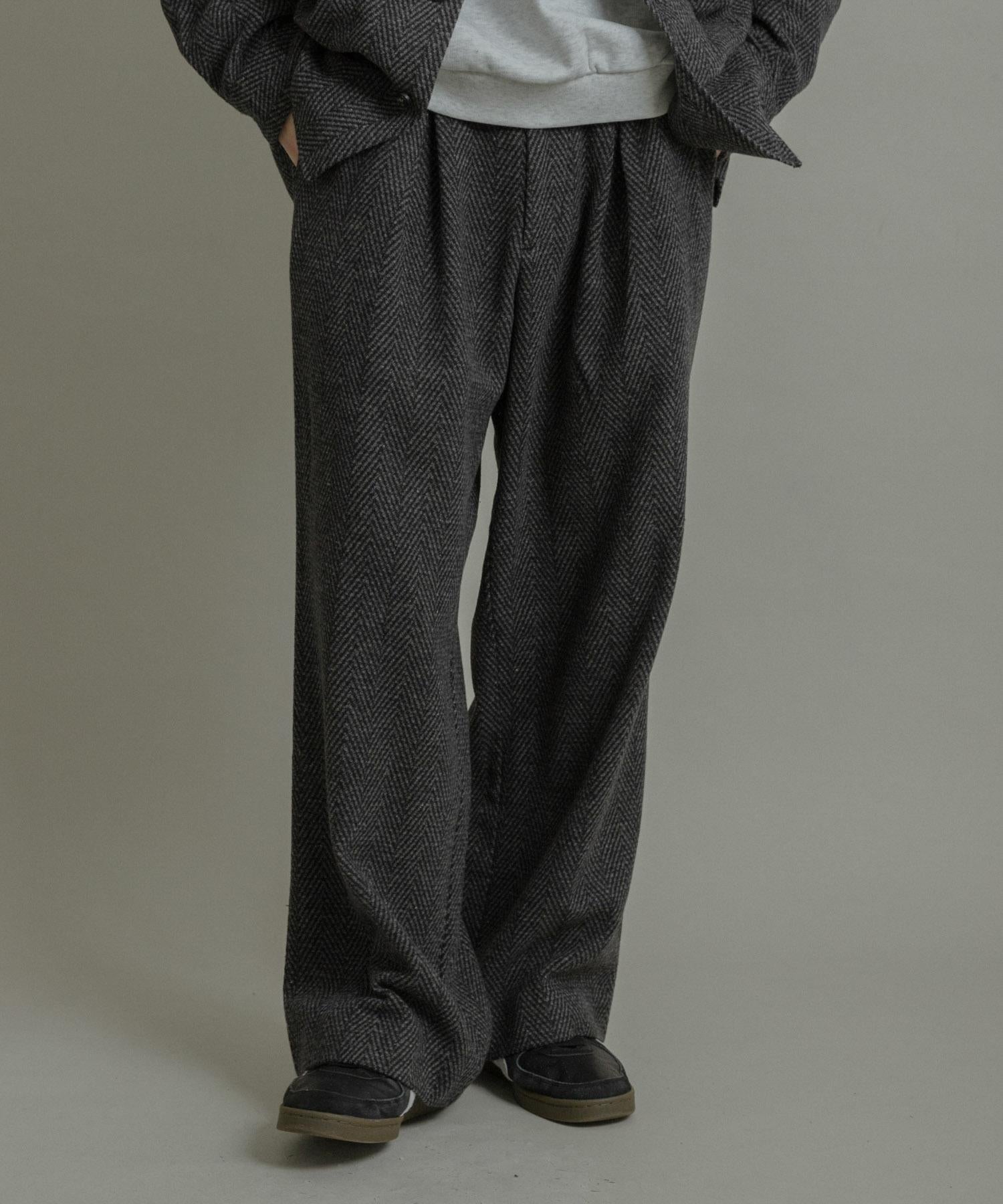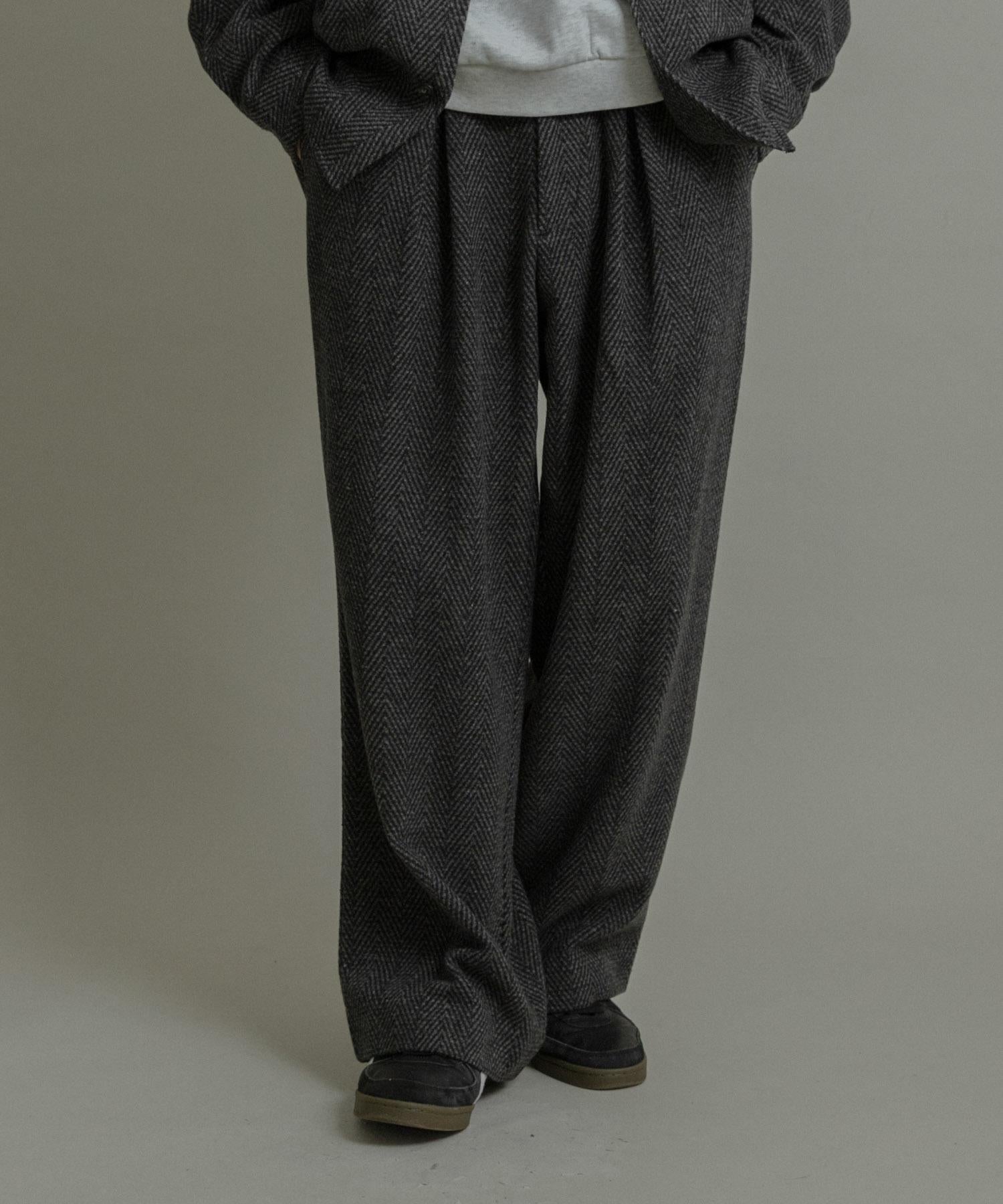 仿羊毛人字紋寬腿褲