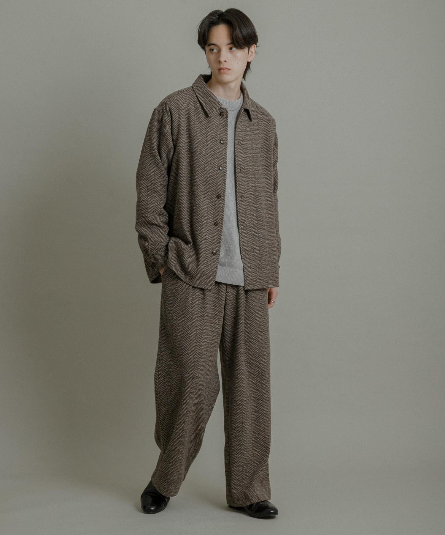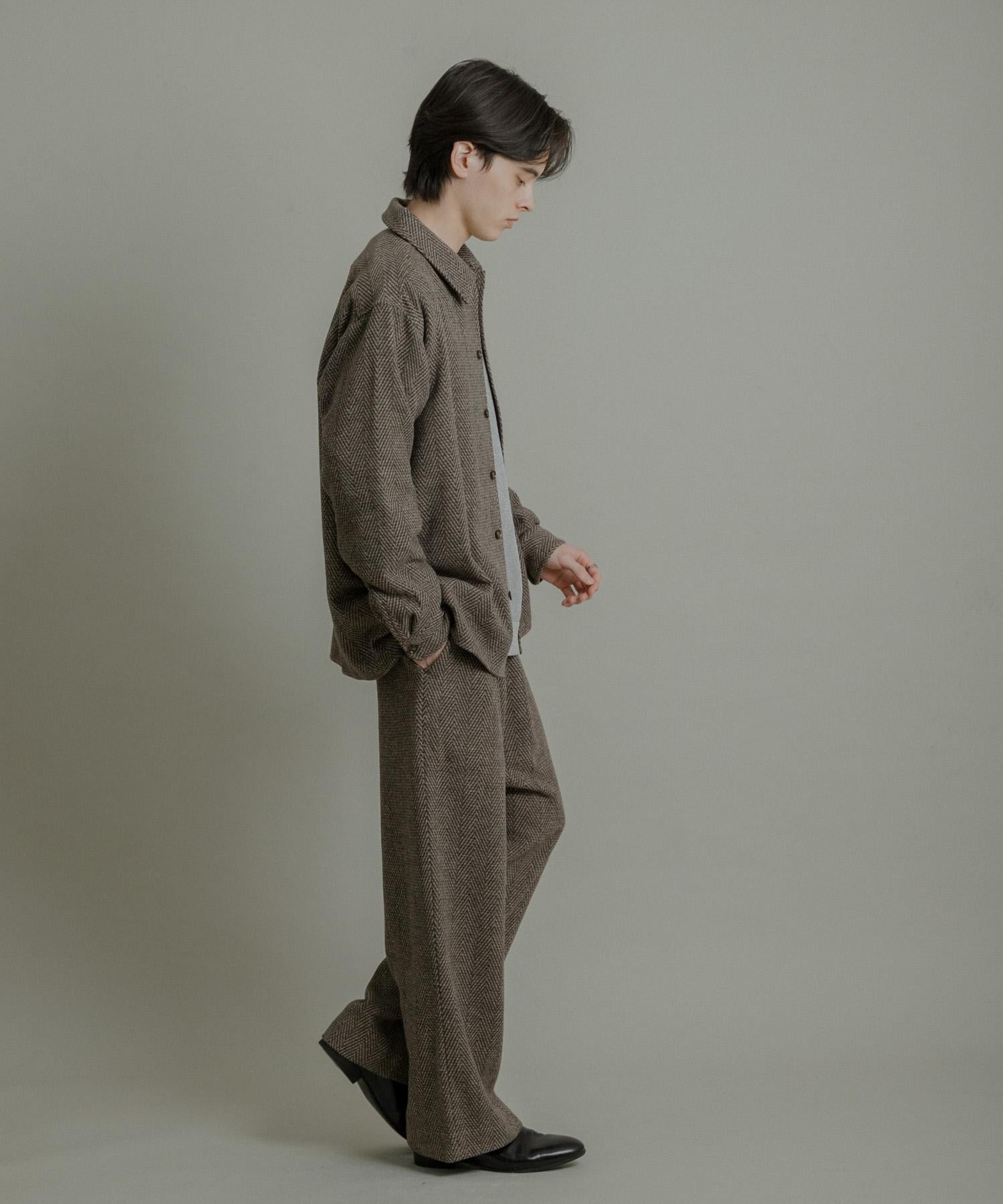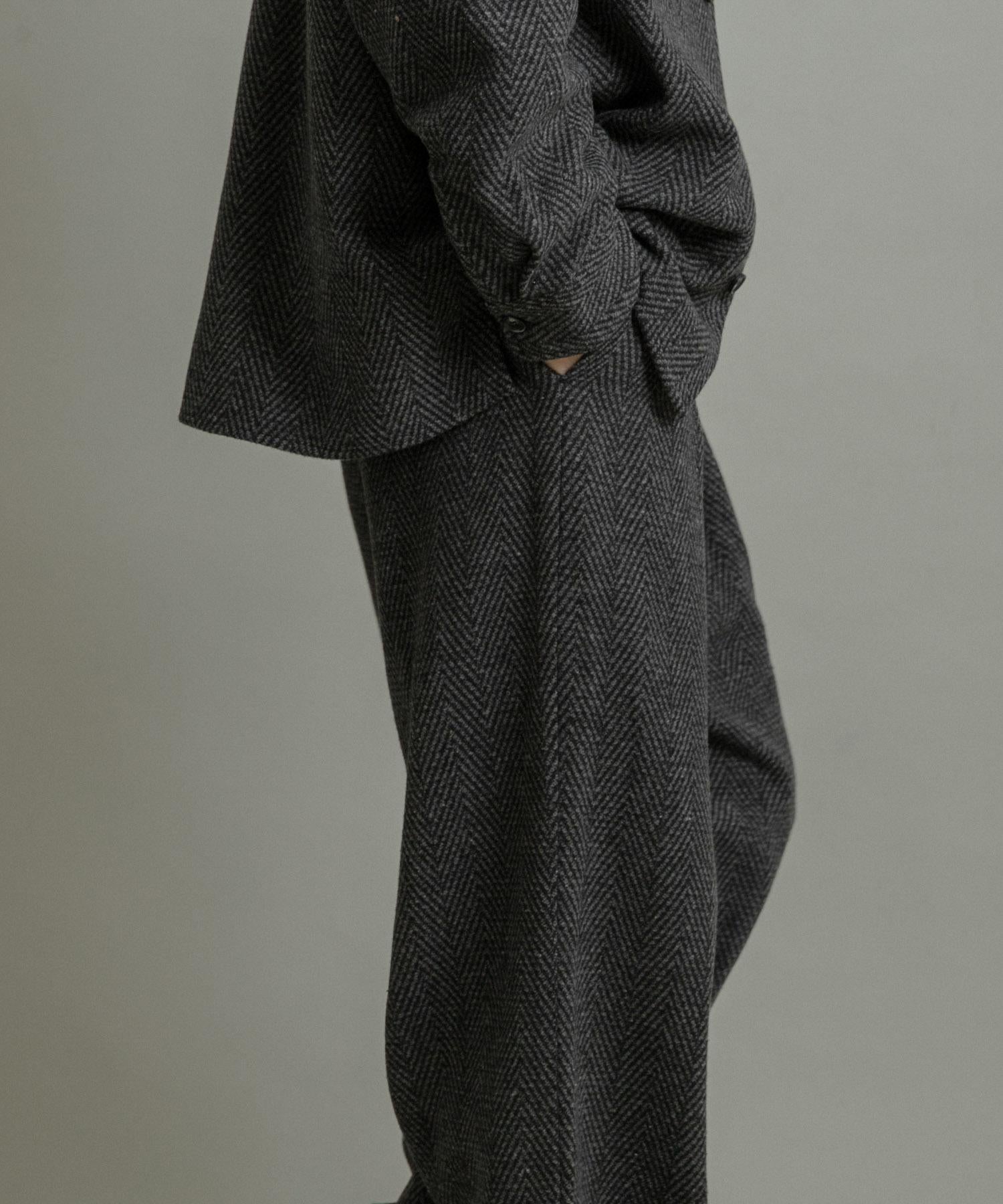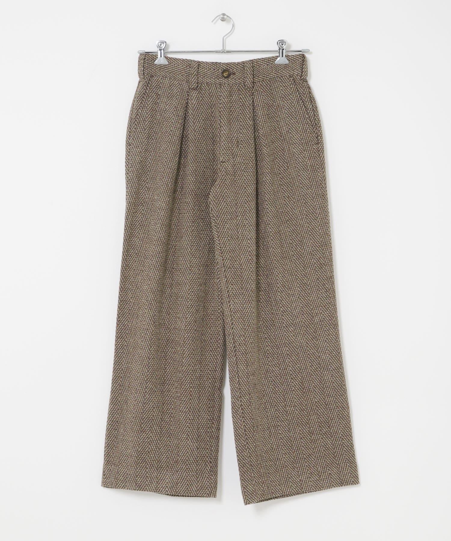仿羊毛人字紋寬腿褲
