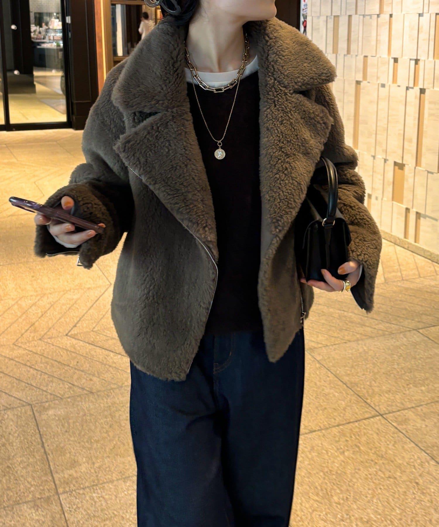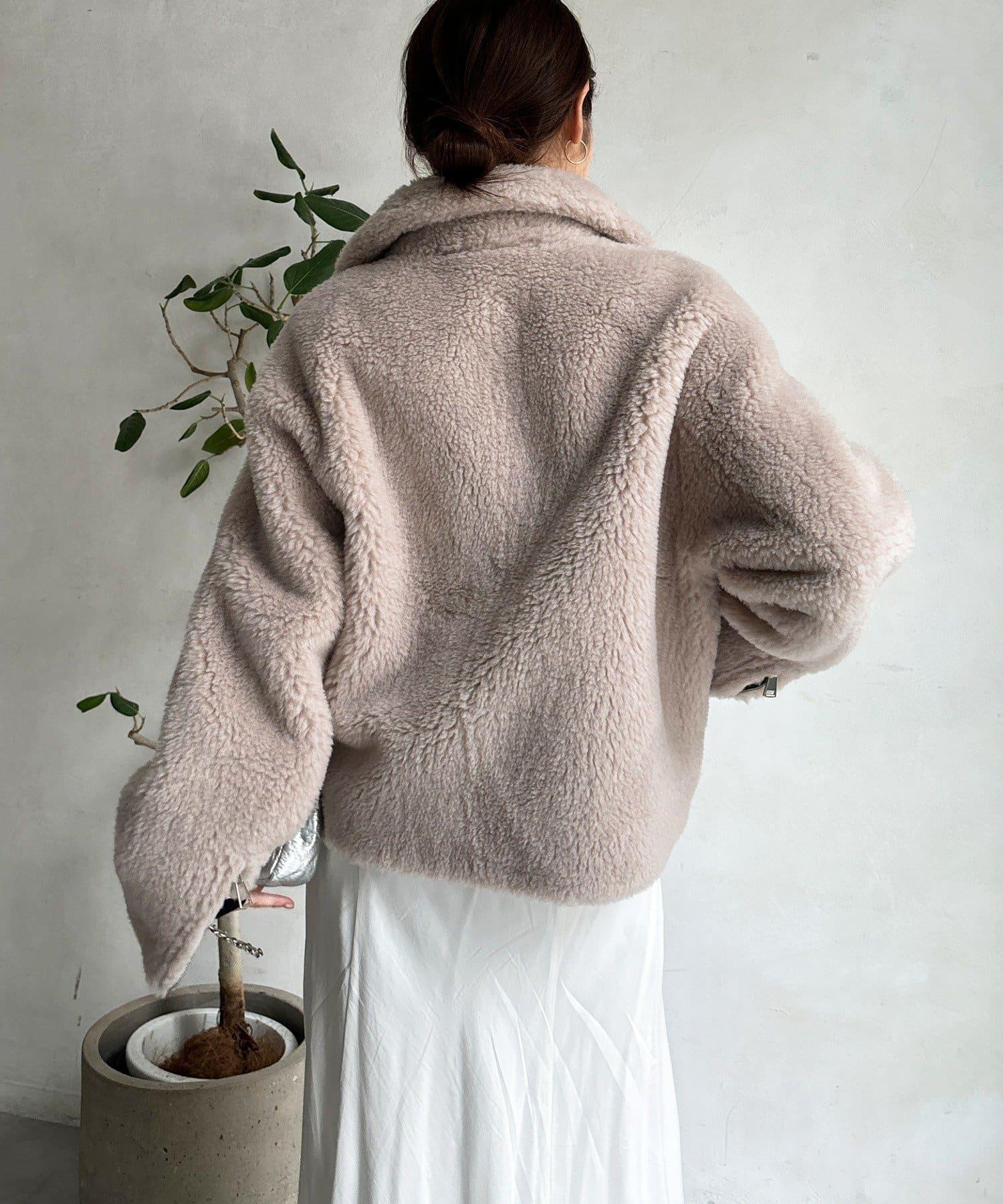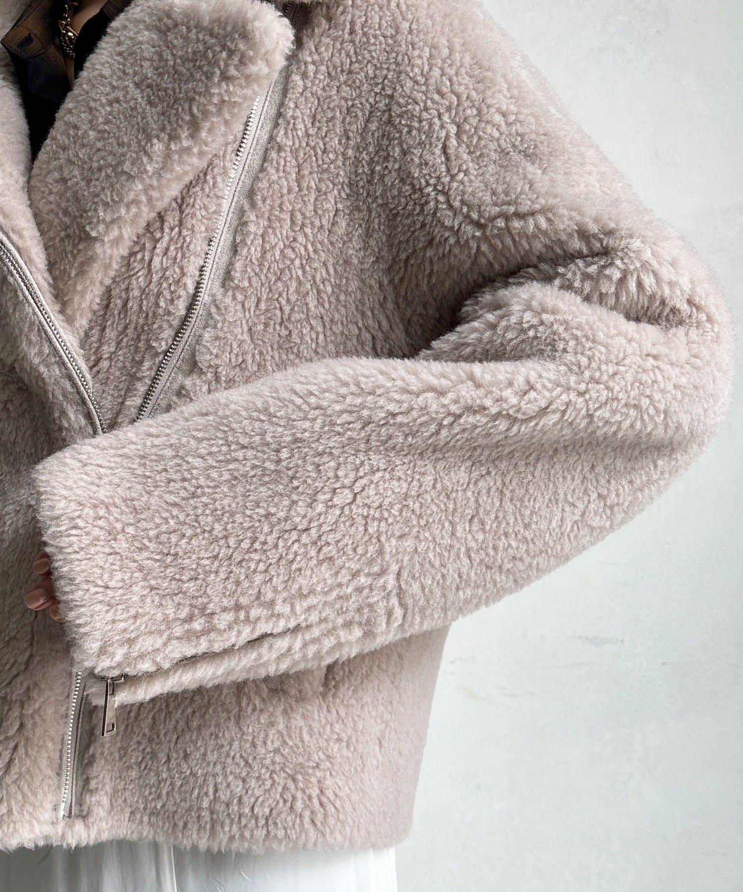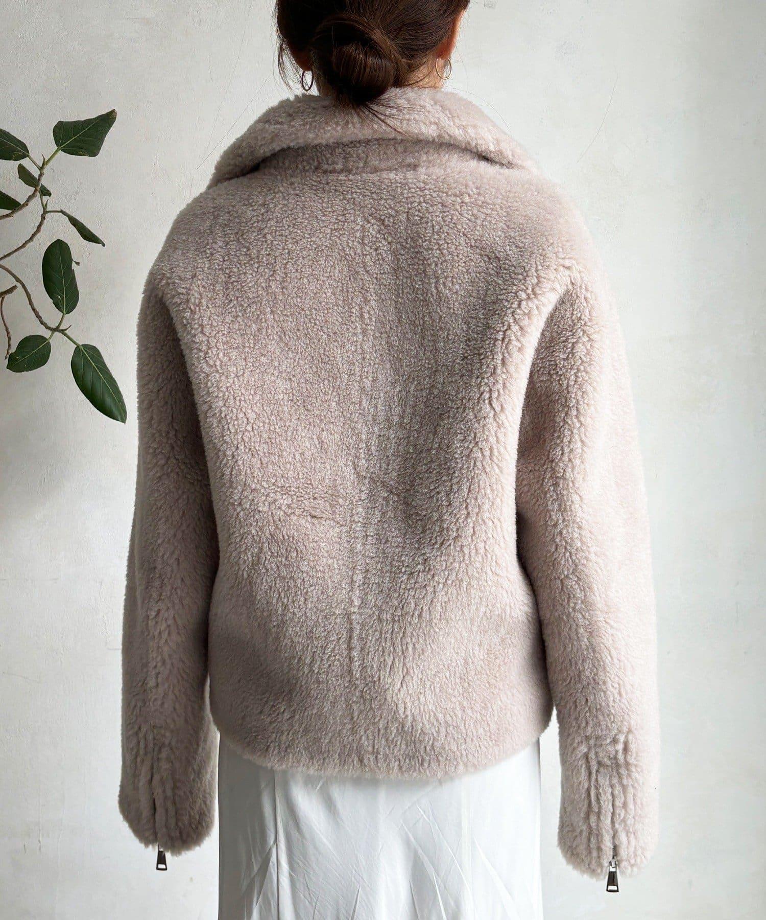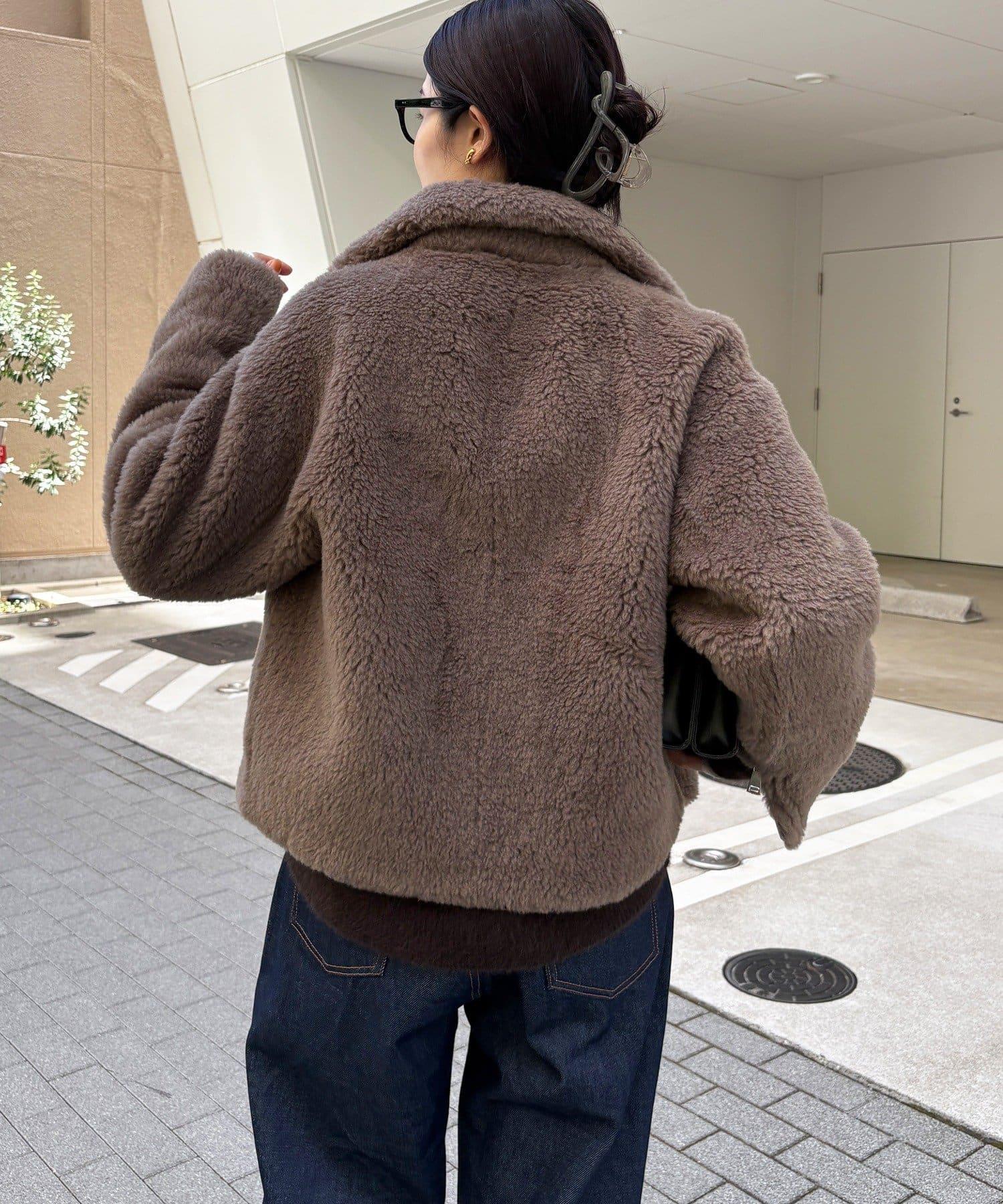 短款夾克採用柔軟的仿毛絨面料製成,兼具保暖性和奢華感。