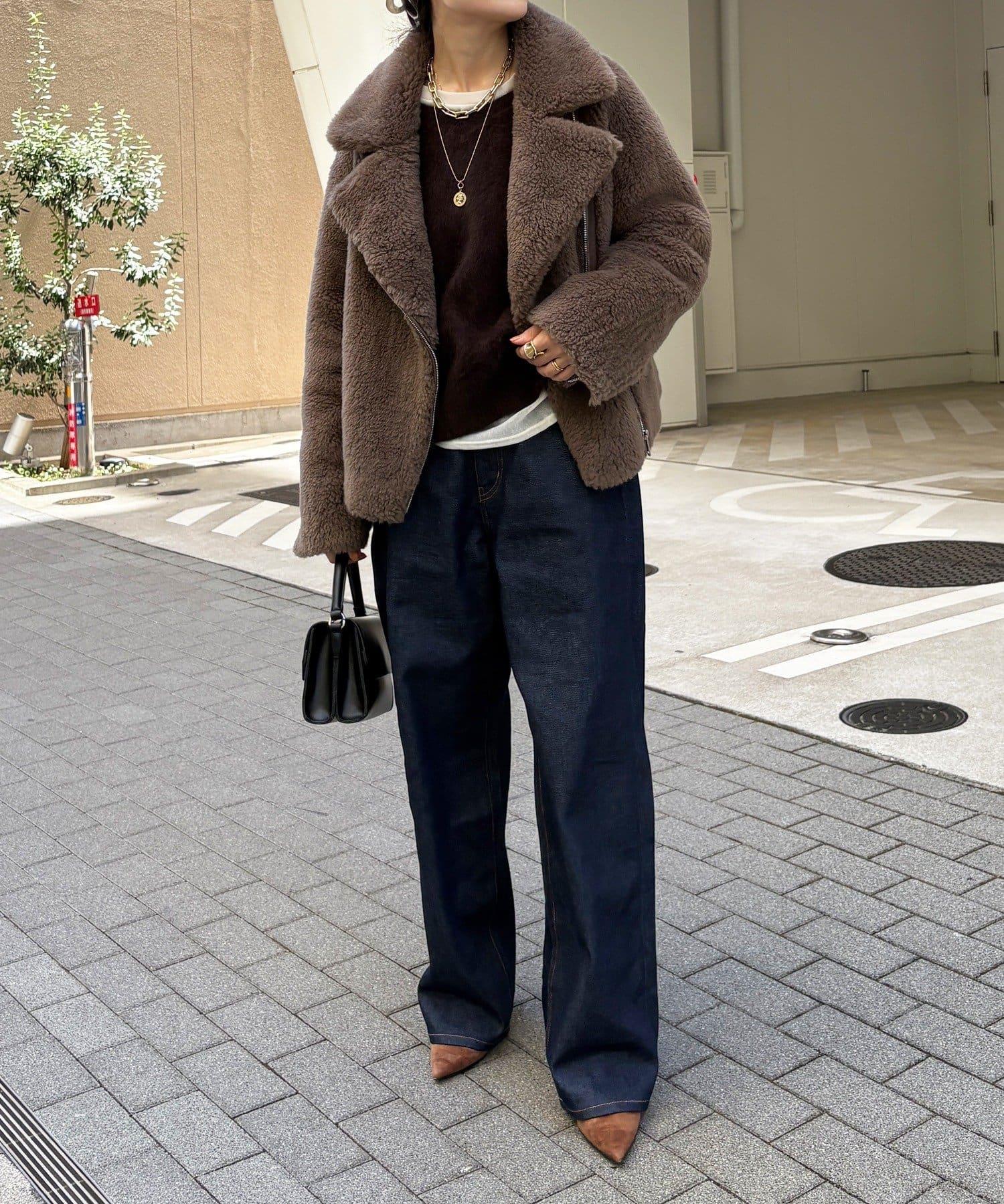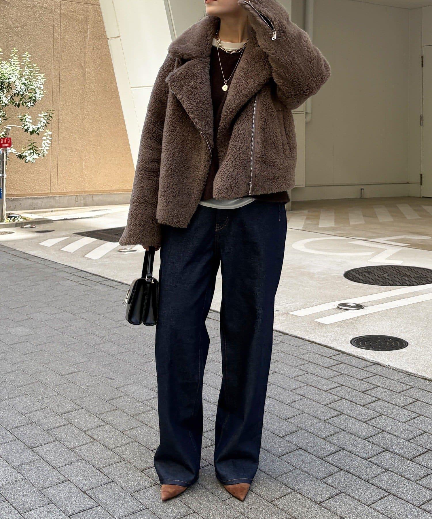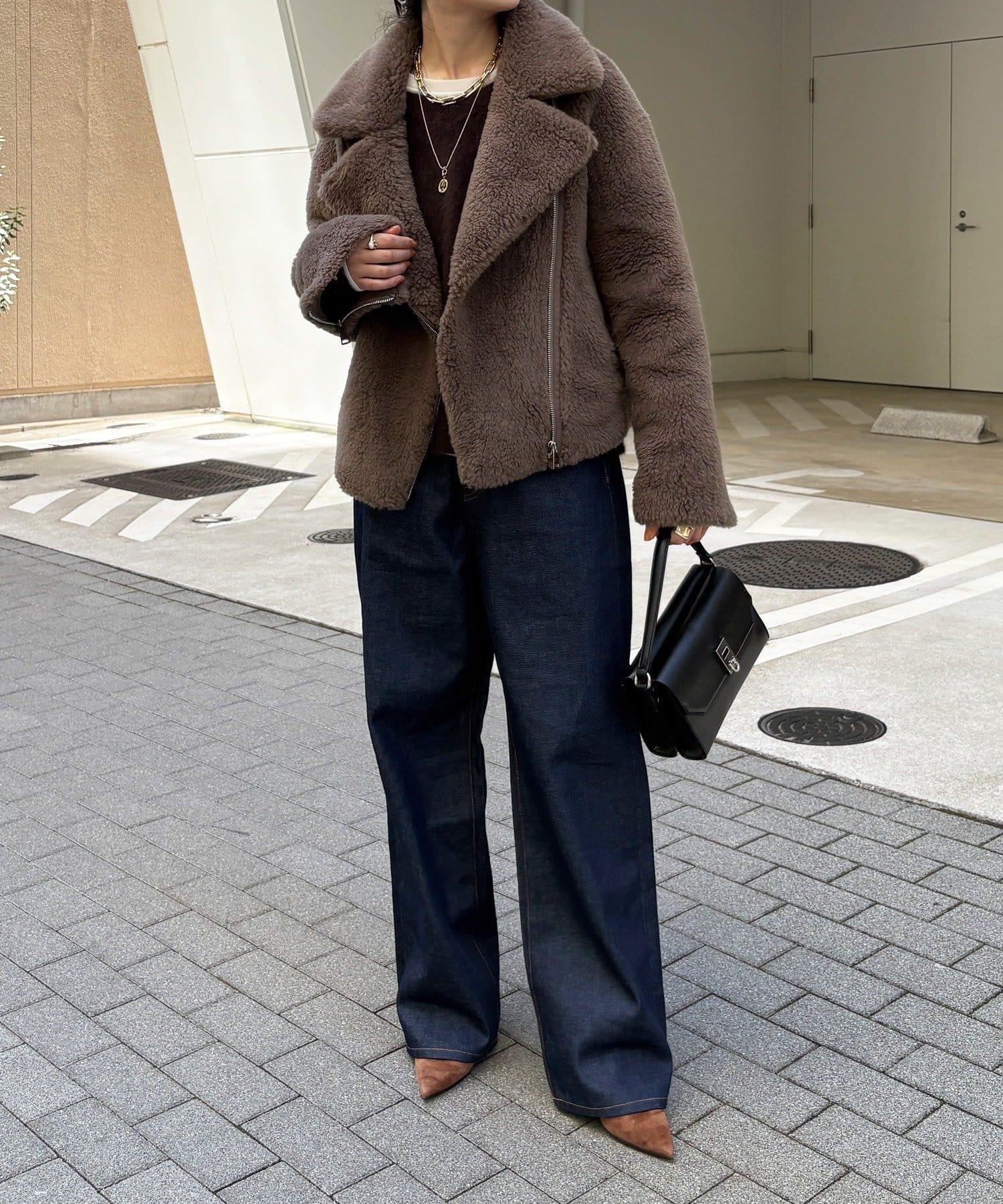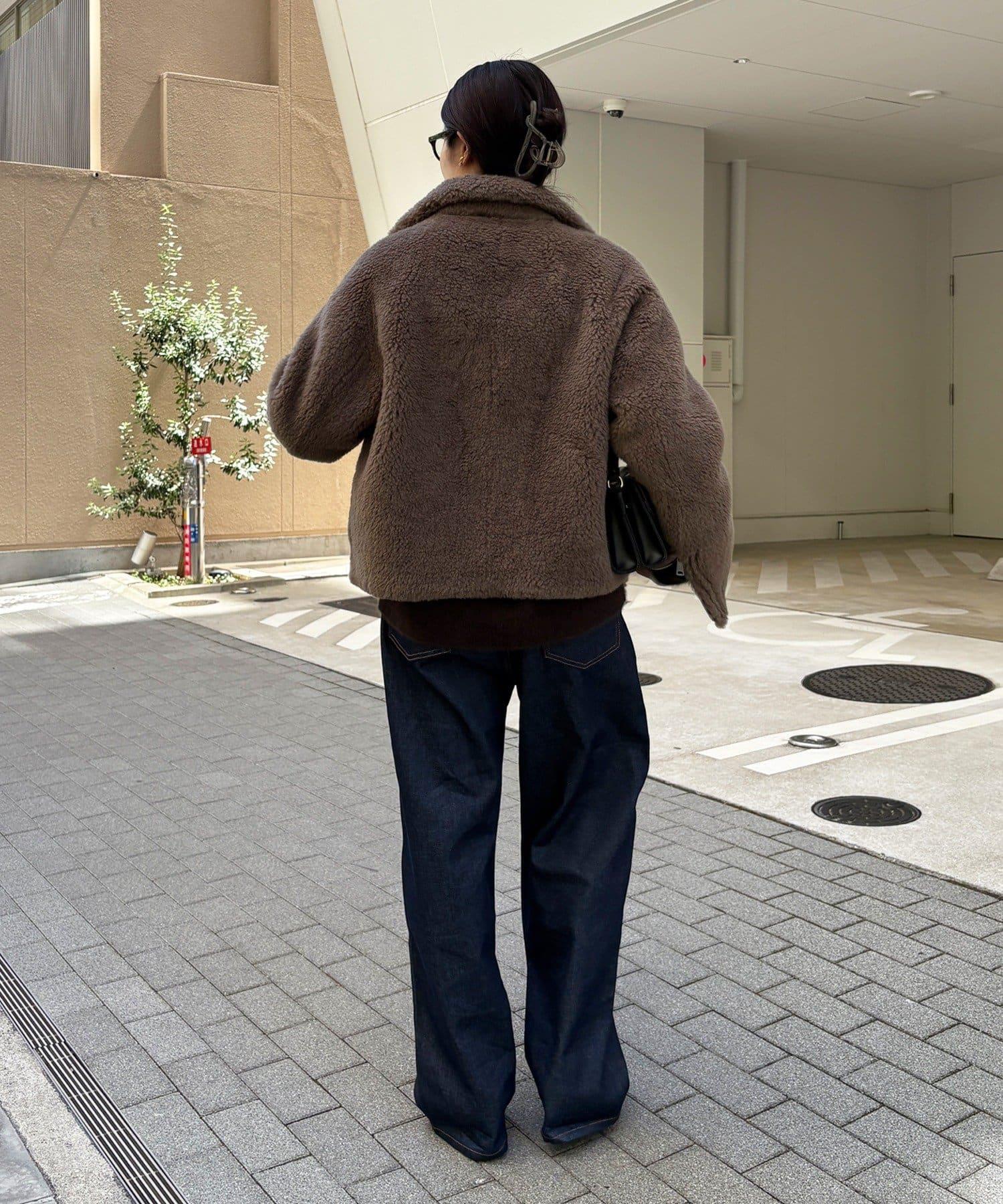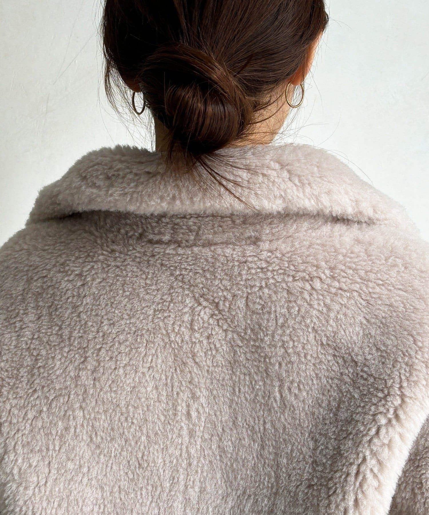 短款夾克採用柔軟的仿毛絨面料製成,兼具保暖性和奢華感。
