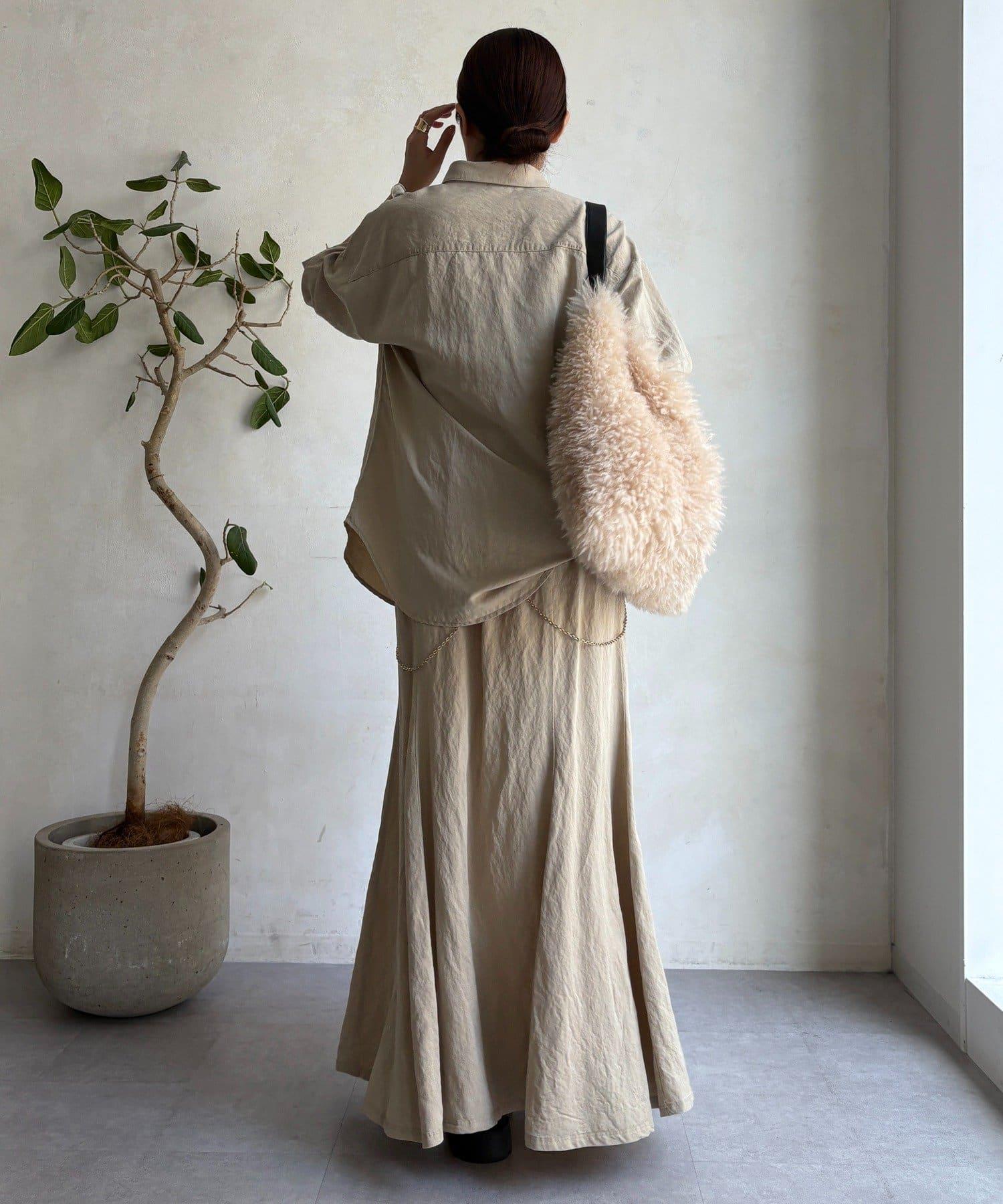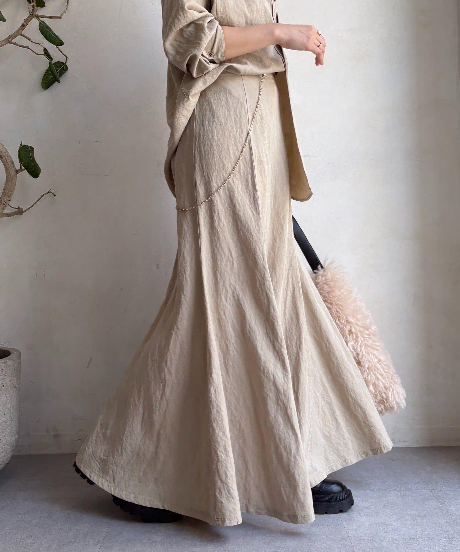 走起路來搖曳生姿的喇叭廓形,是為展現女性柔美一面而精心設計的。