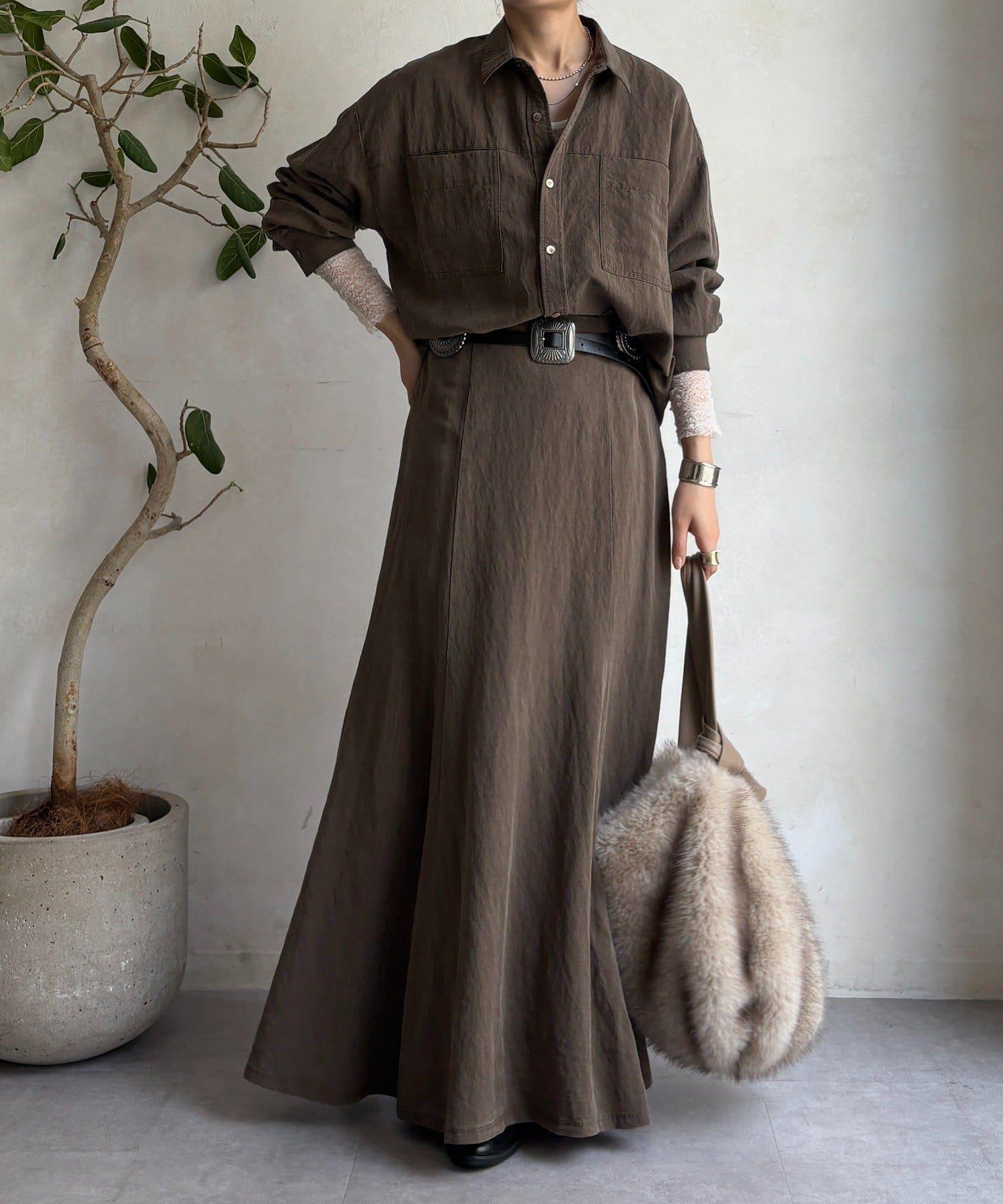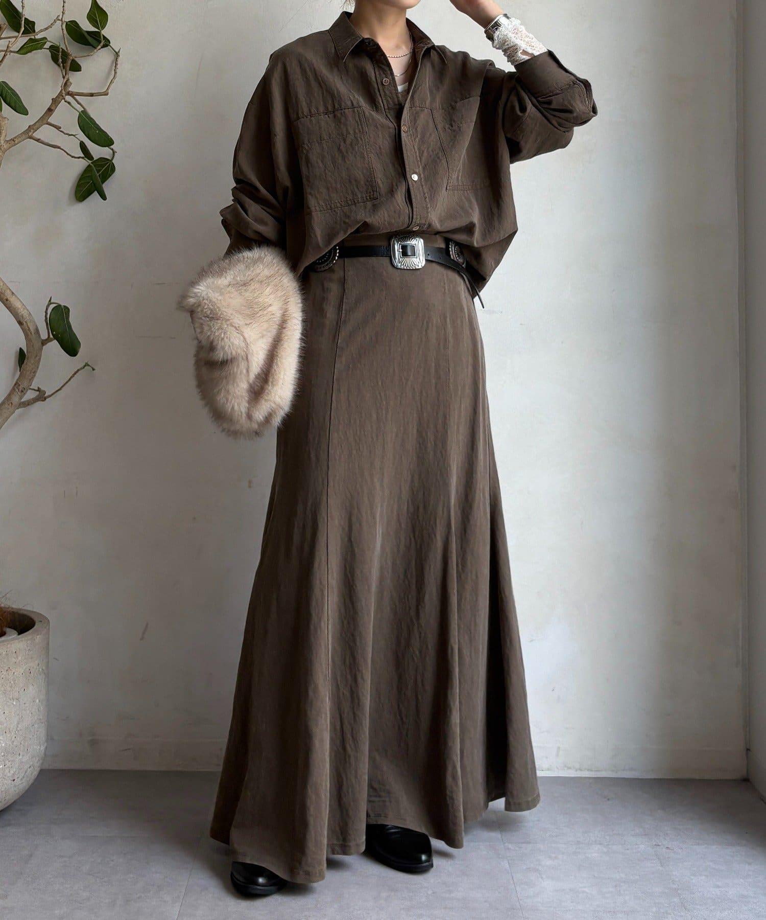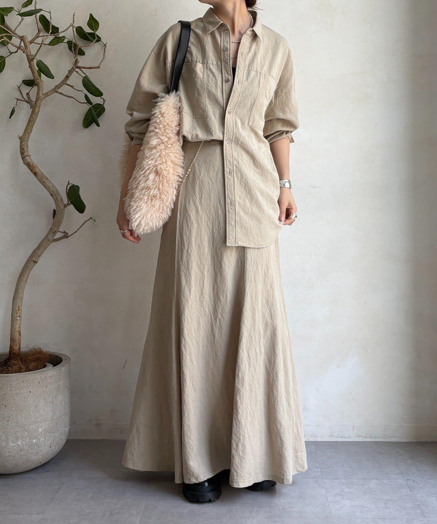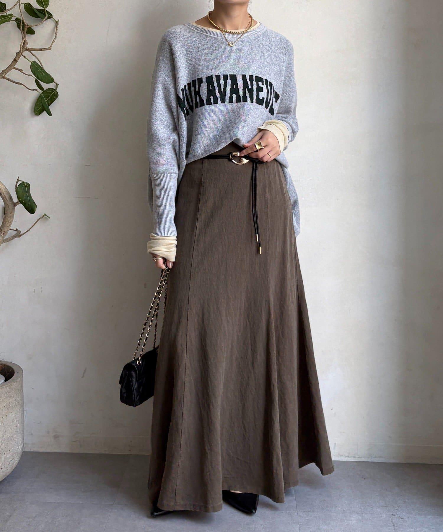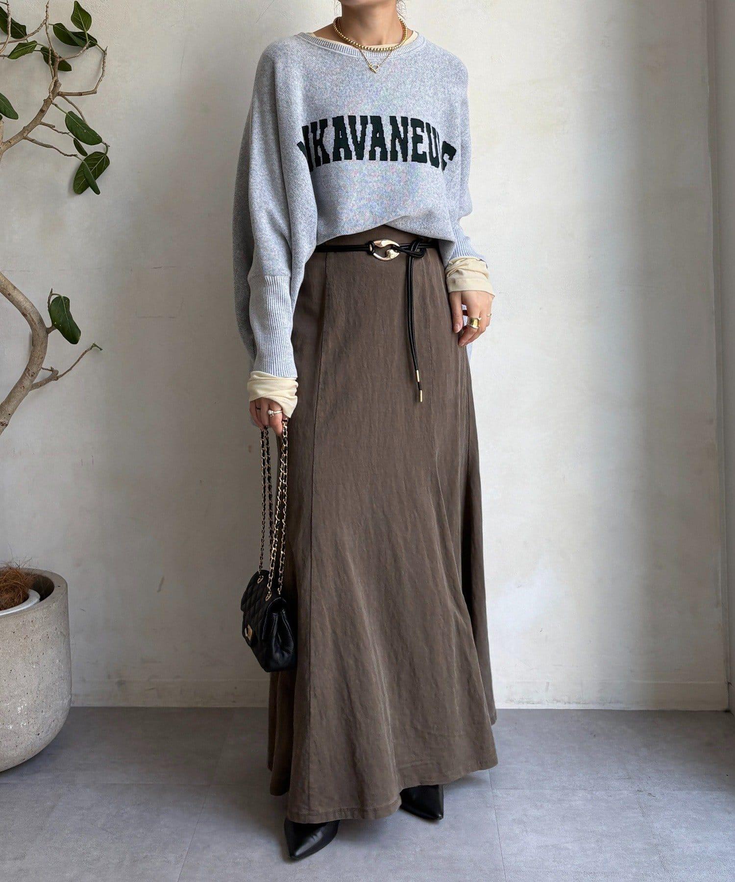 優雅的喇叭裙襬並不寬大,因此既可以隨意穿著,也可以穿出美感。