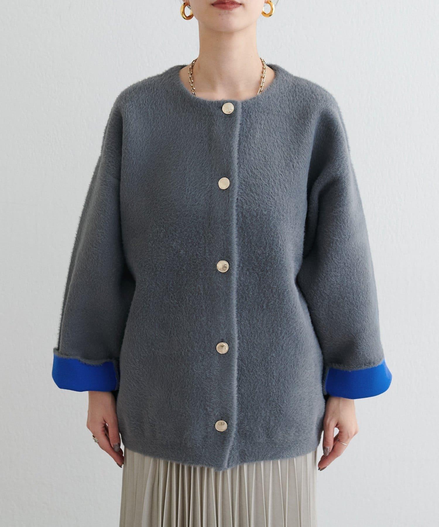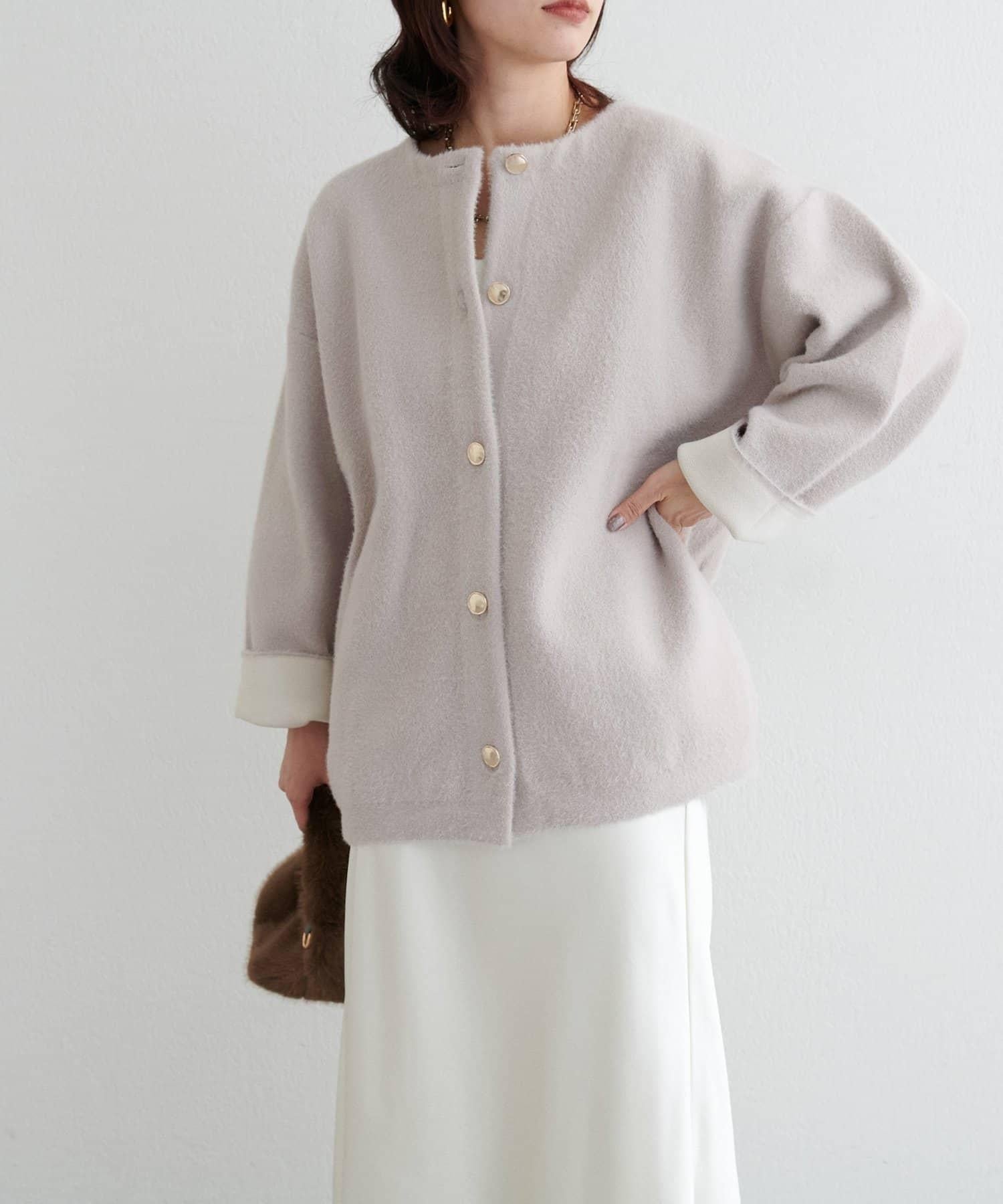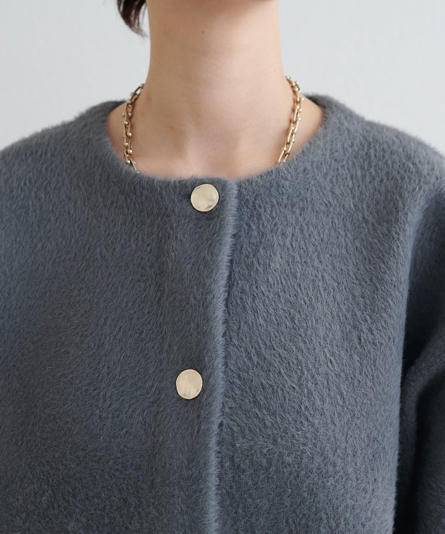 毛茸茸的針織開衫具有柔軟蓬鬆的雪貂觸感,讓人忍不住想摸一摸。