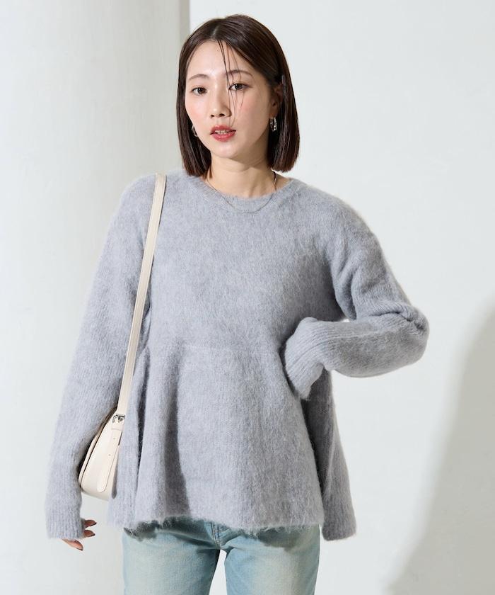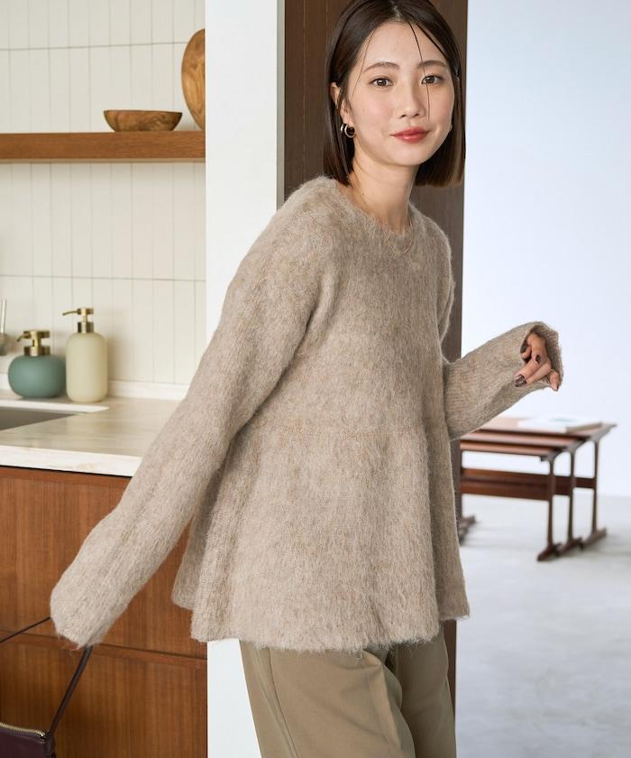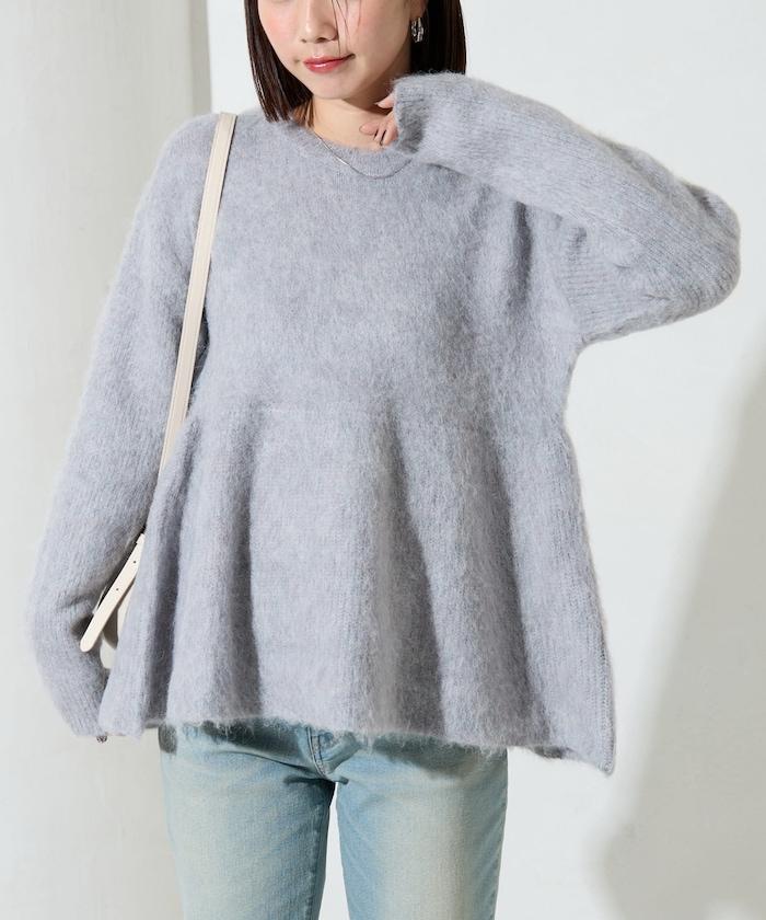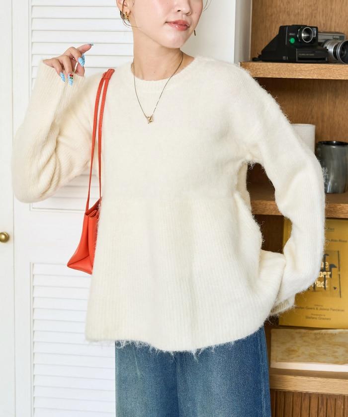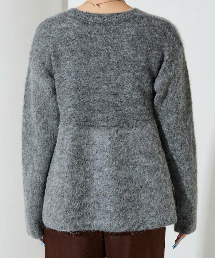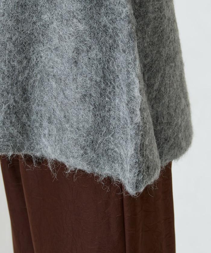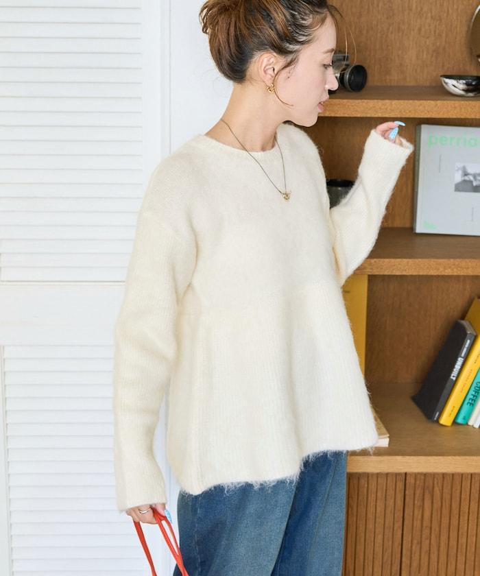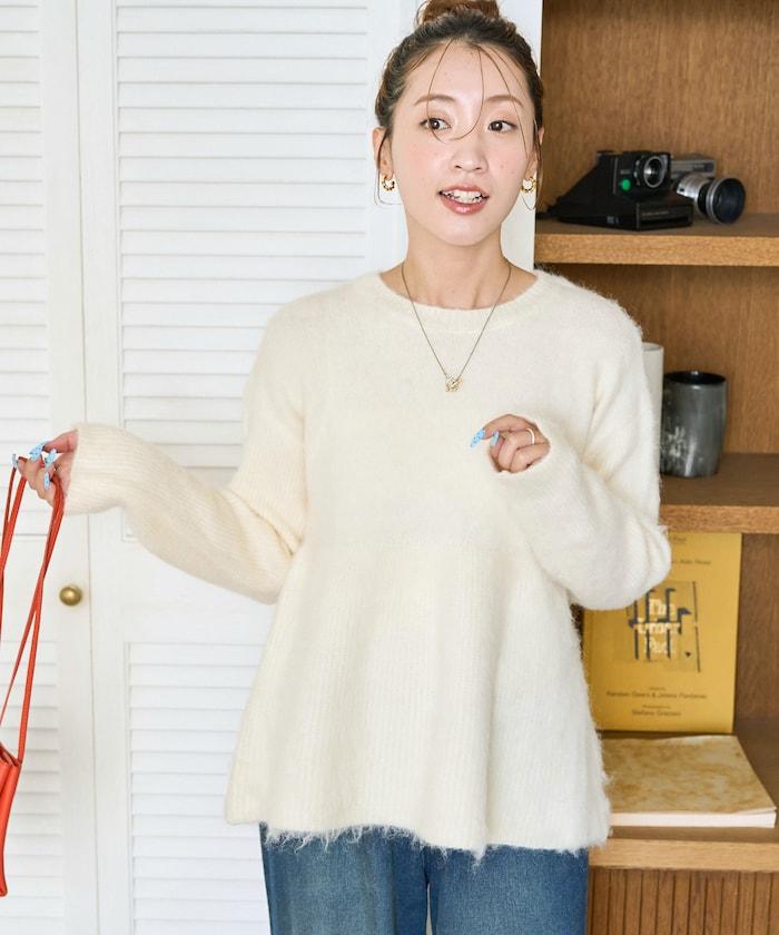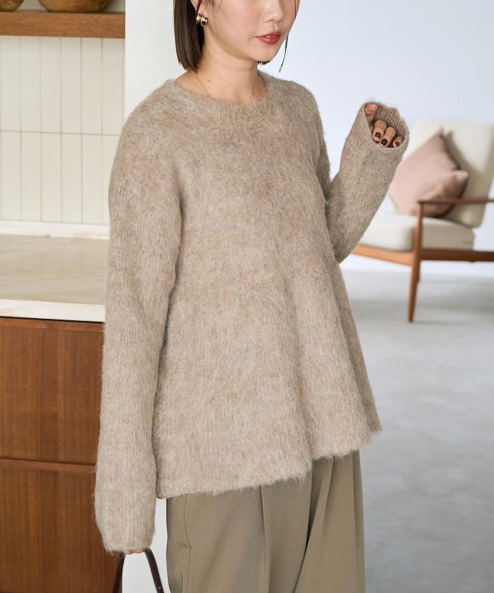 仿馬海毛質感長毛針織荷葉下襬套頭衫