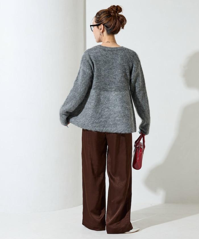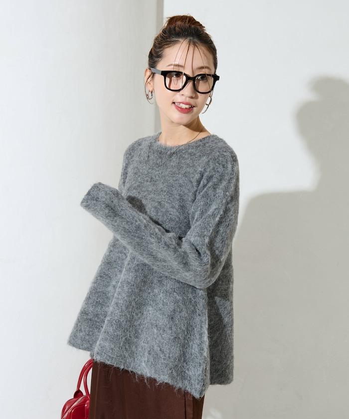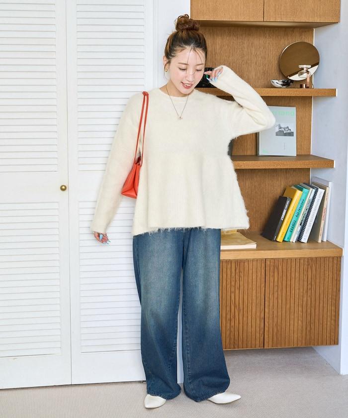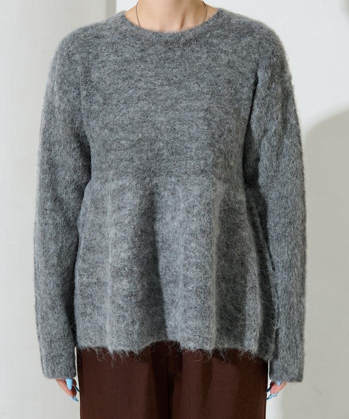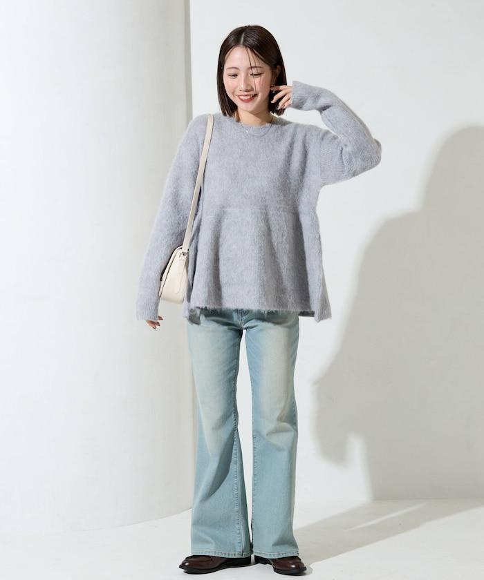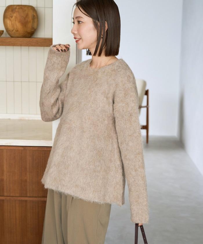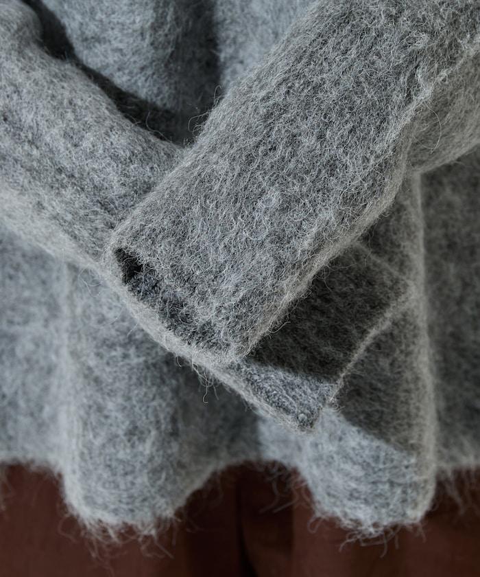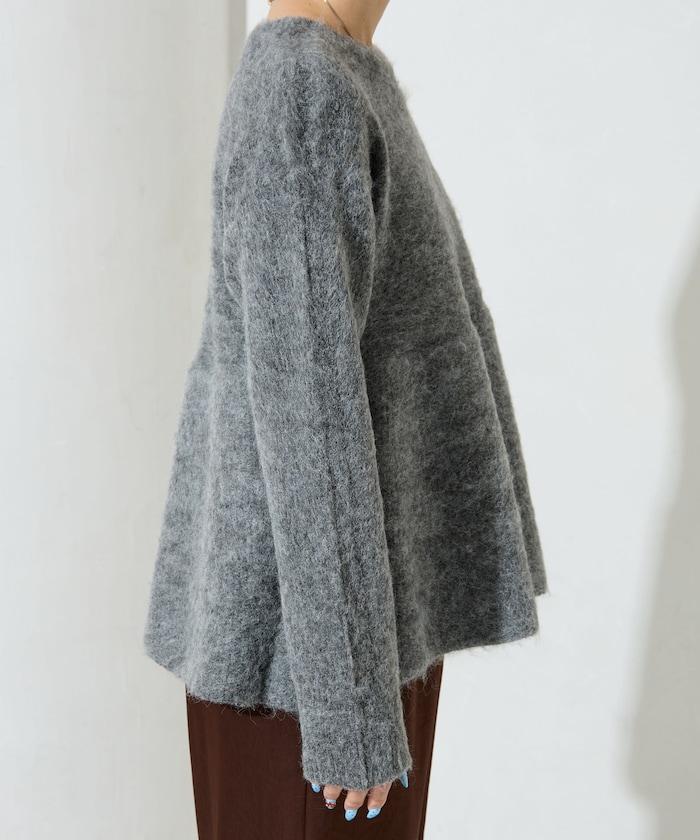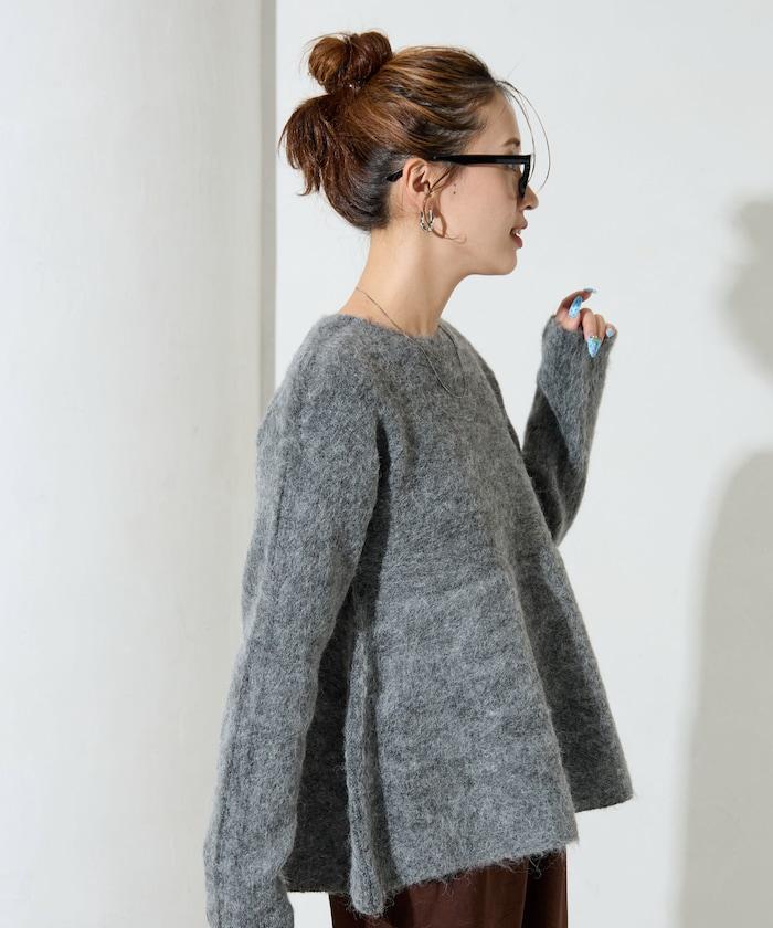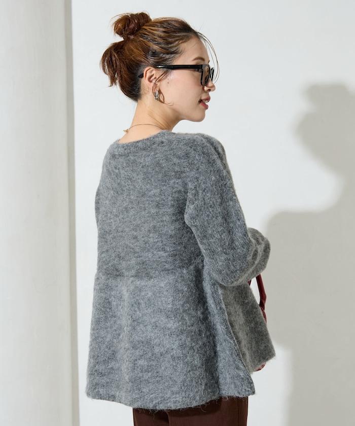 仿馬海毛質感長毛針織荷葉下襬套頭衫