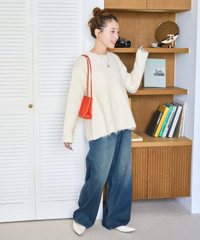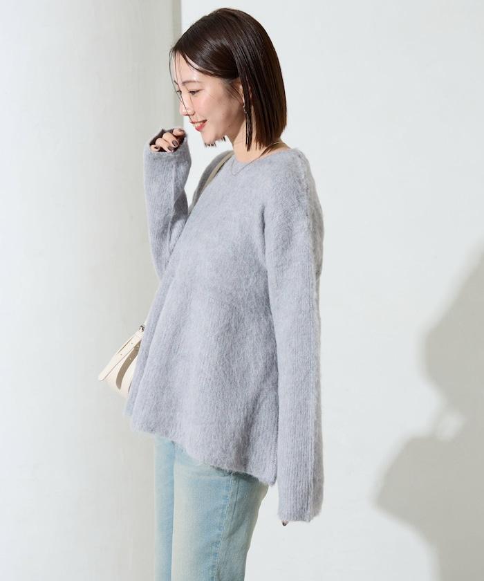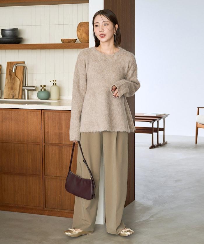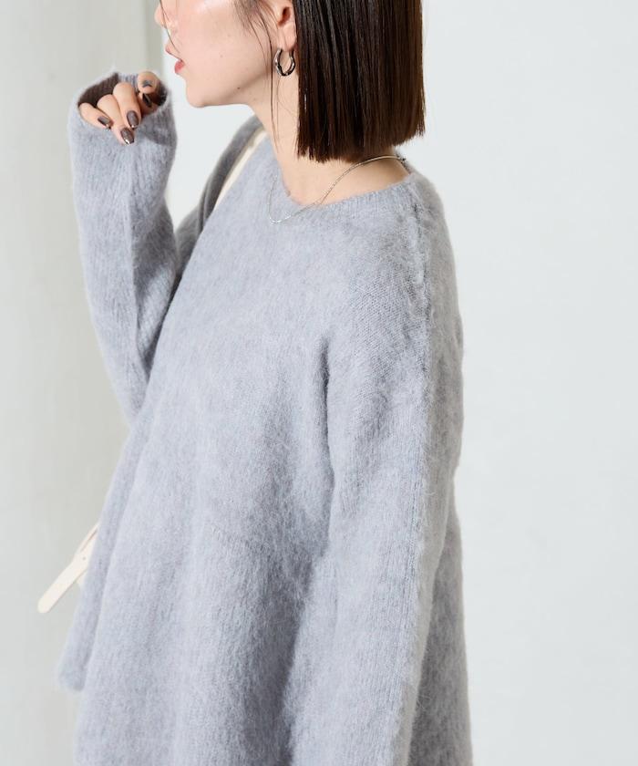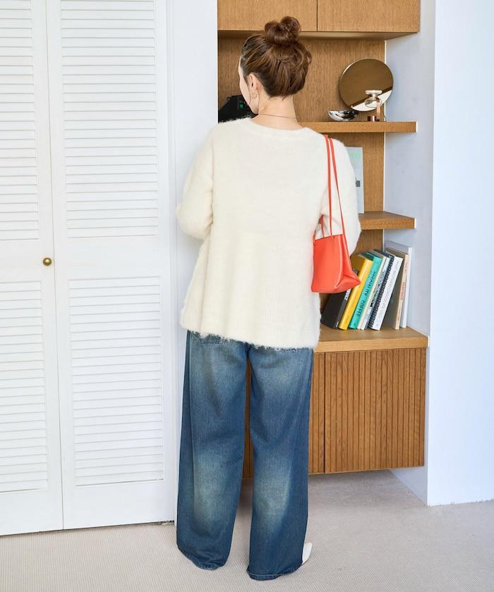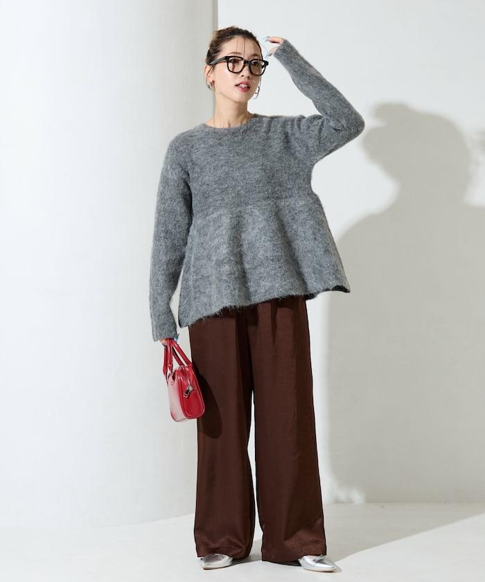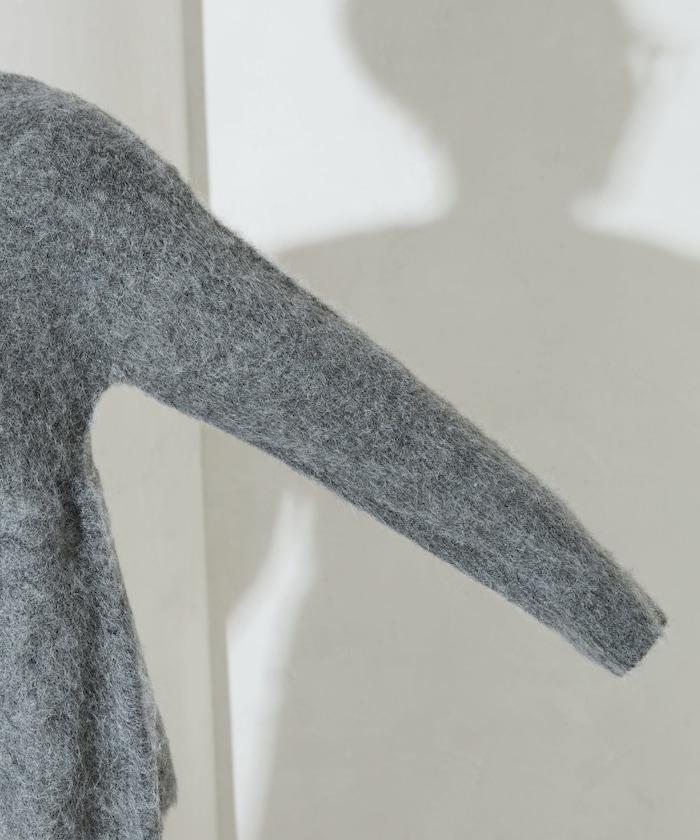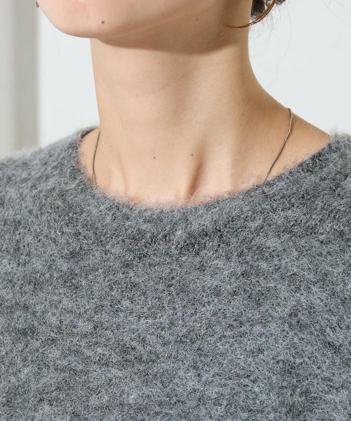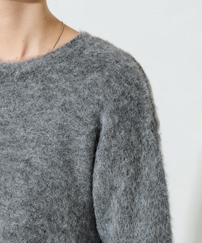 仿馬海毛質感長毛針織荷葉下襬套頭衫