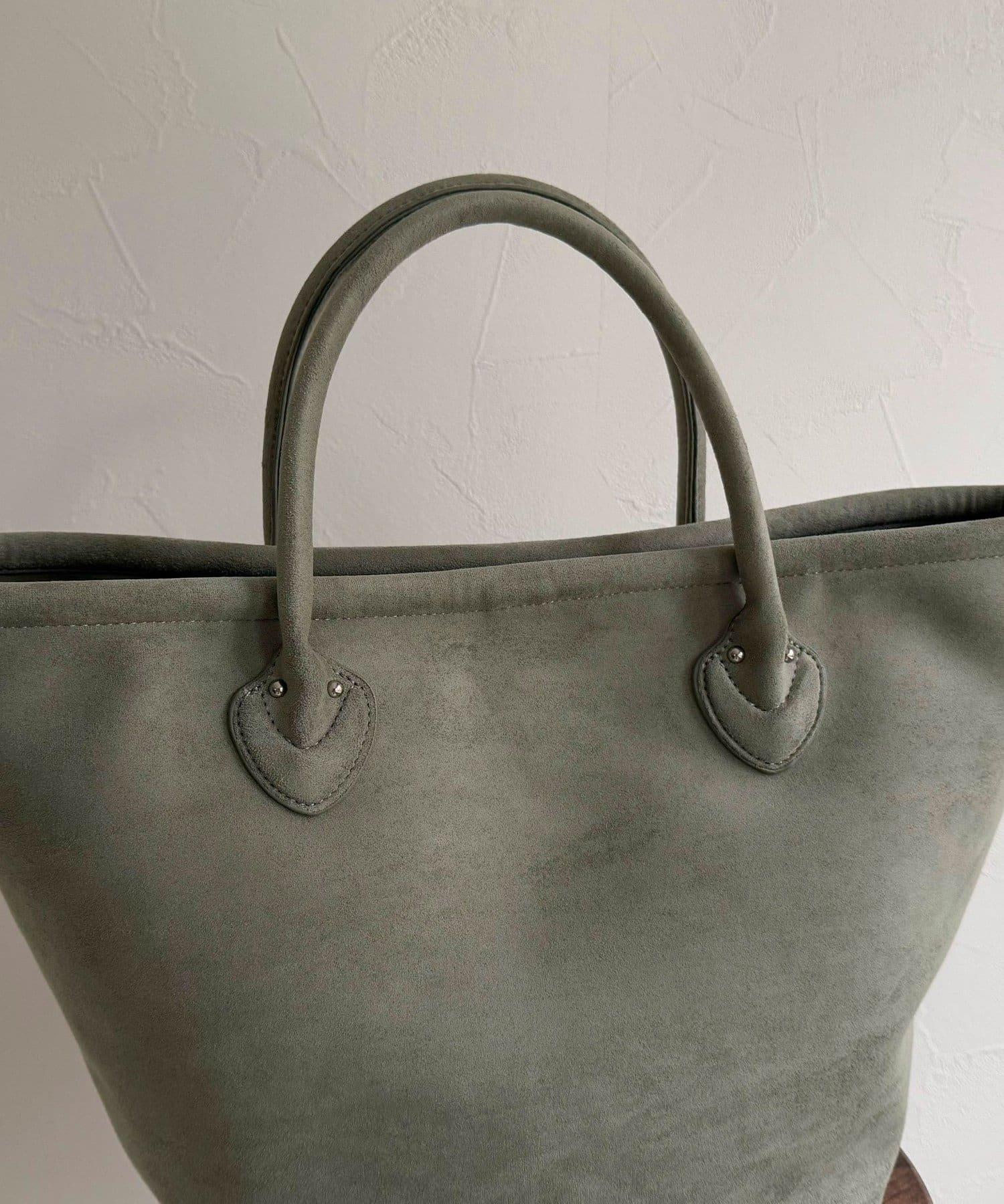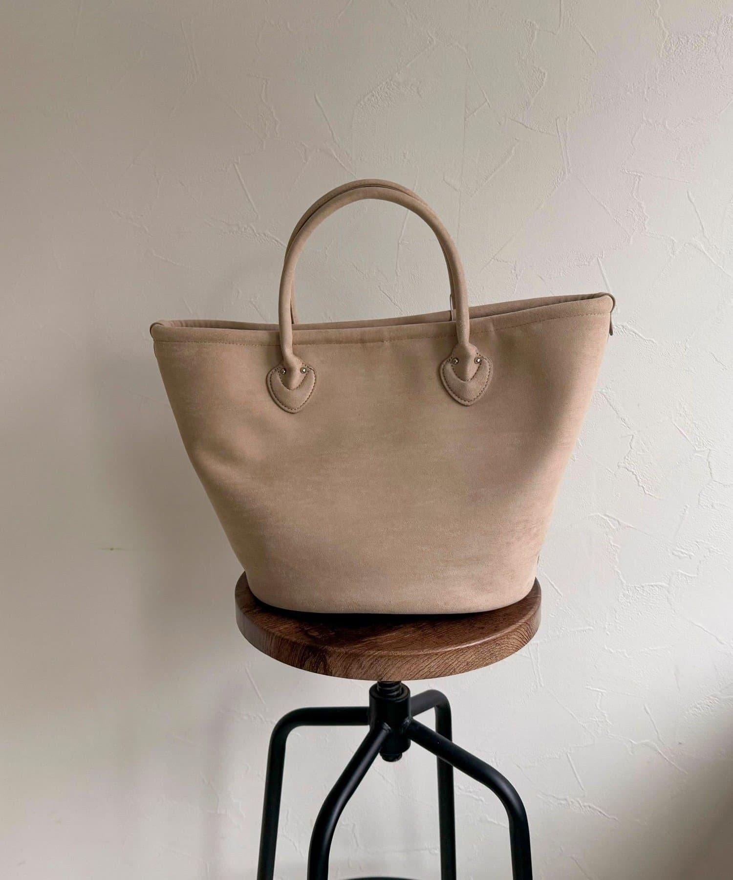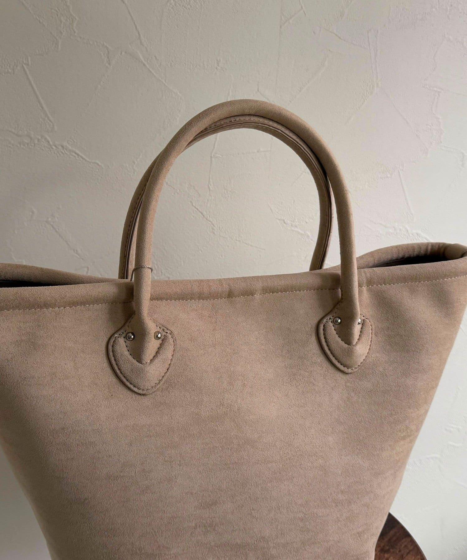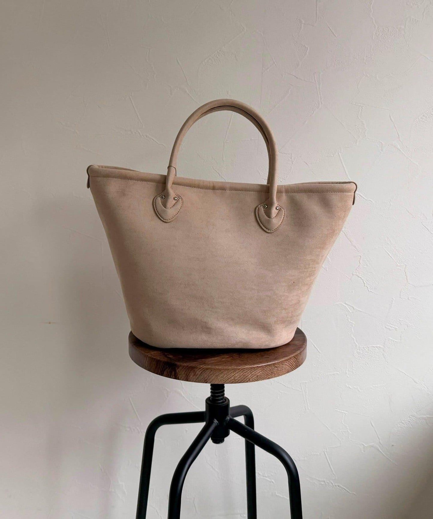 這款優雅的手提包由柔軟的仿麂皮製成。