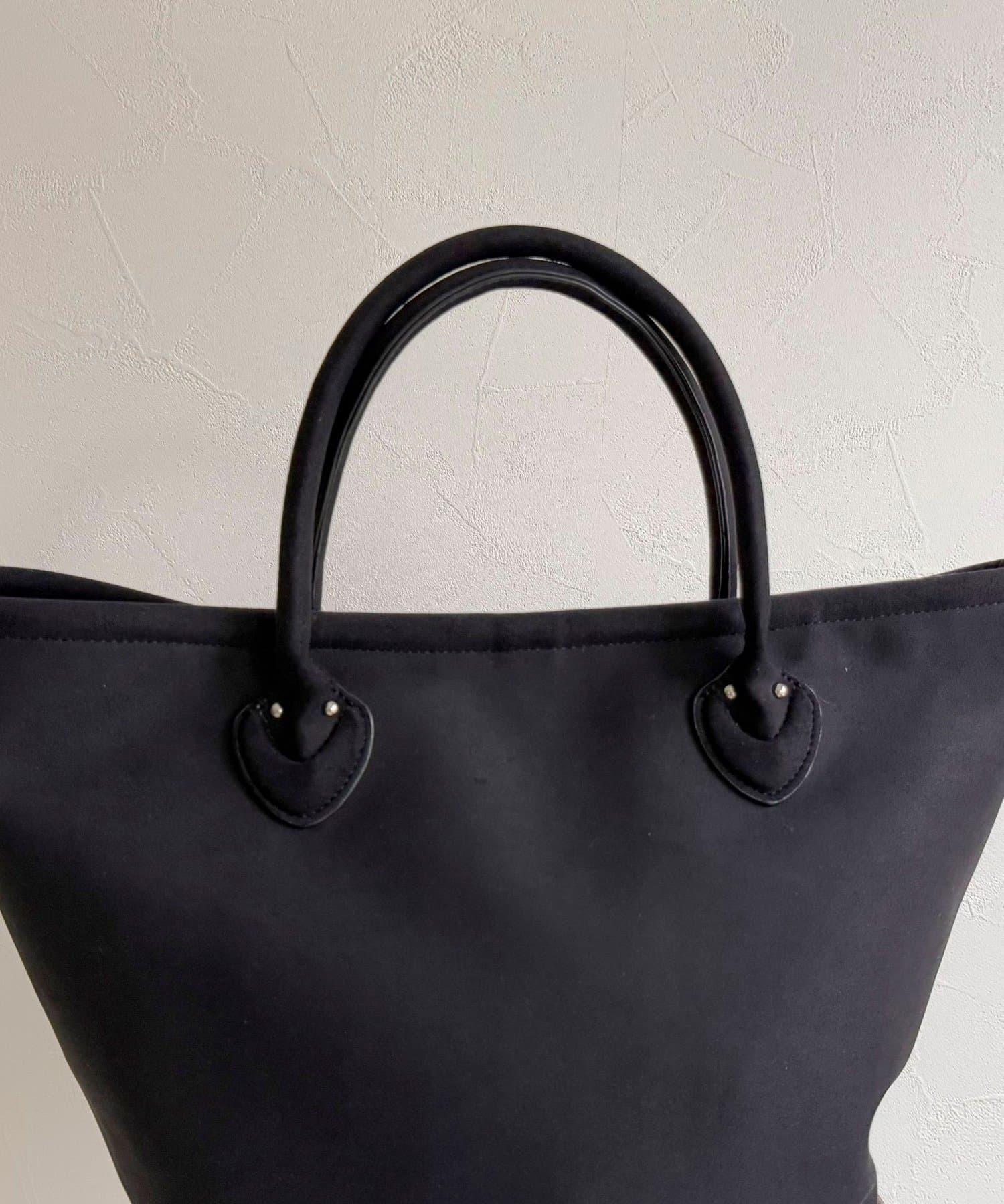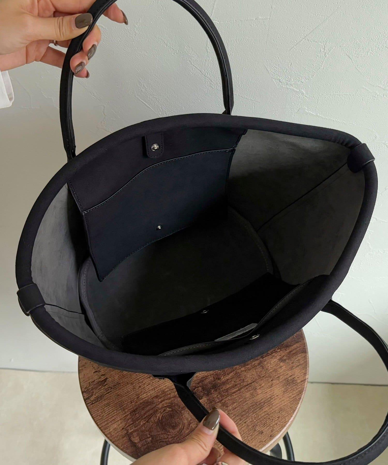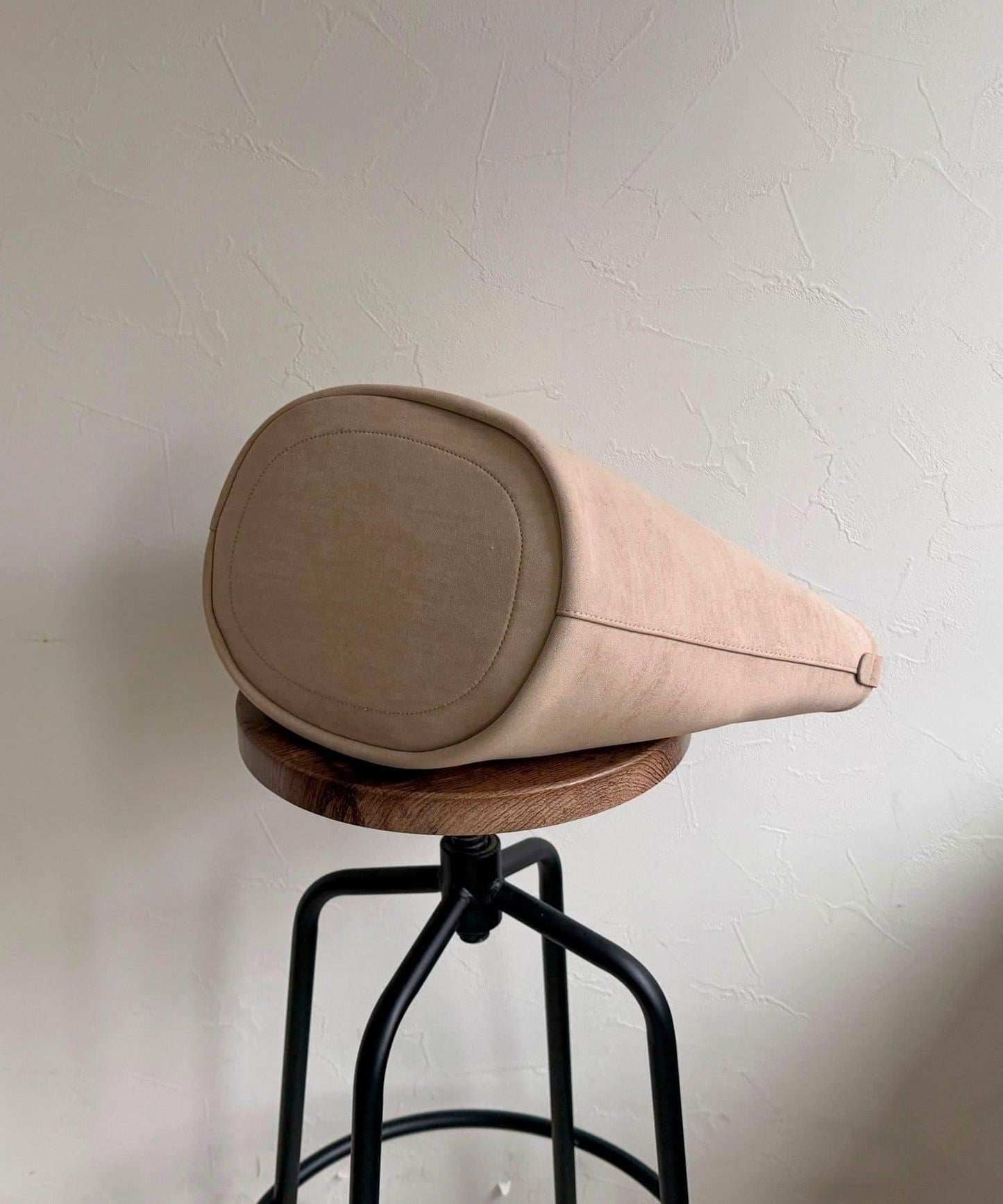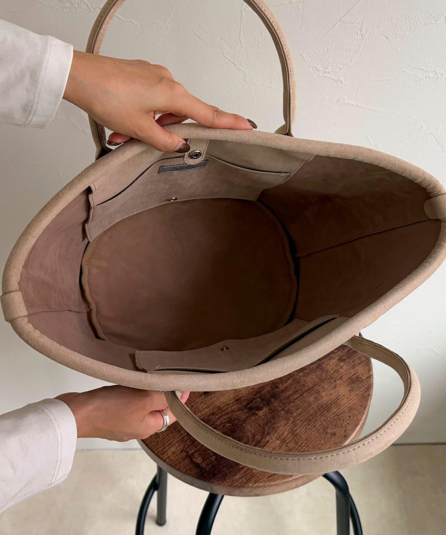這款優雅的手提包由柔軟的仿麂皮製成。