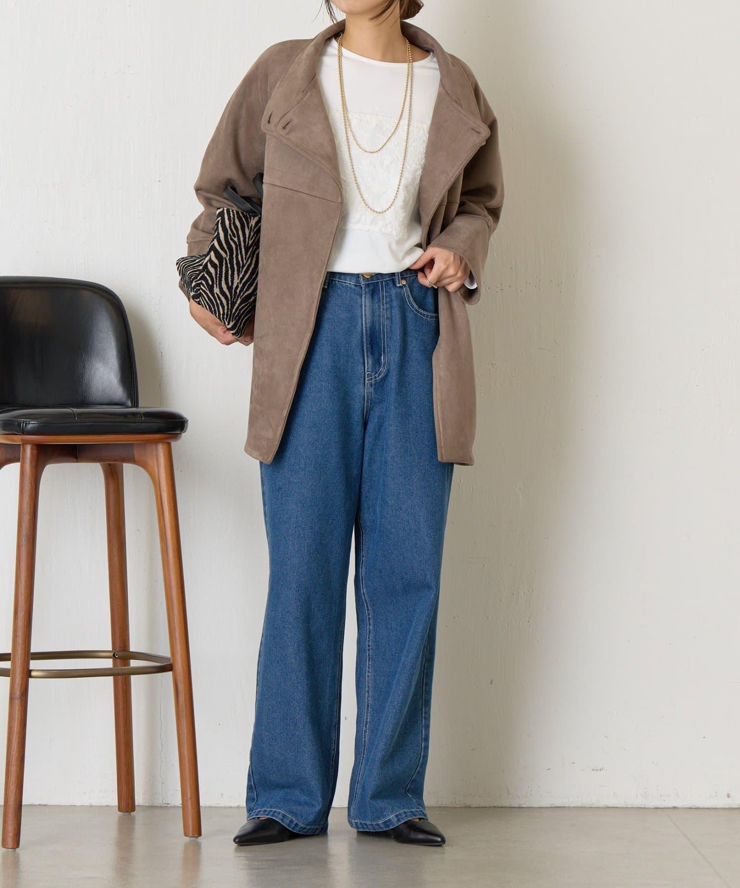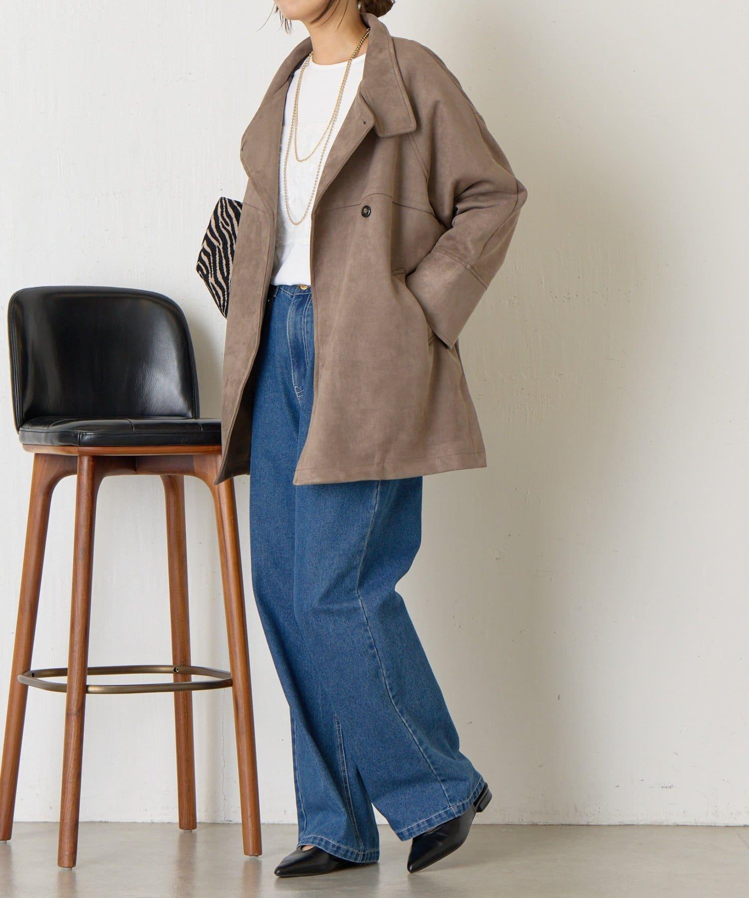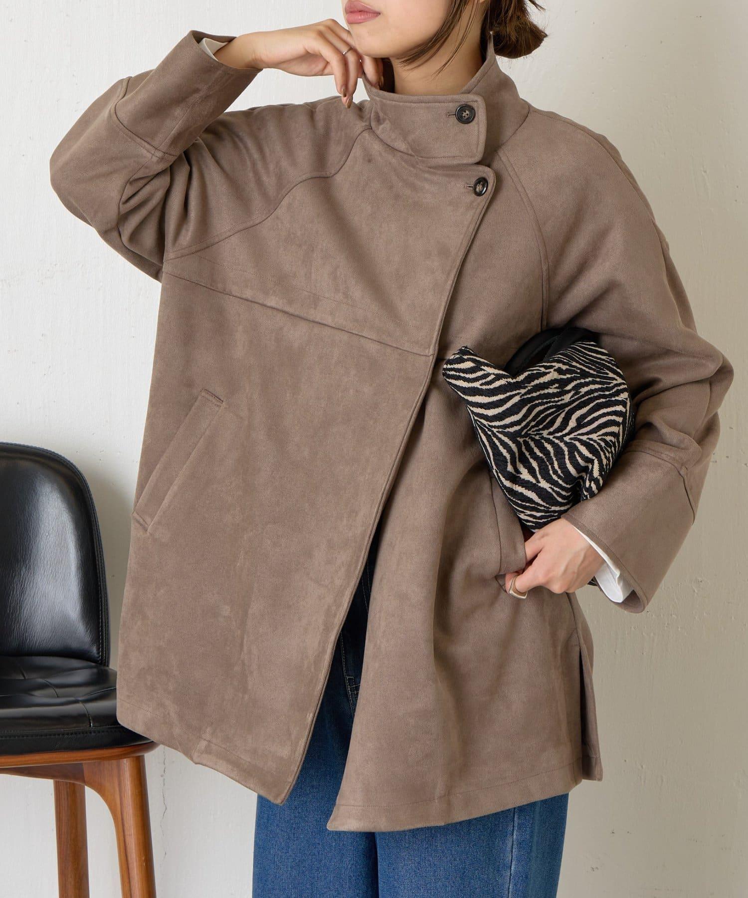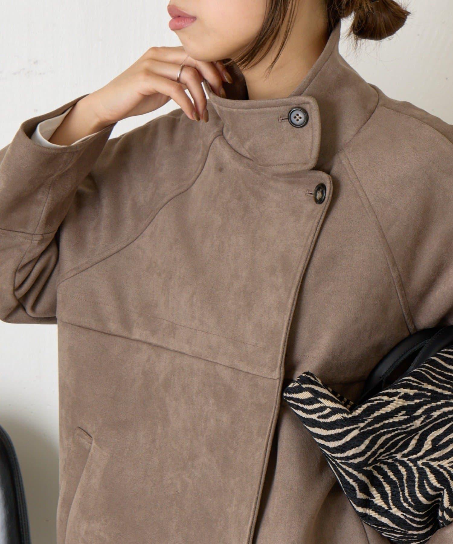 仿麂皮立領大衣