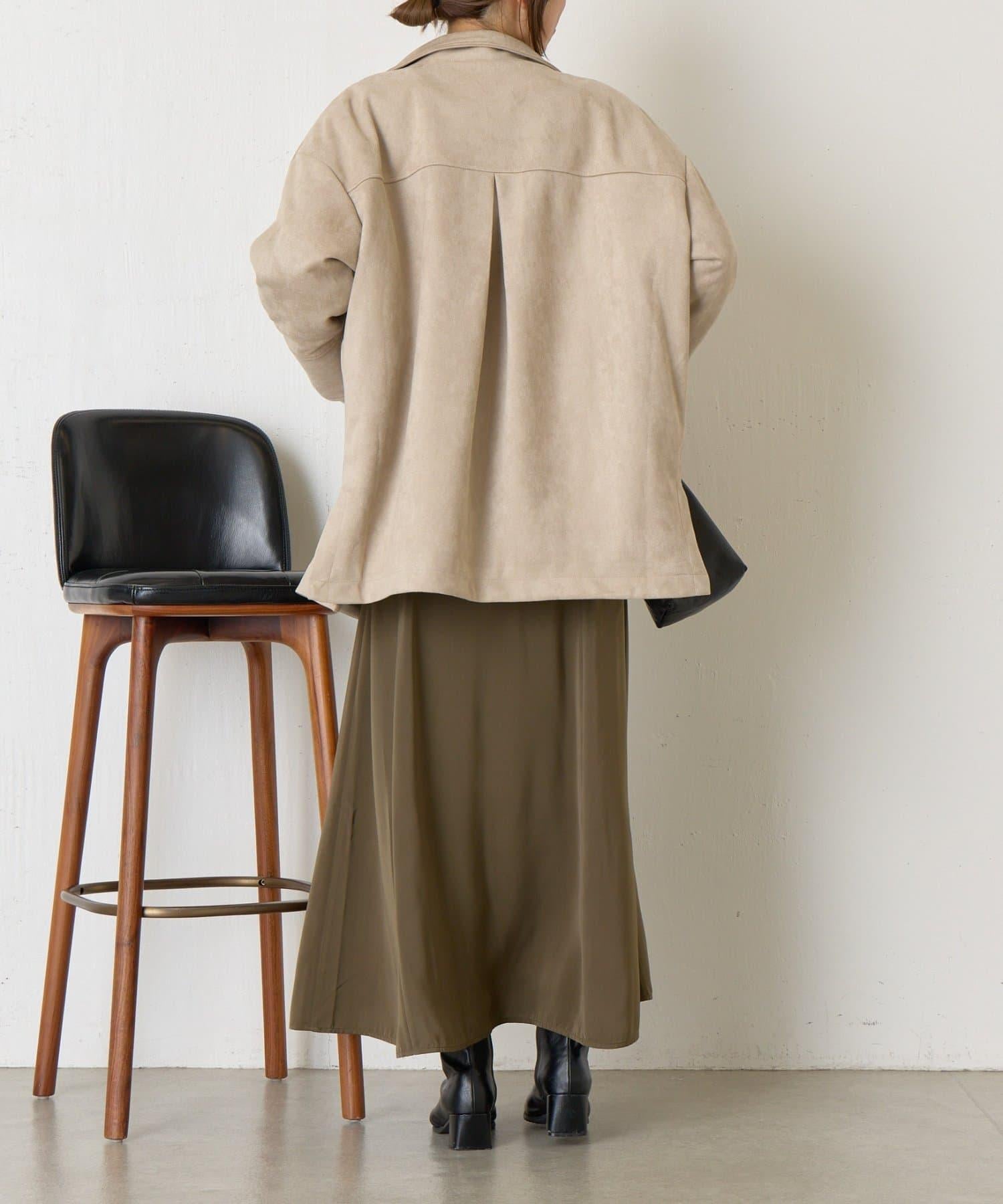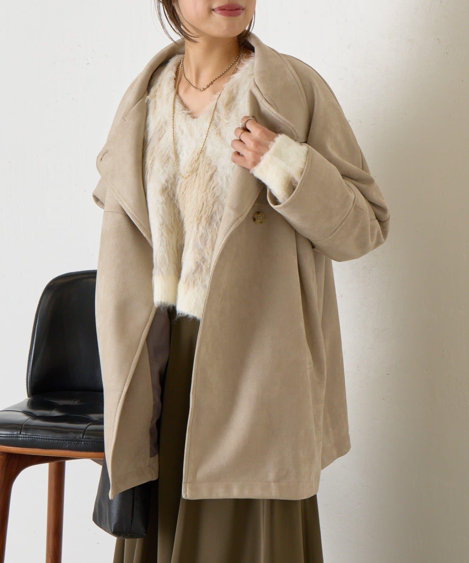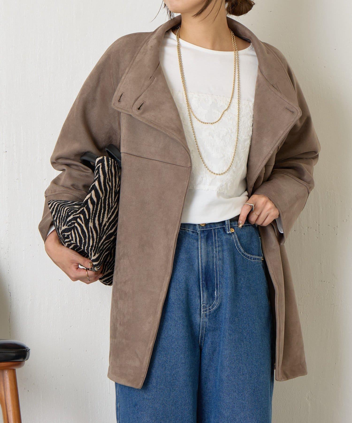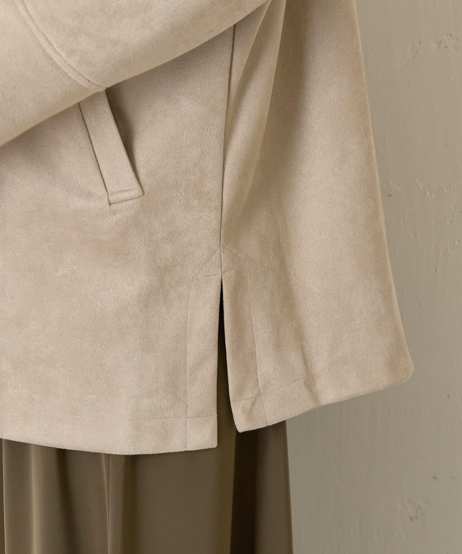 這款大衣採用光滑的仿麂皮絨質地,優雅地彰顯女性魅力。