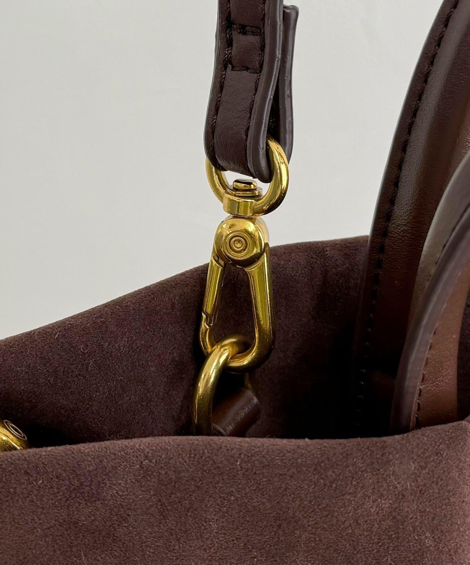 只需扣緊兩側的金屬配件,便可將包包變為梯形,讓您盡享排列組合的樂趣。