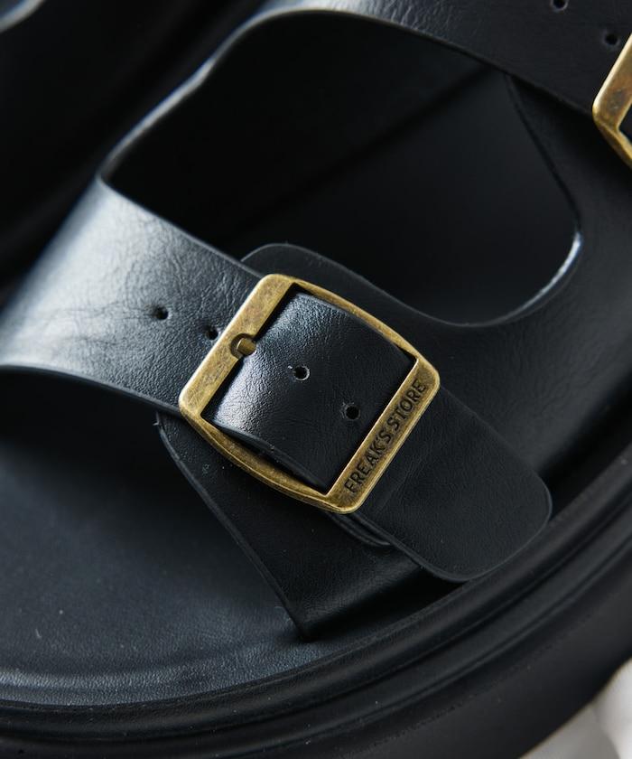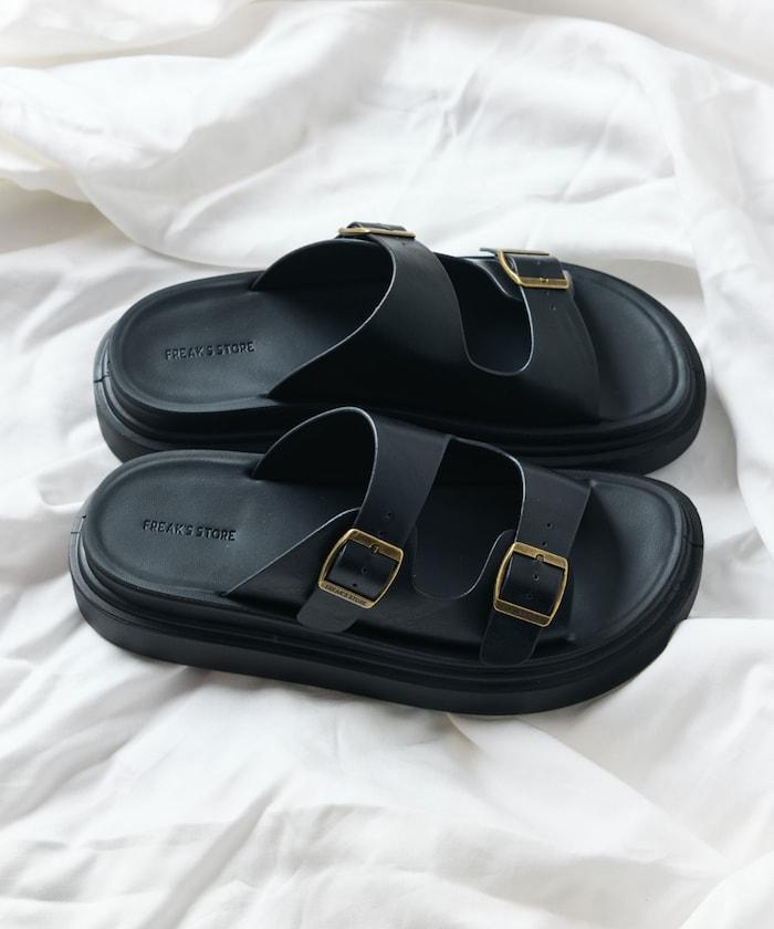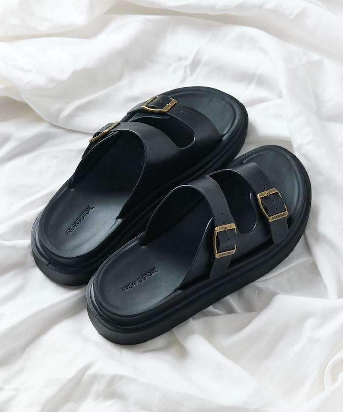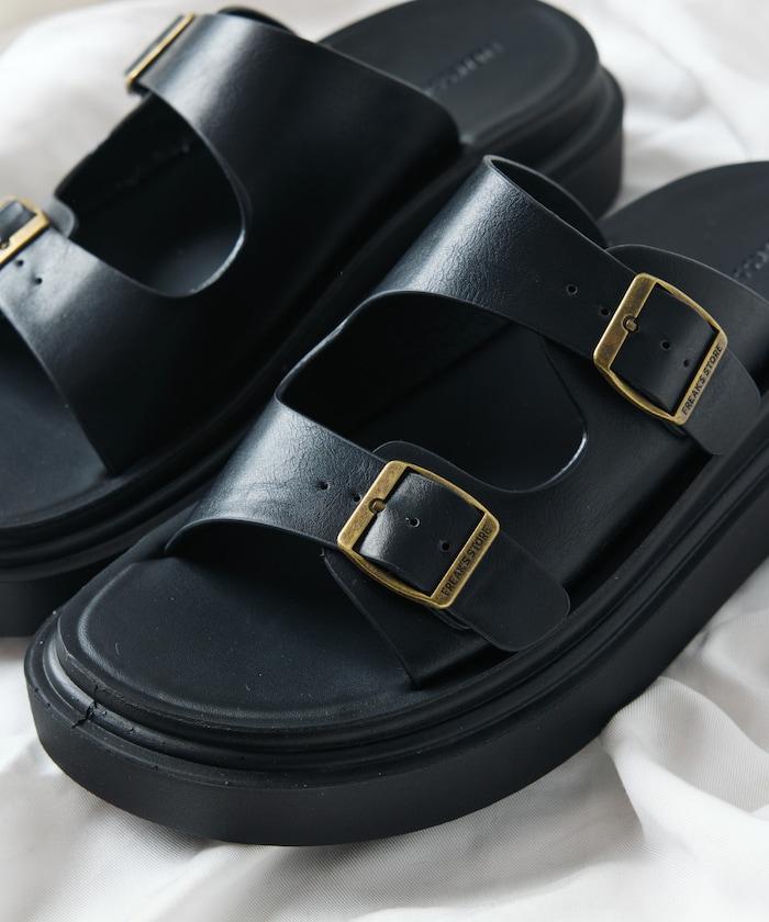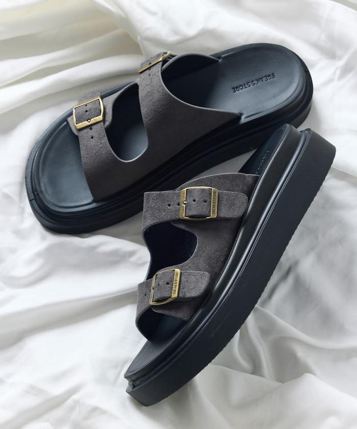 仿麂皮 雙帶 滑坡涼鞋 / 厚底鞋底 [23~28cm]