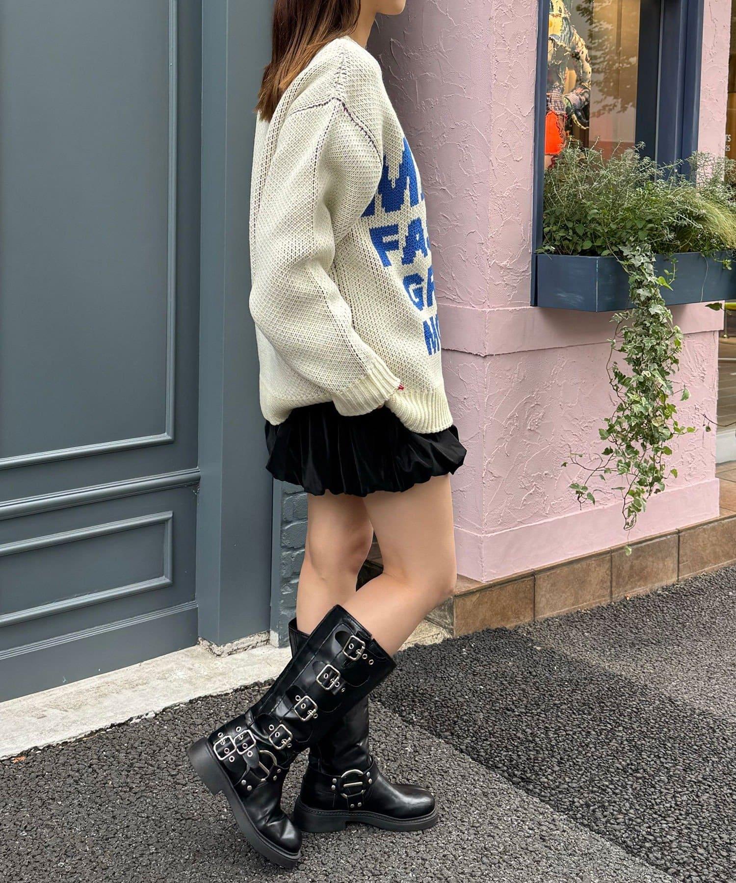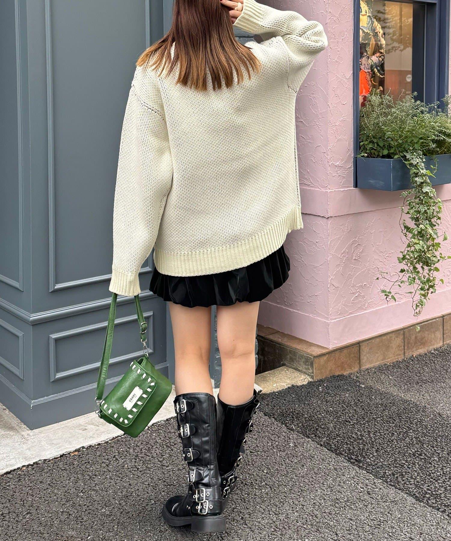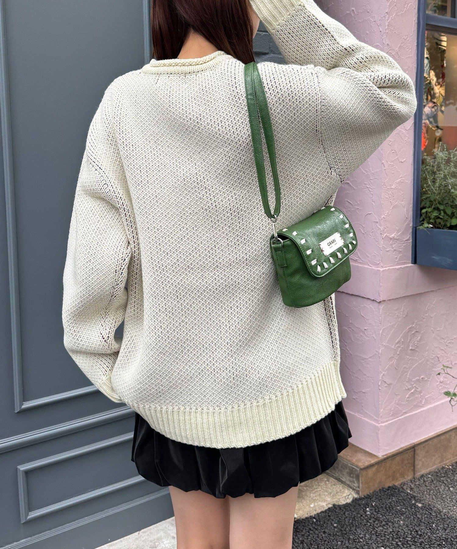 粗糙的低針距針織和卷領設計給人溫暖、輕鬆的感覺。