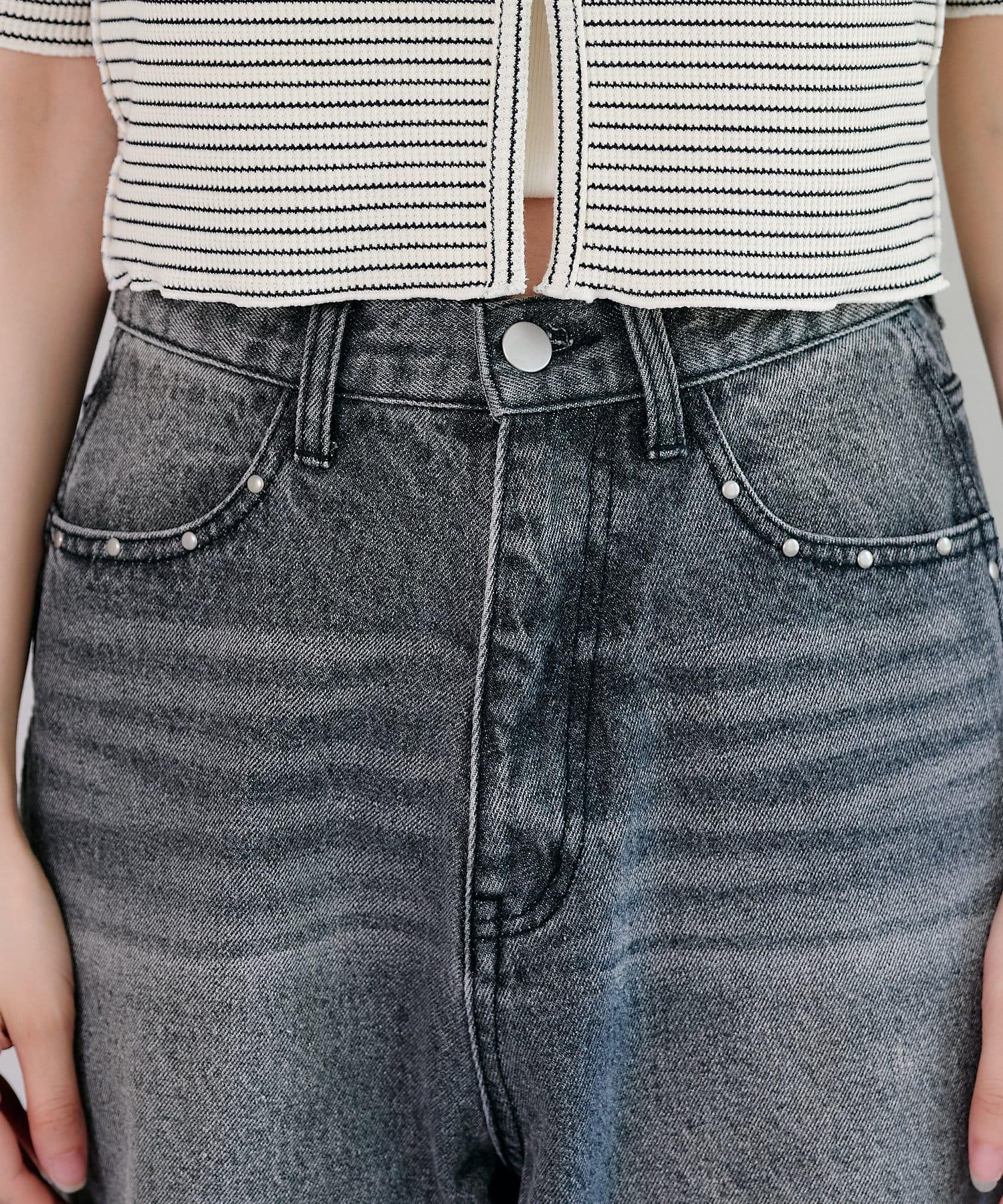 【低身高尺寸/2尺寸可選/可調節腰圍】鉚釘牛仔褲