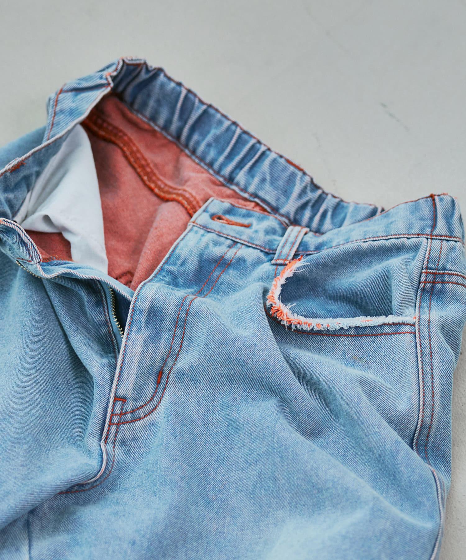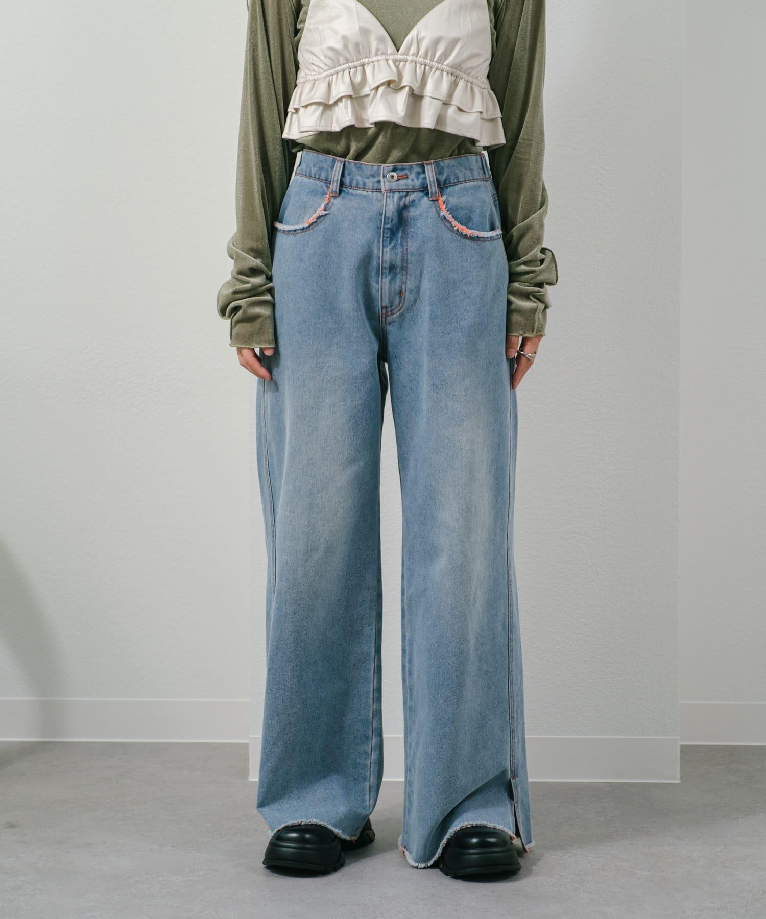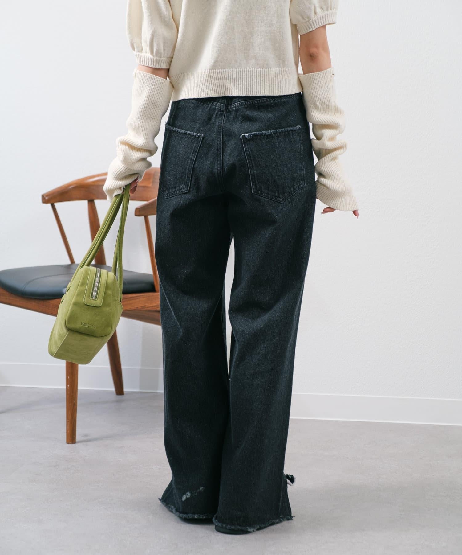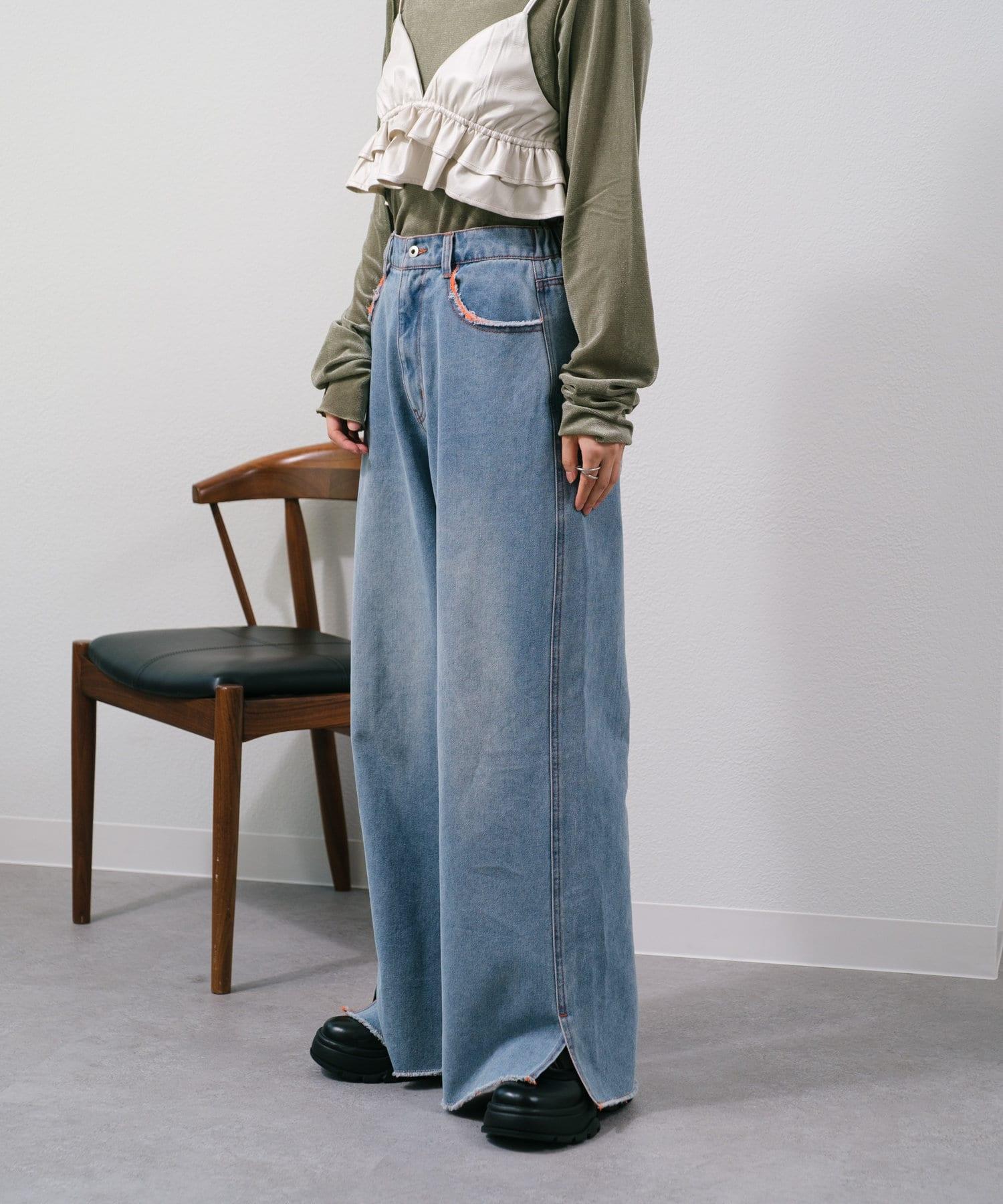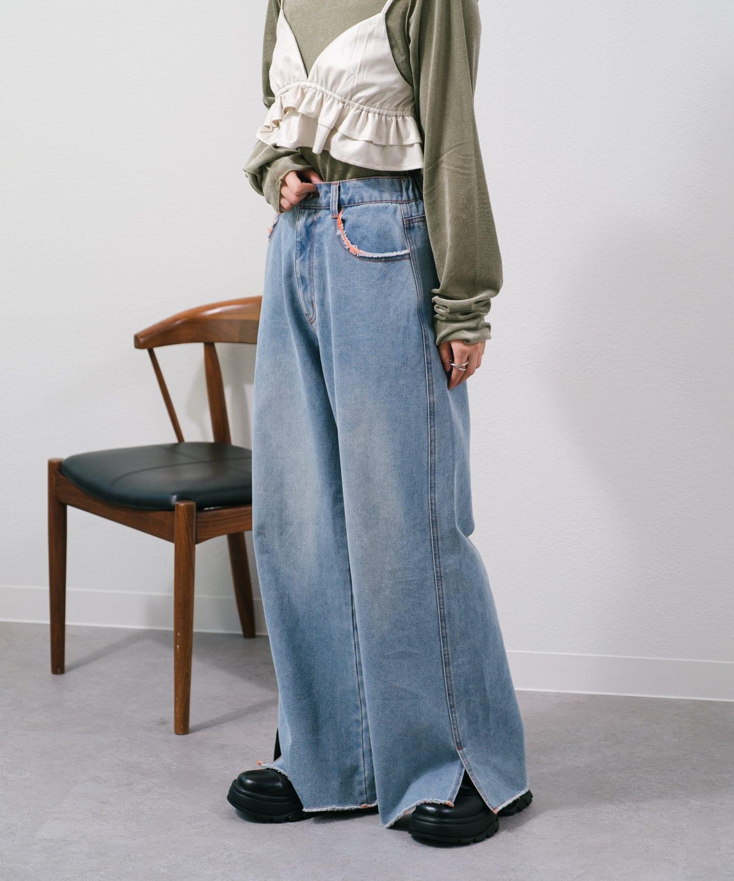 【低身高尺寸/2尺寸】牛仔褲開叉寬鬆褲