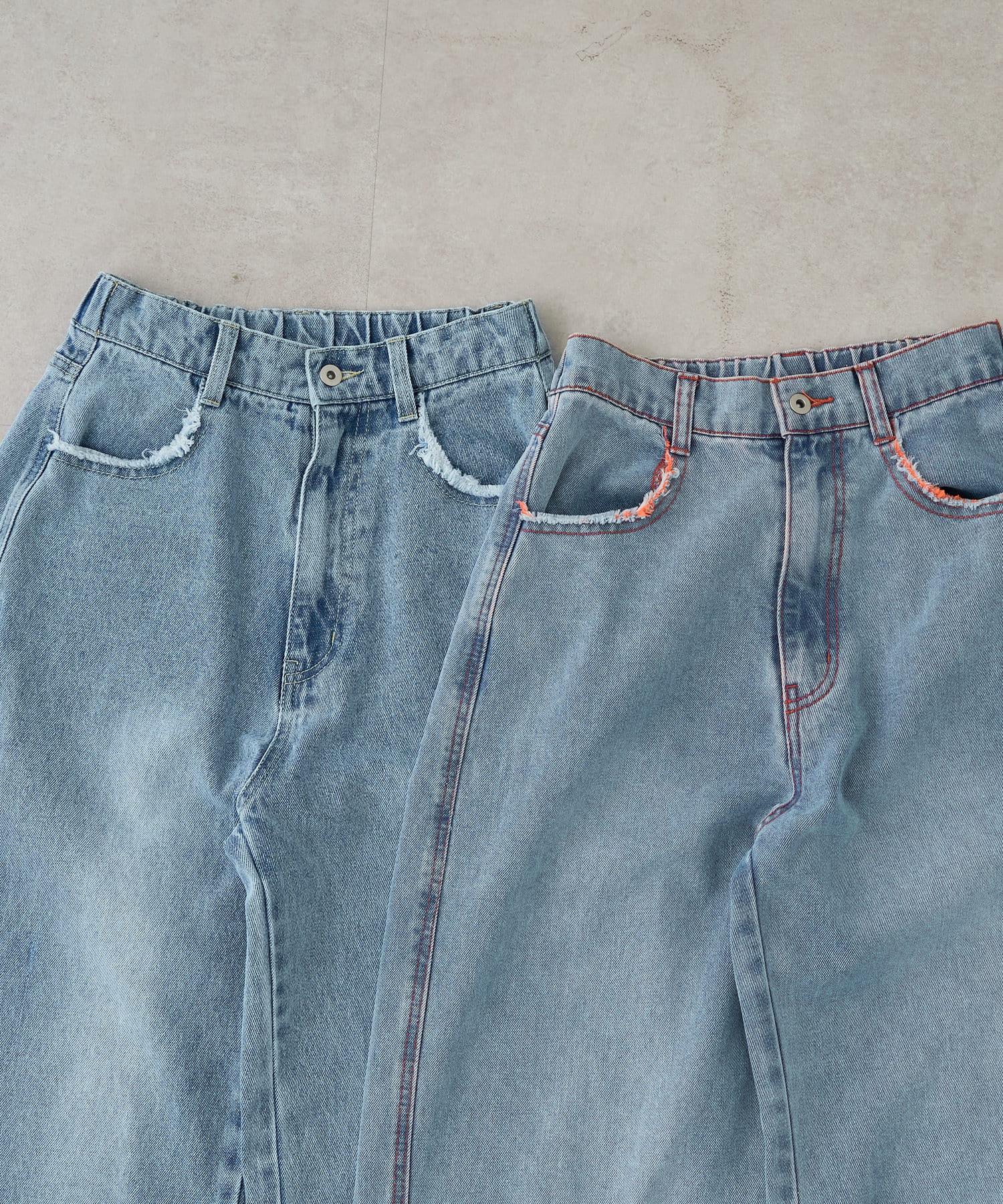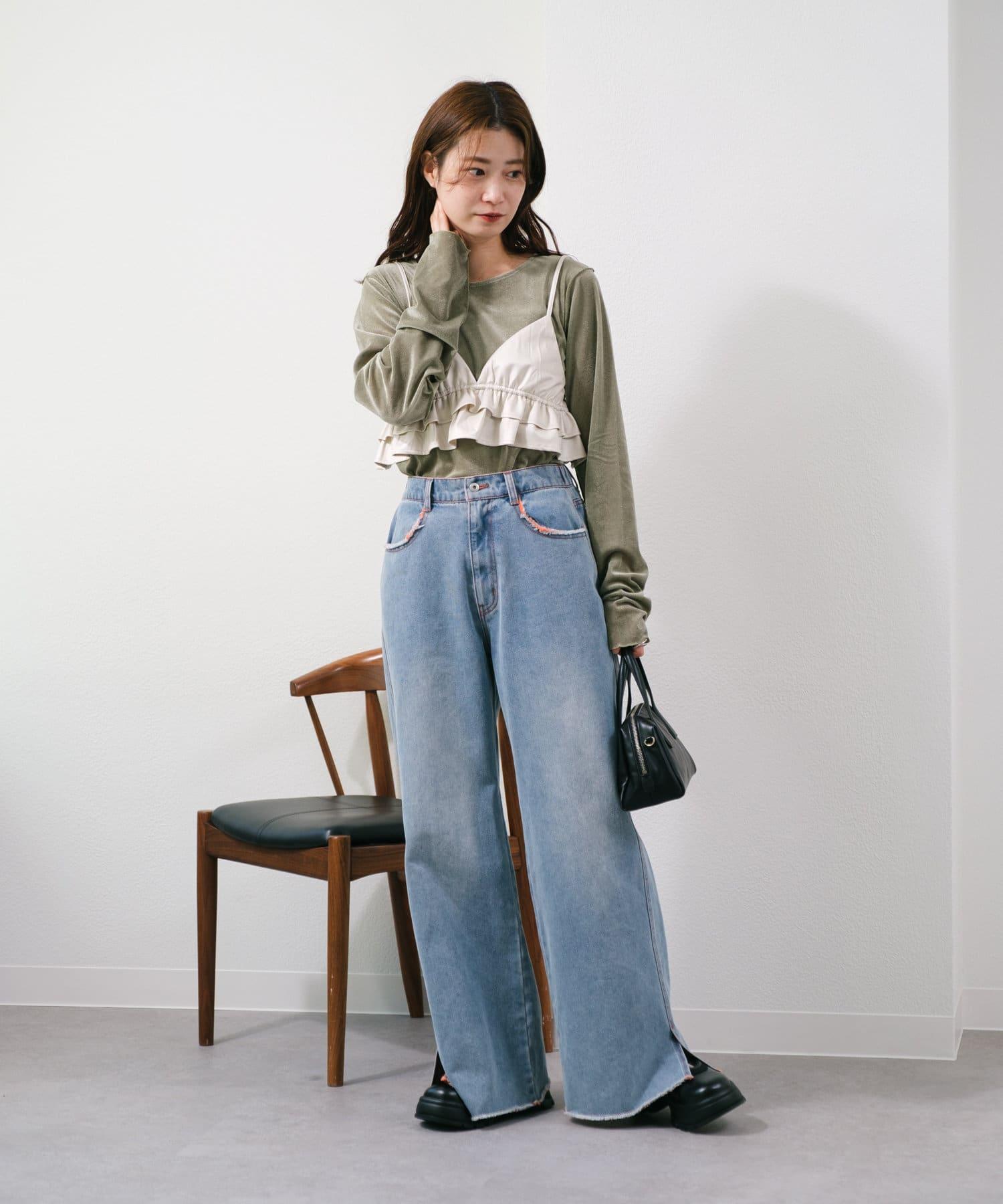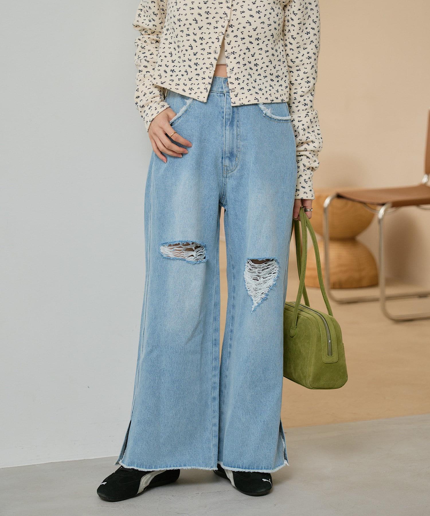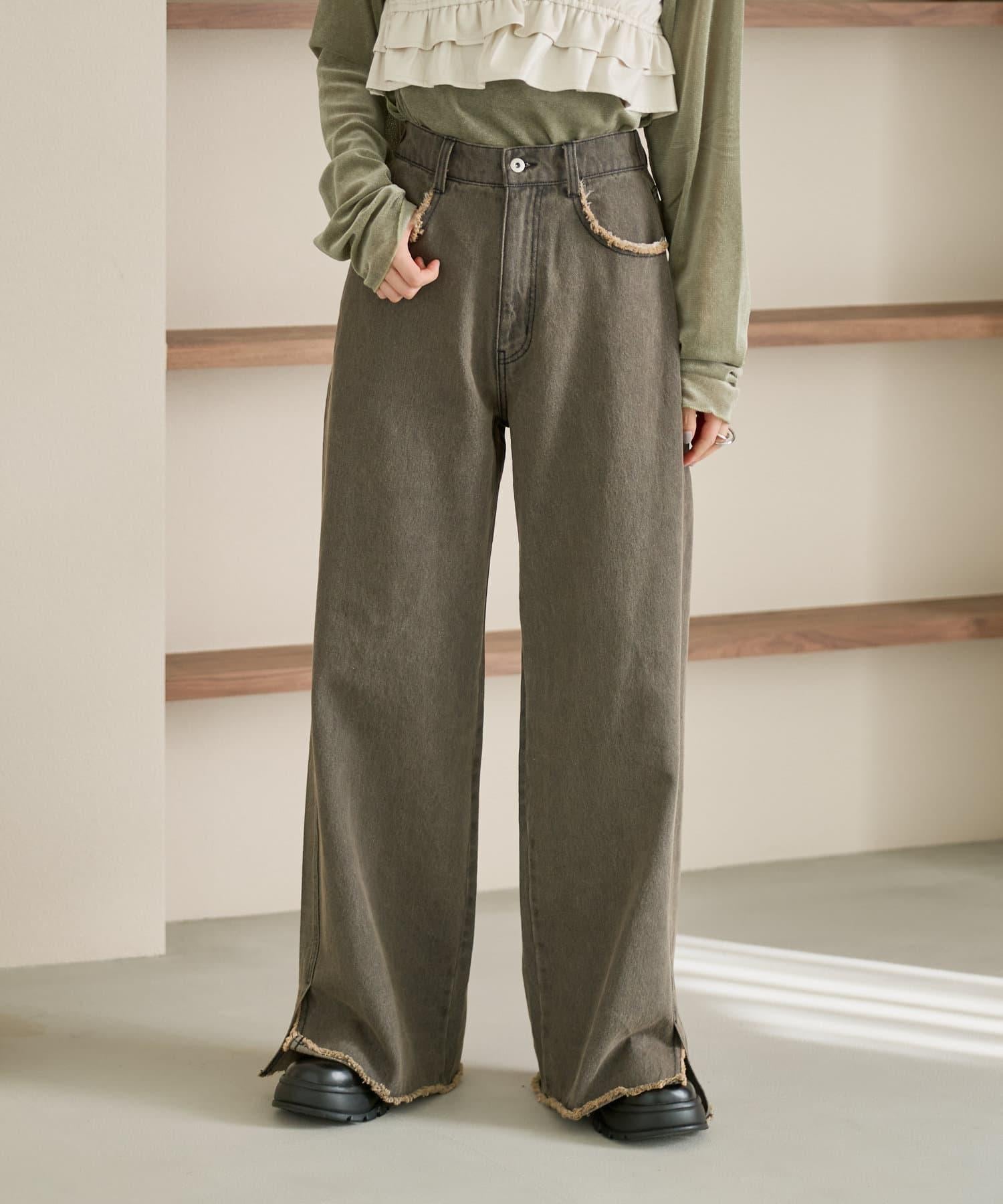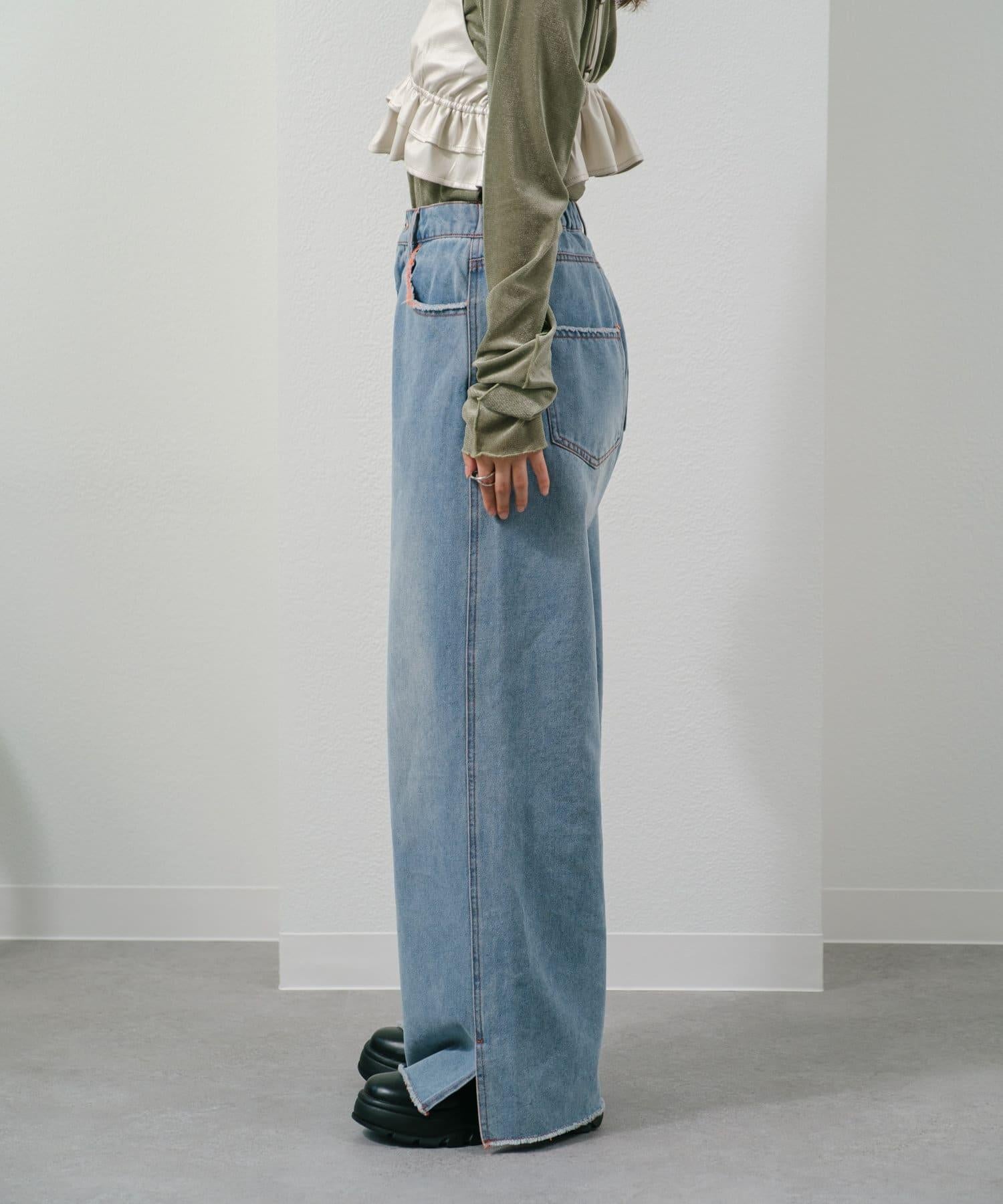【低身高尺寸/2尺寸】牛仔褲開叉寬鬆褲