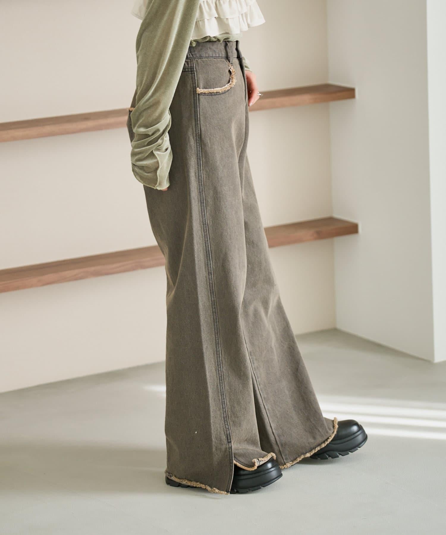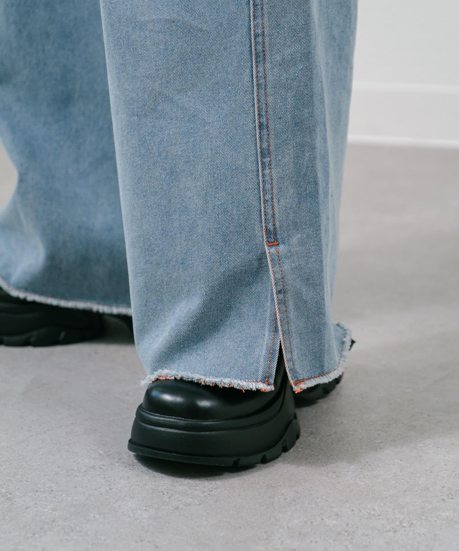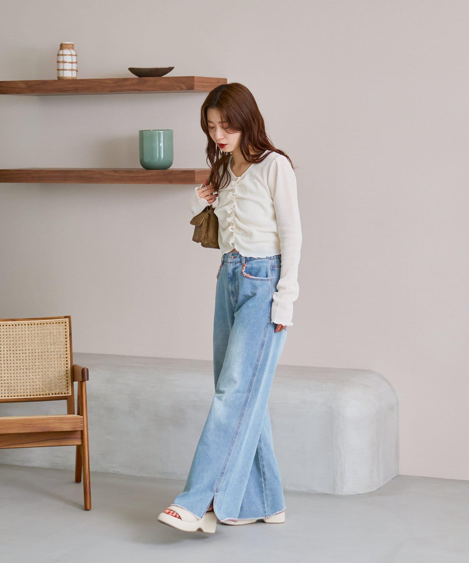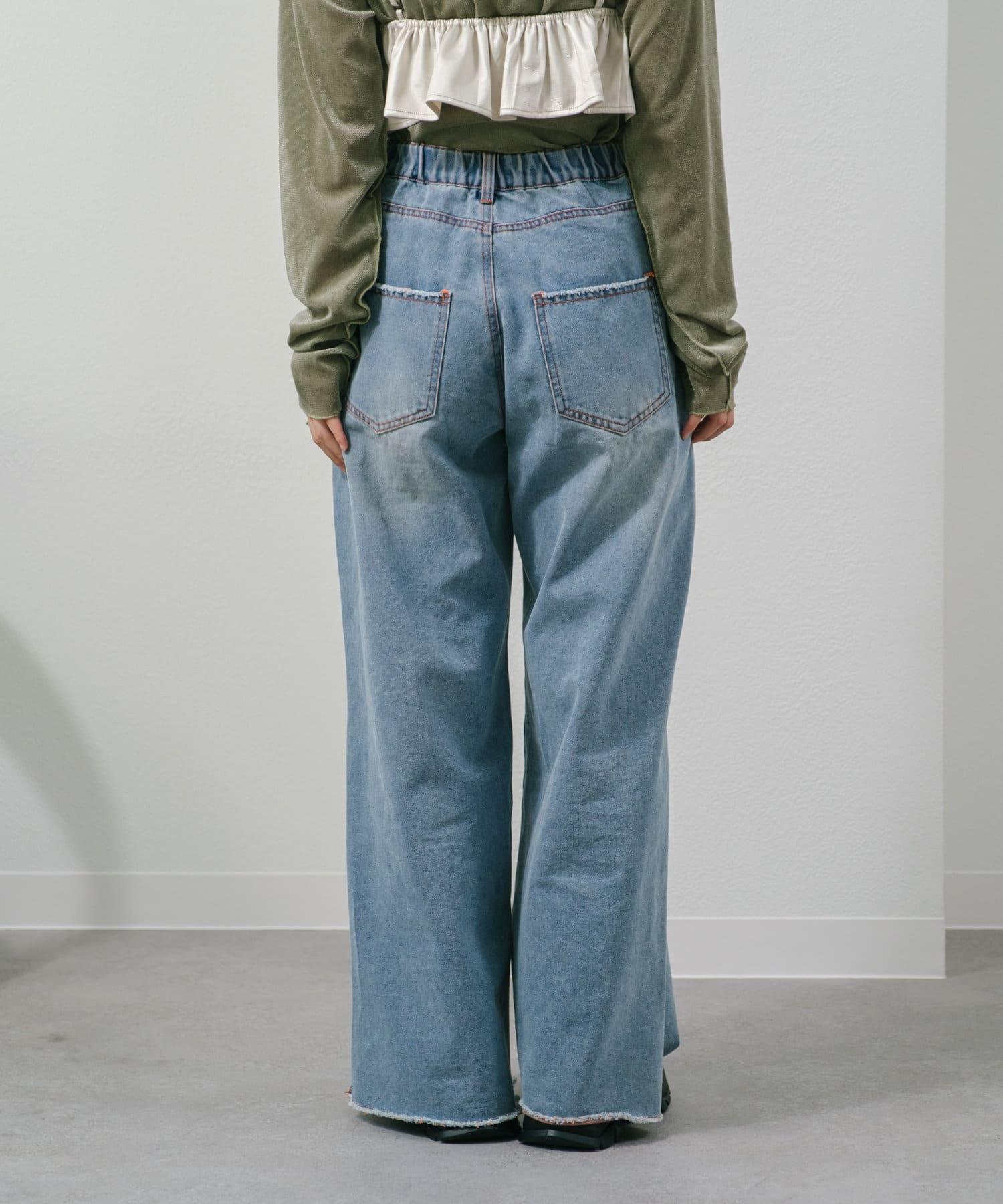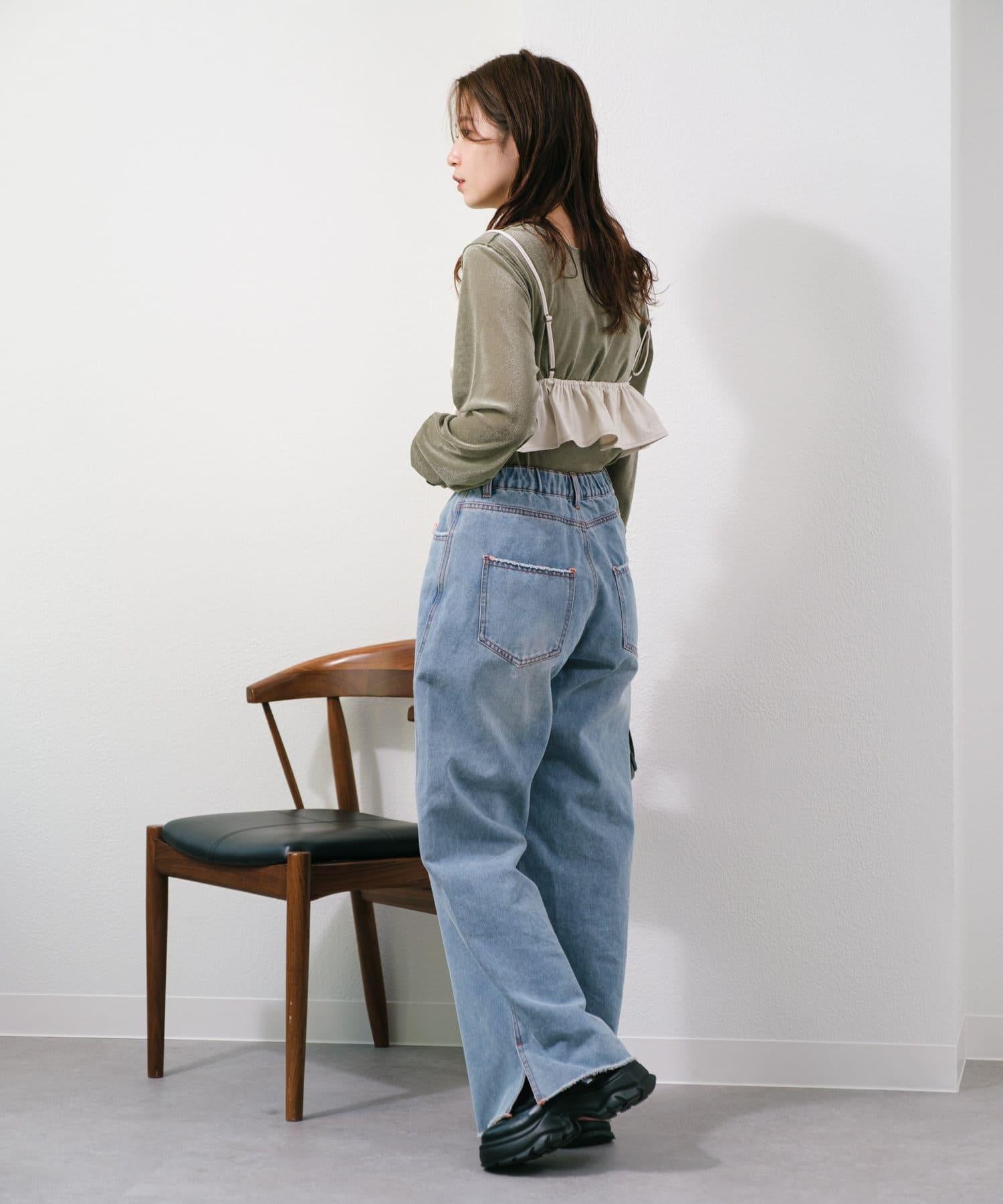 【低身高尺寸/2尺寸】牛仔褲開叉寬鬆褲