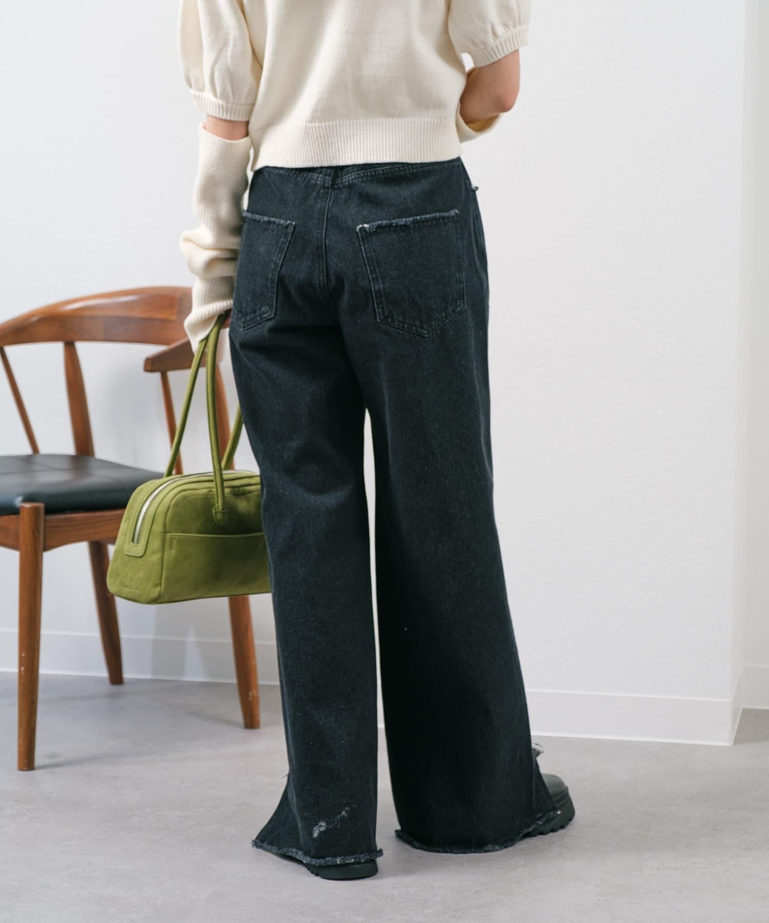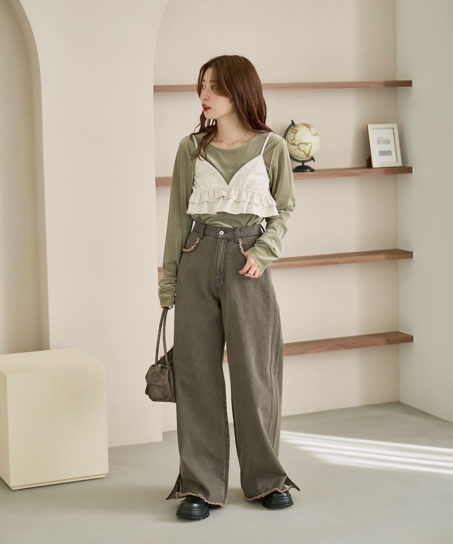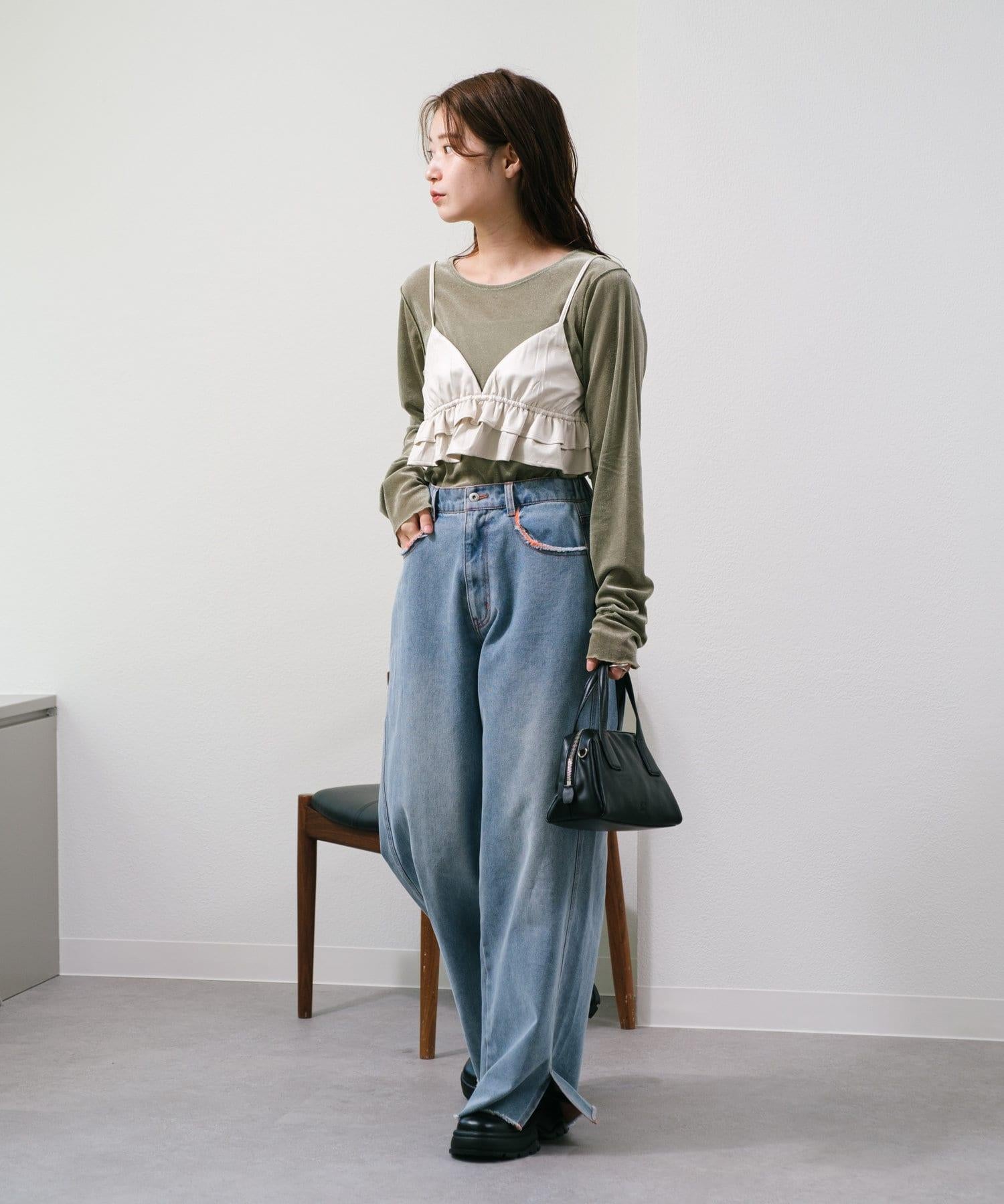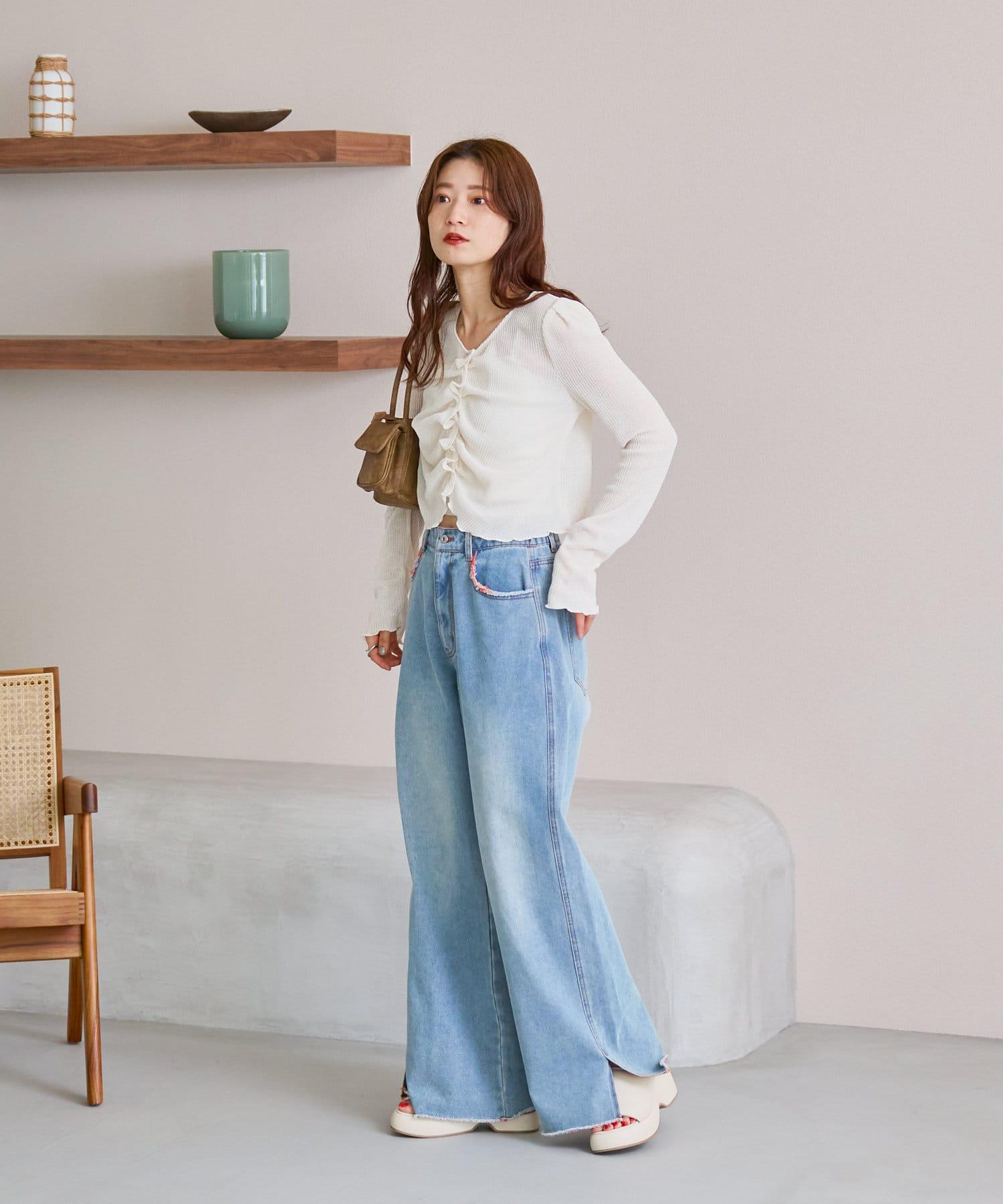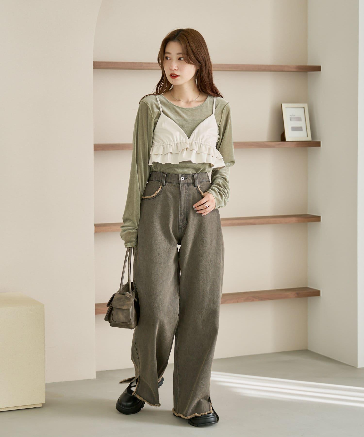 【低身高尺寸/2尺寸】牛仔褲開叉寬鬆褲