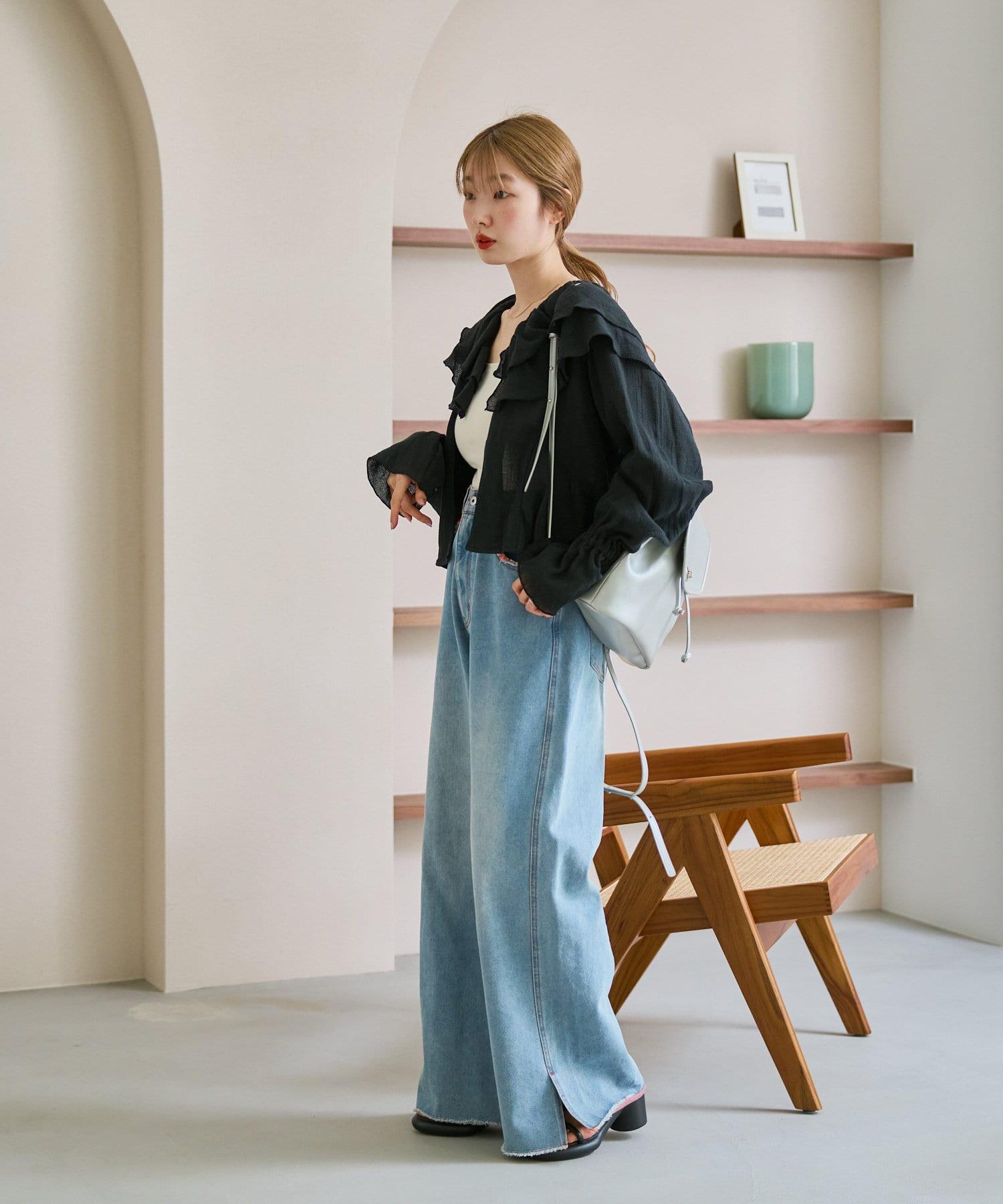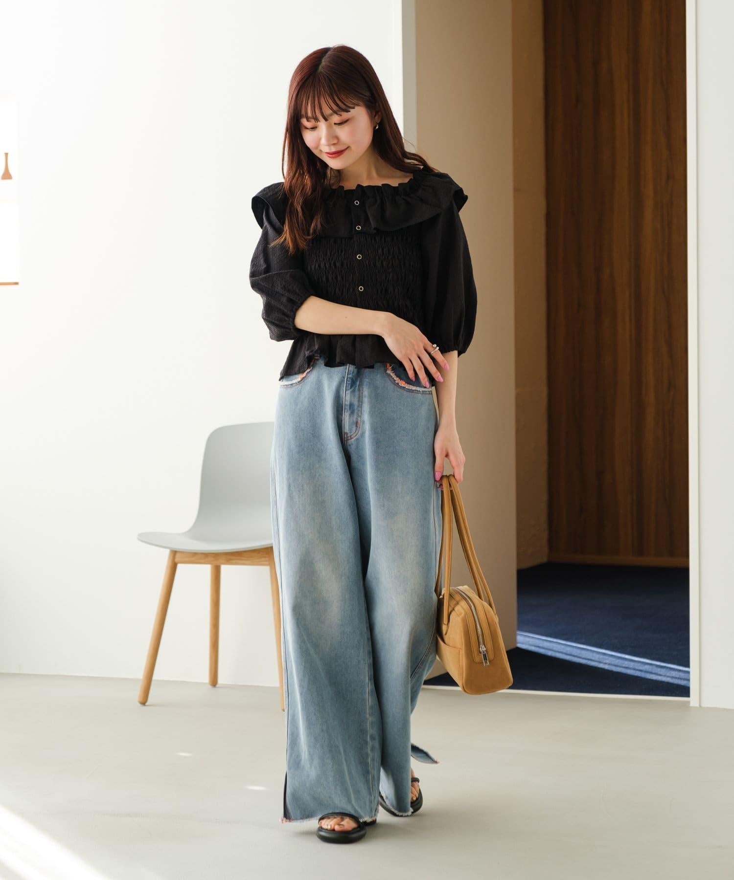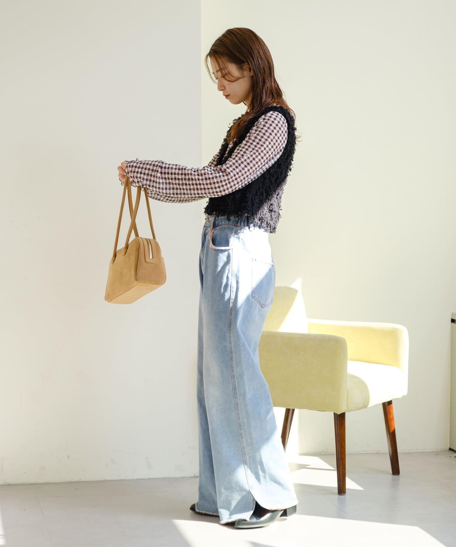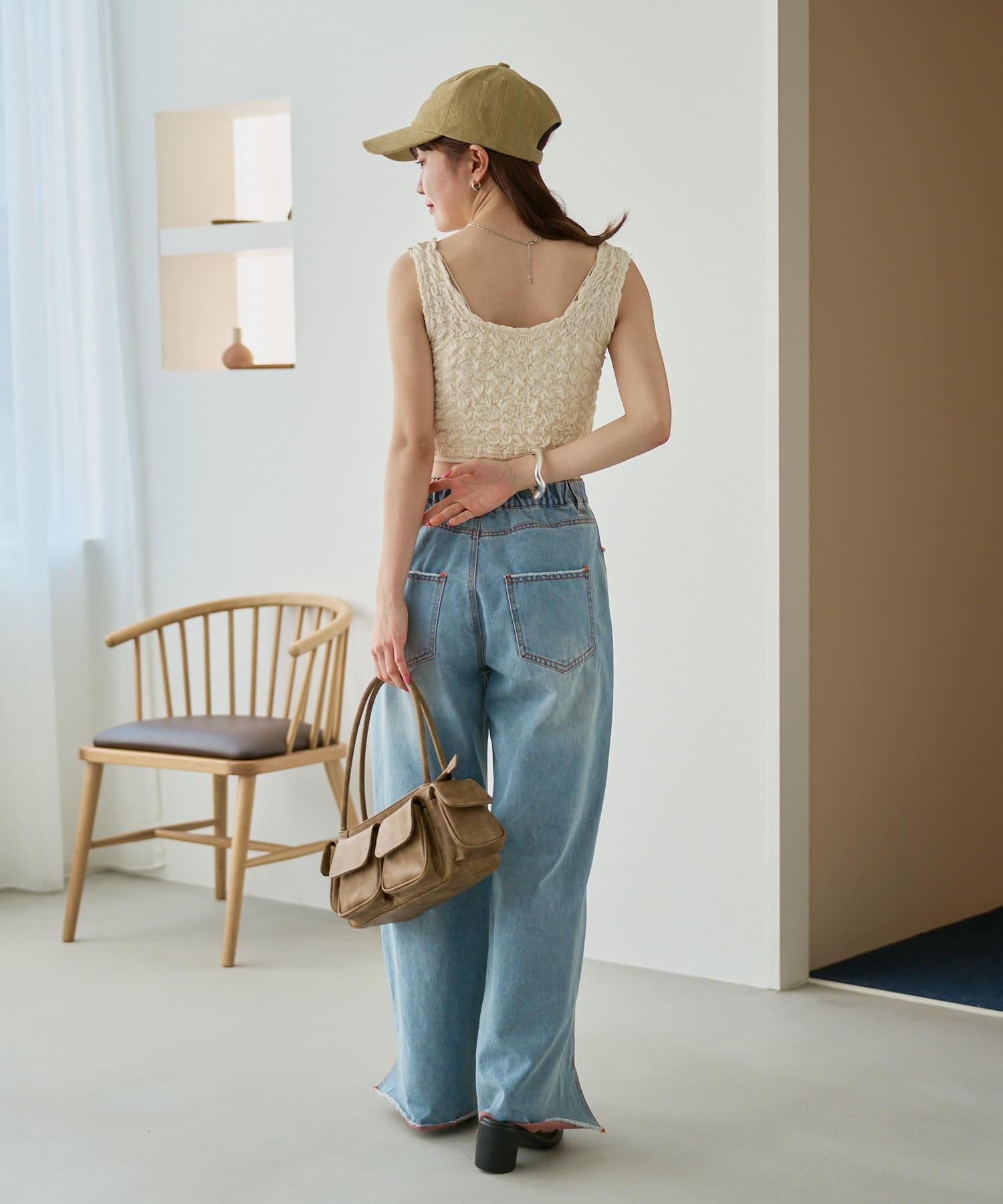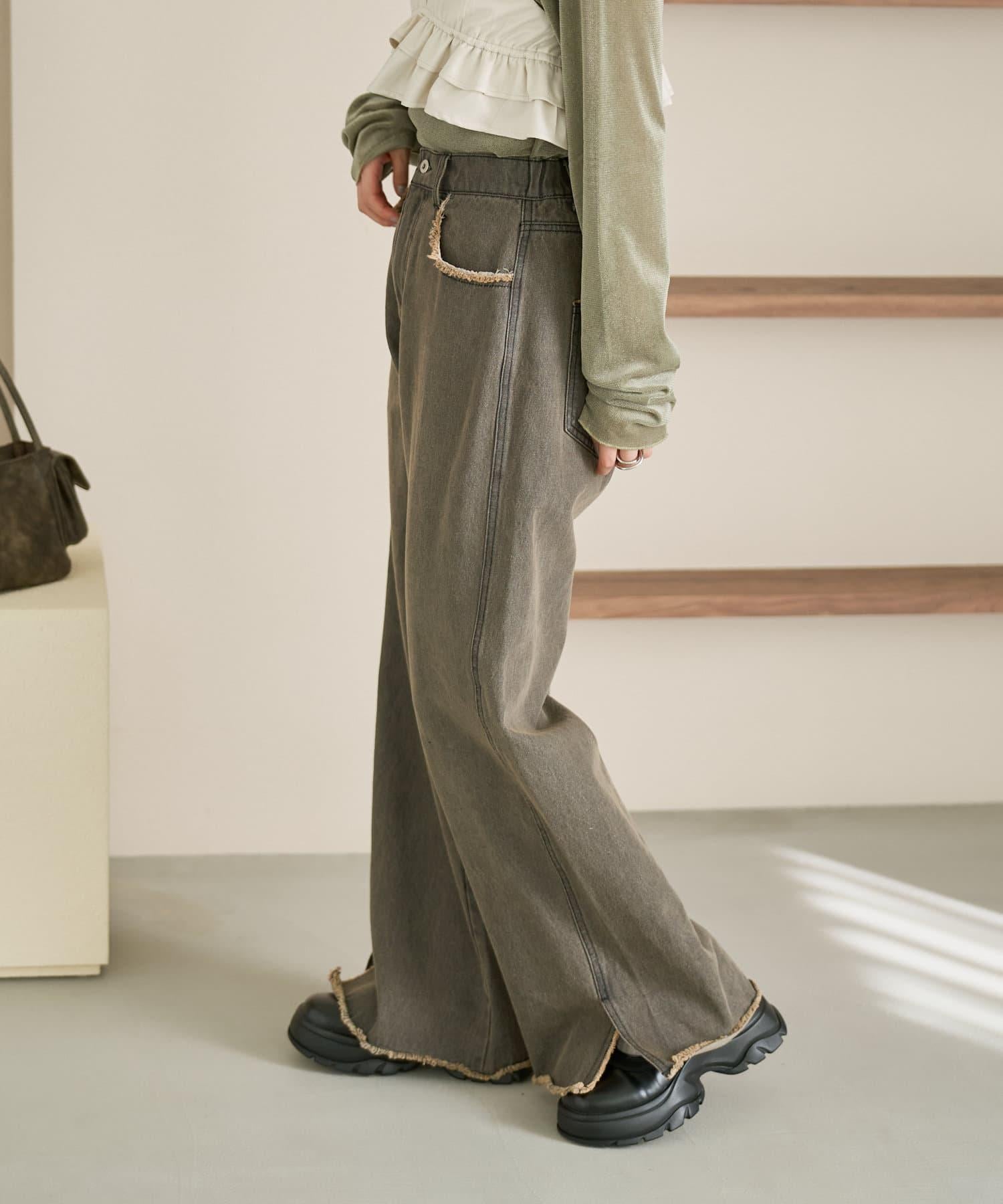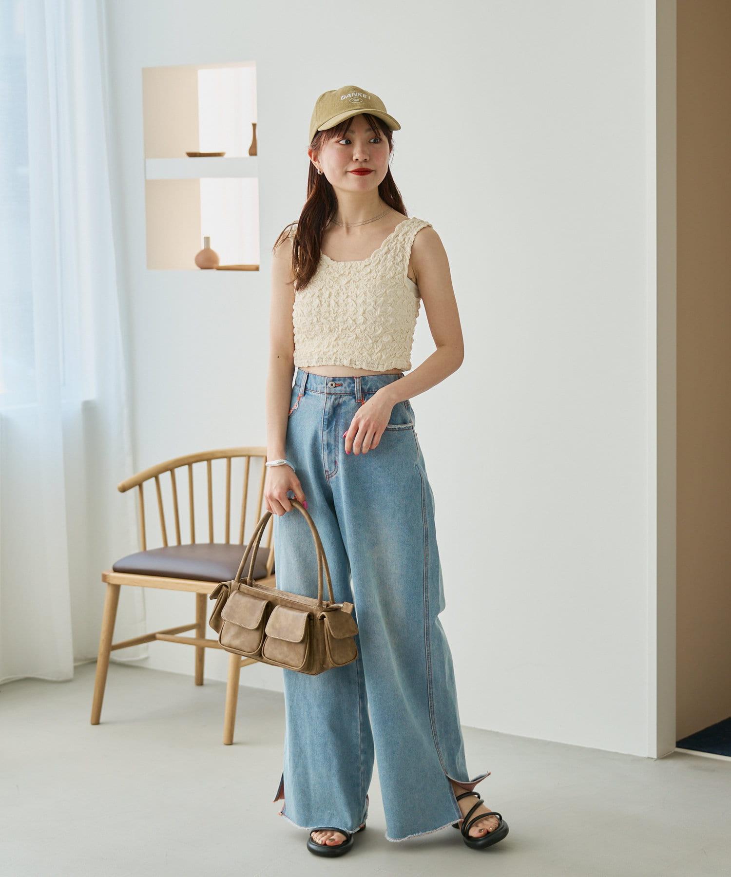 【低身高尺寸/2尺寸】牛仔褲開叉寬鬆褲
