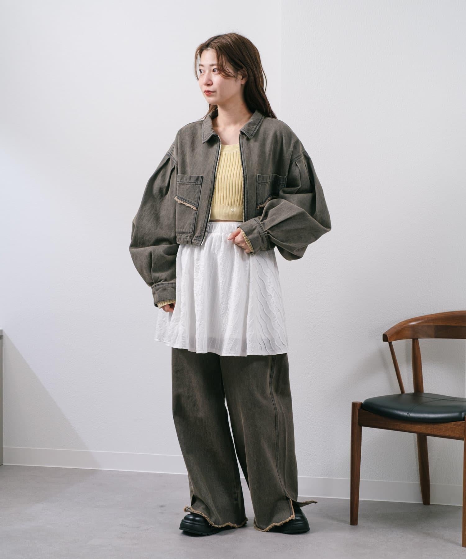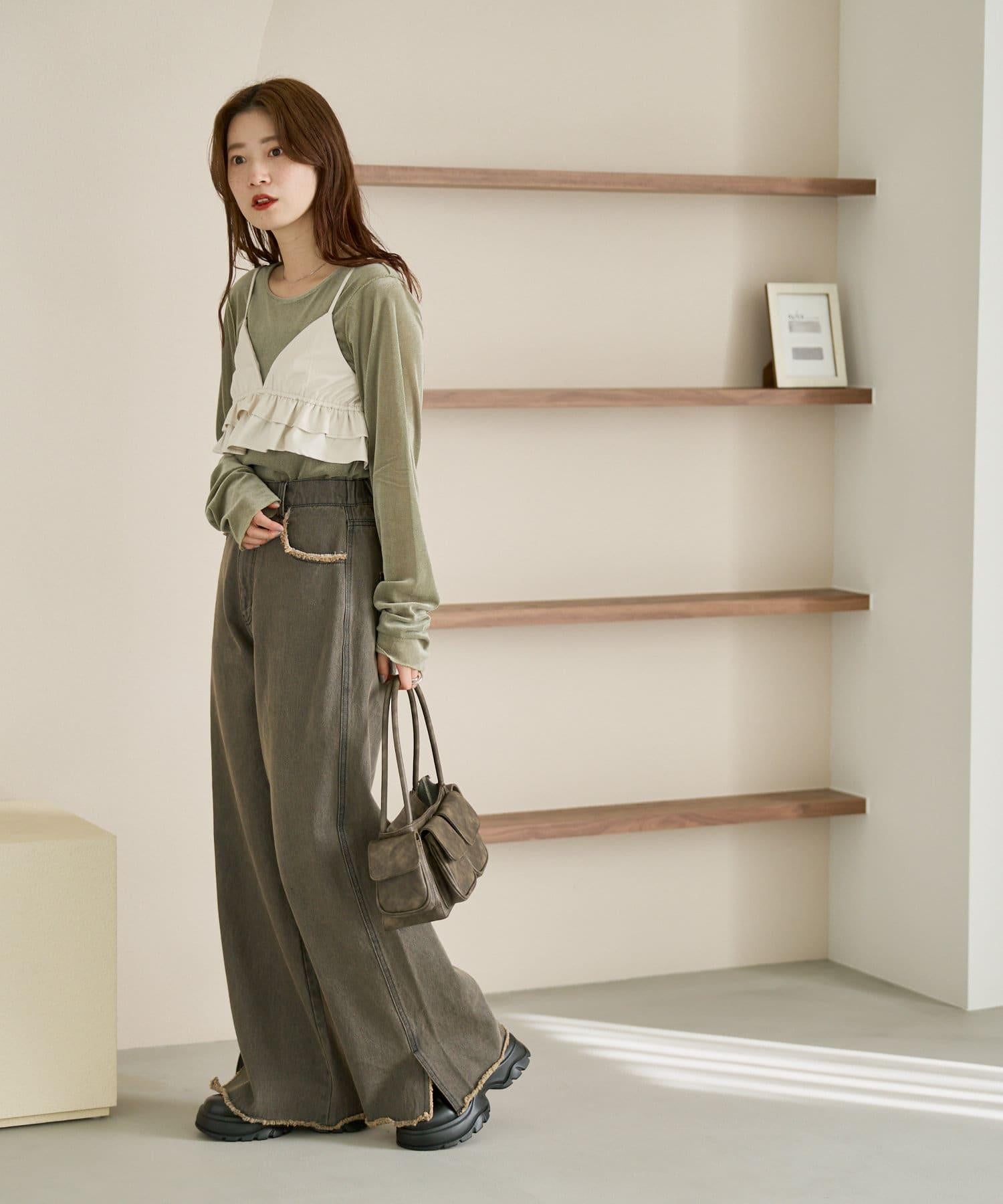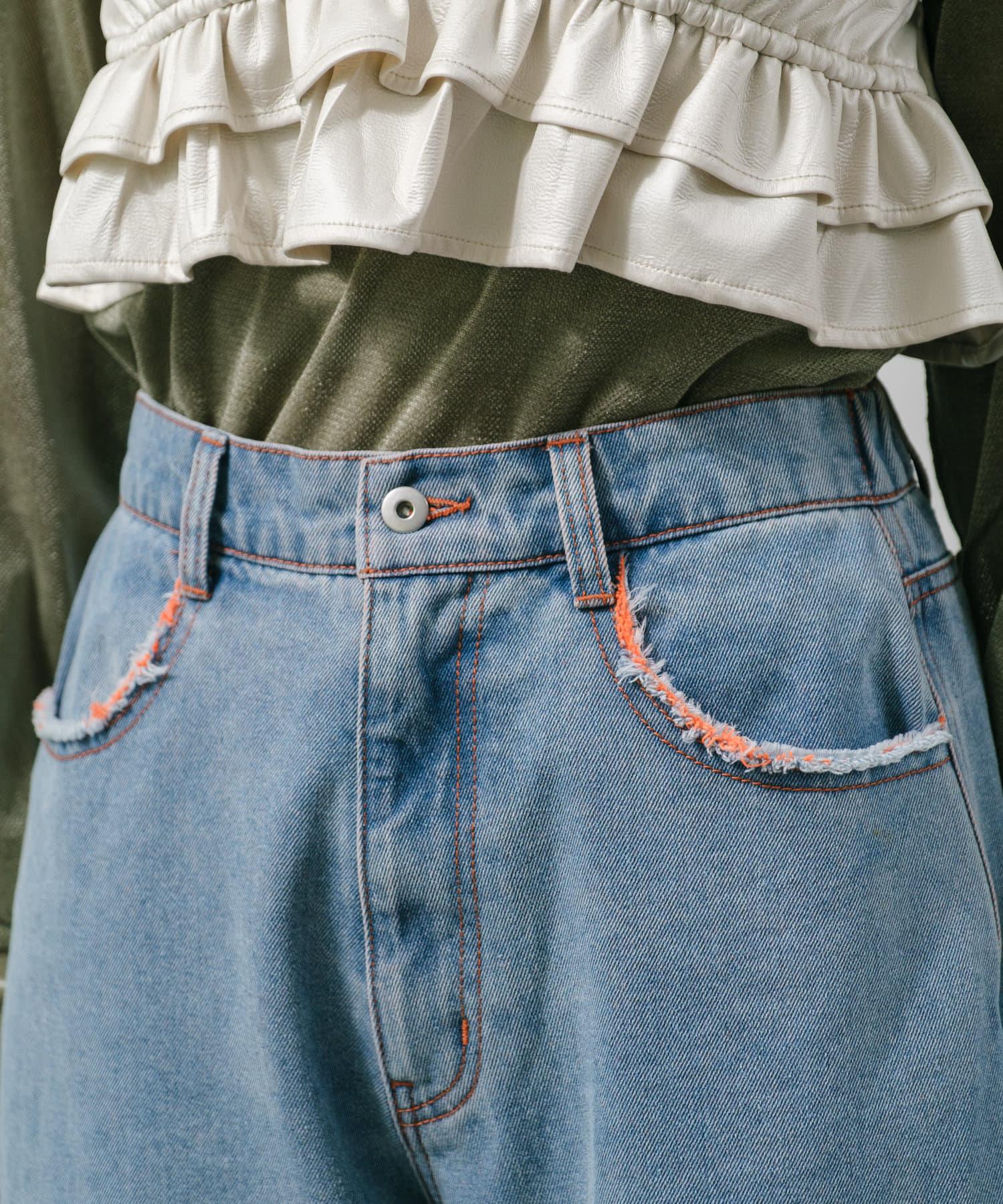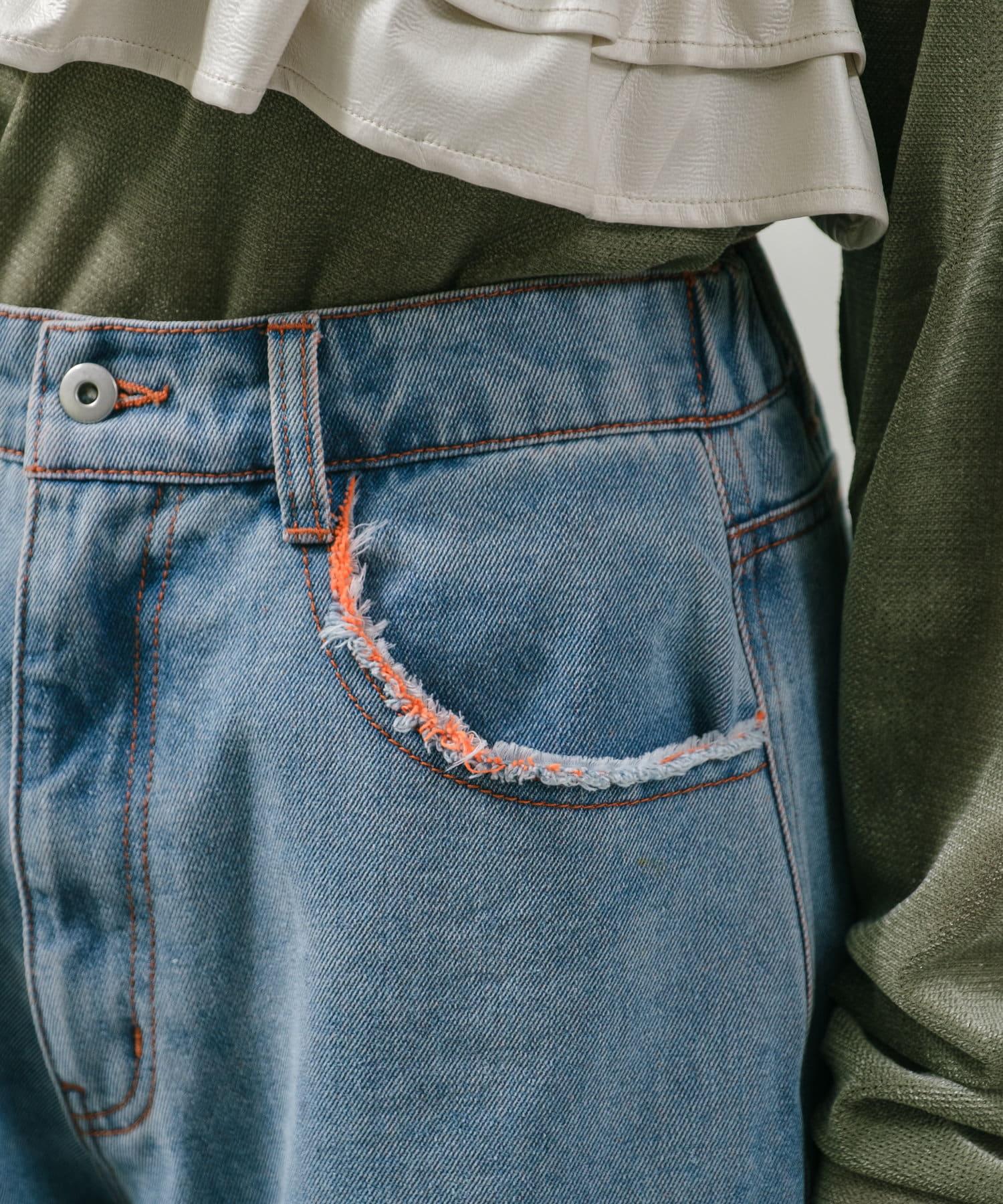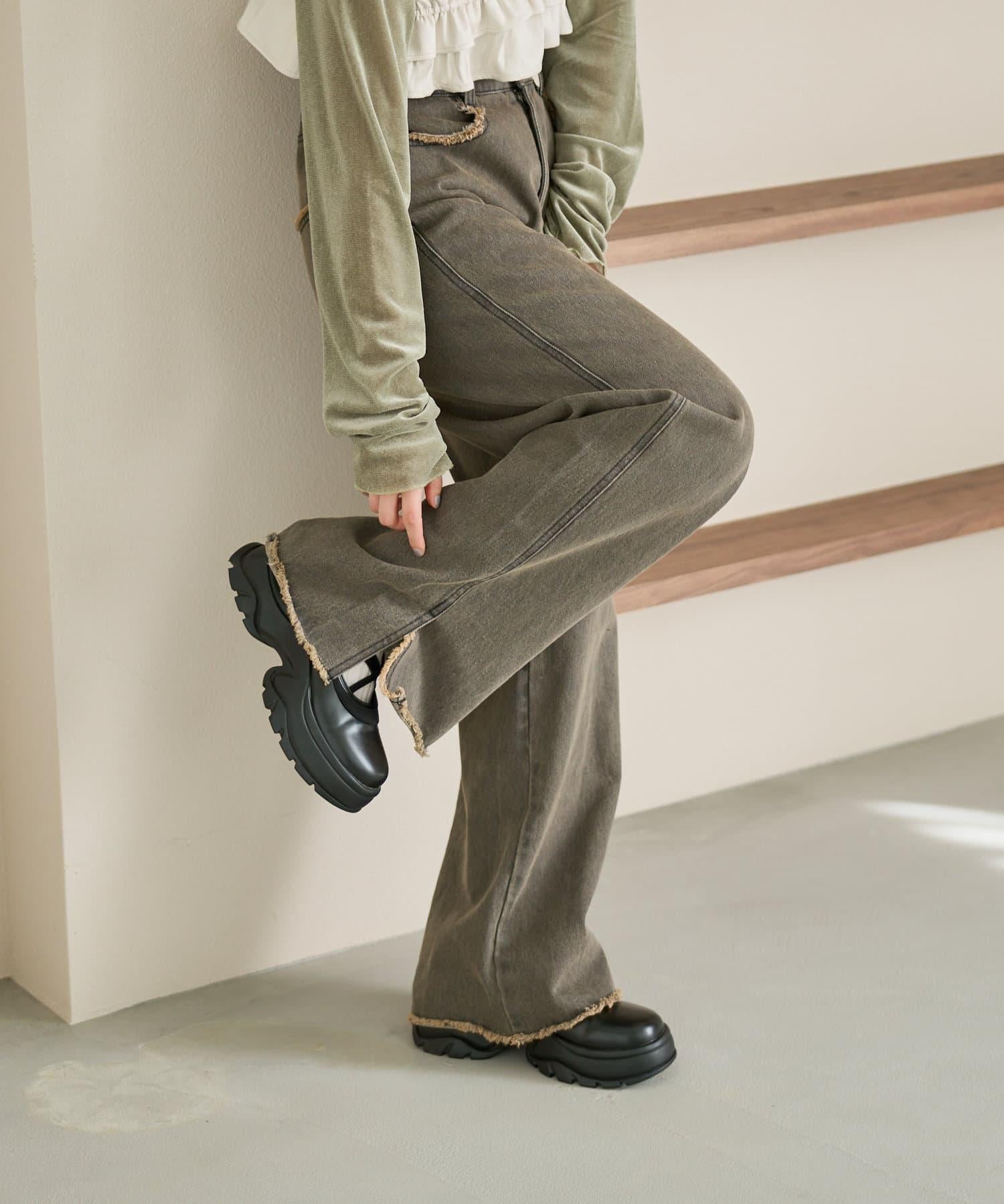 【低身高尺寸/2尺寸】牛仔褲開叉寬鬆褲