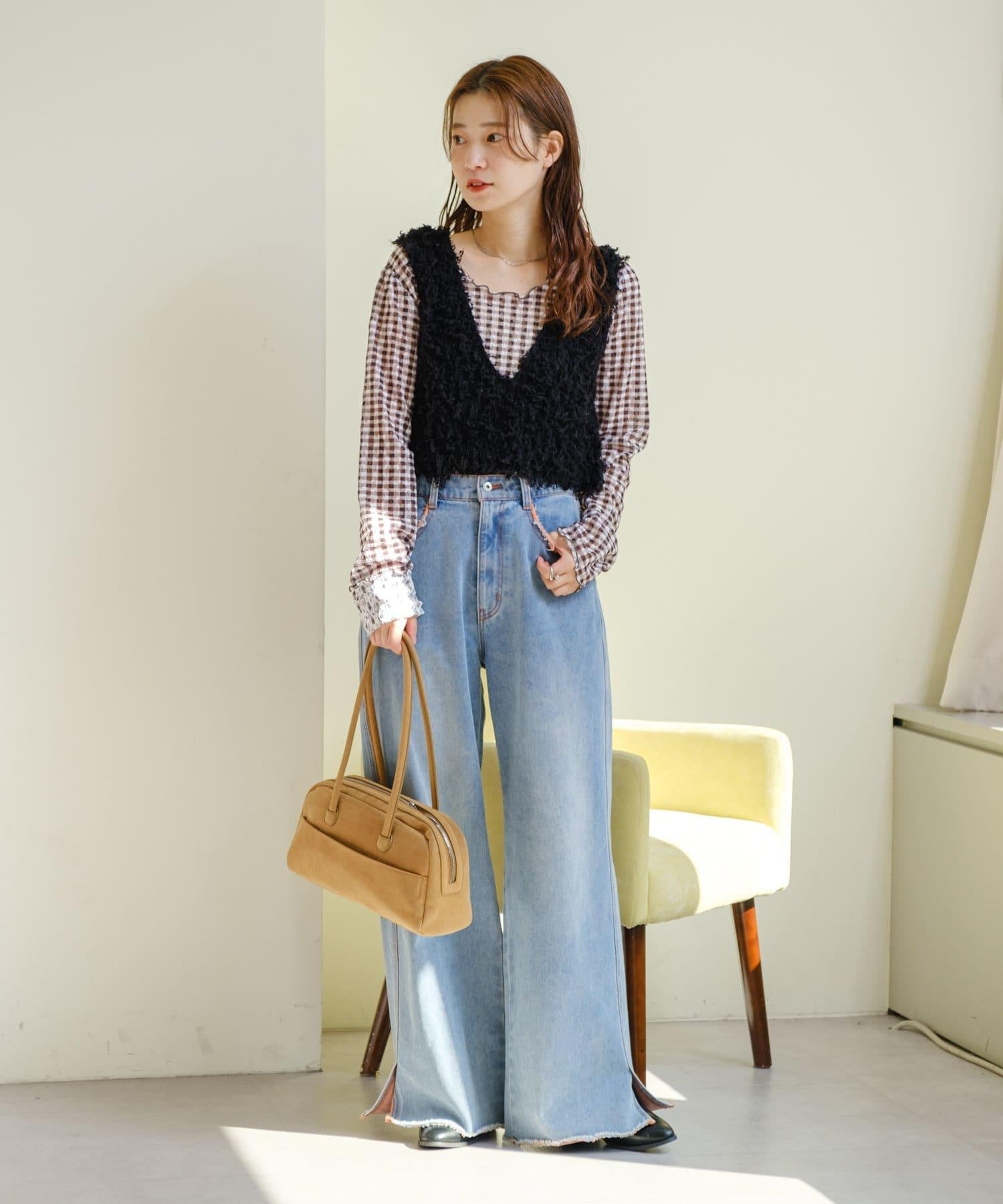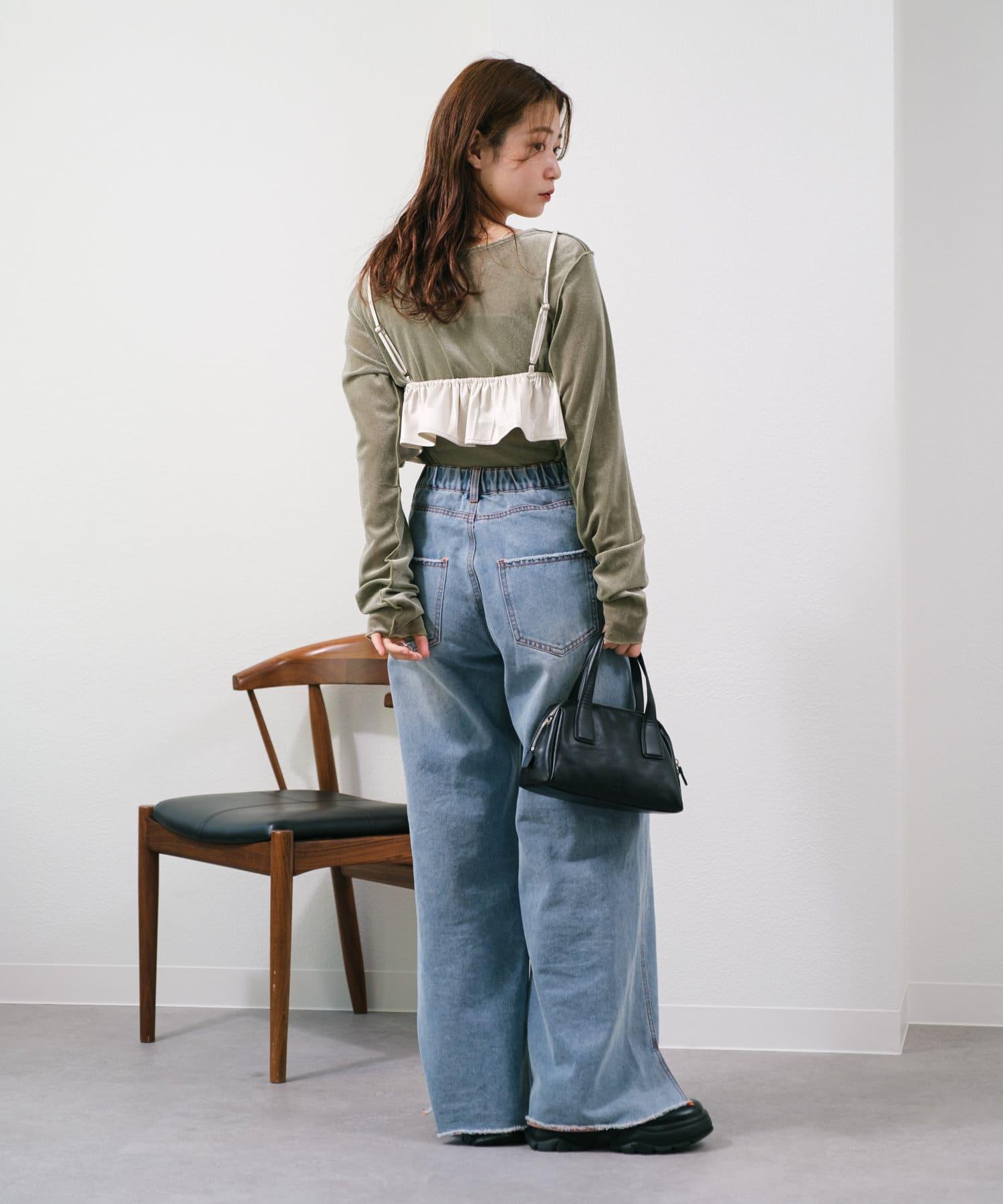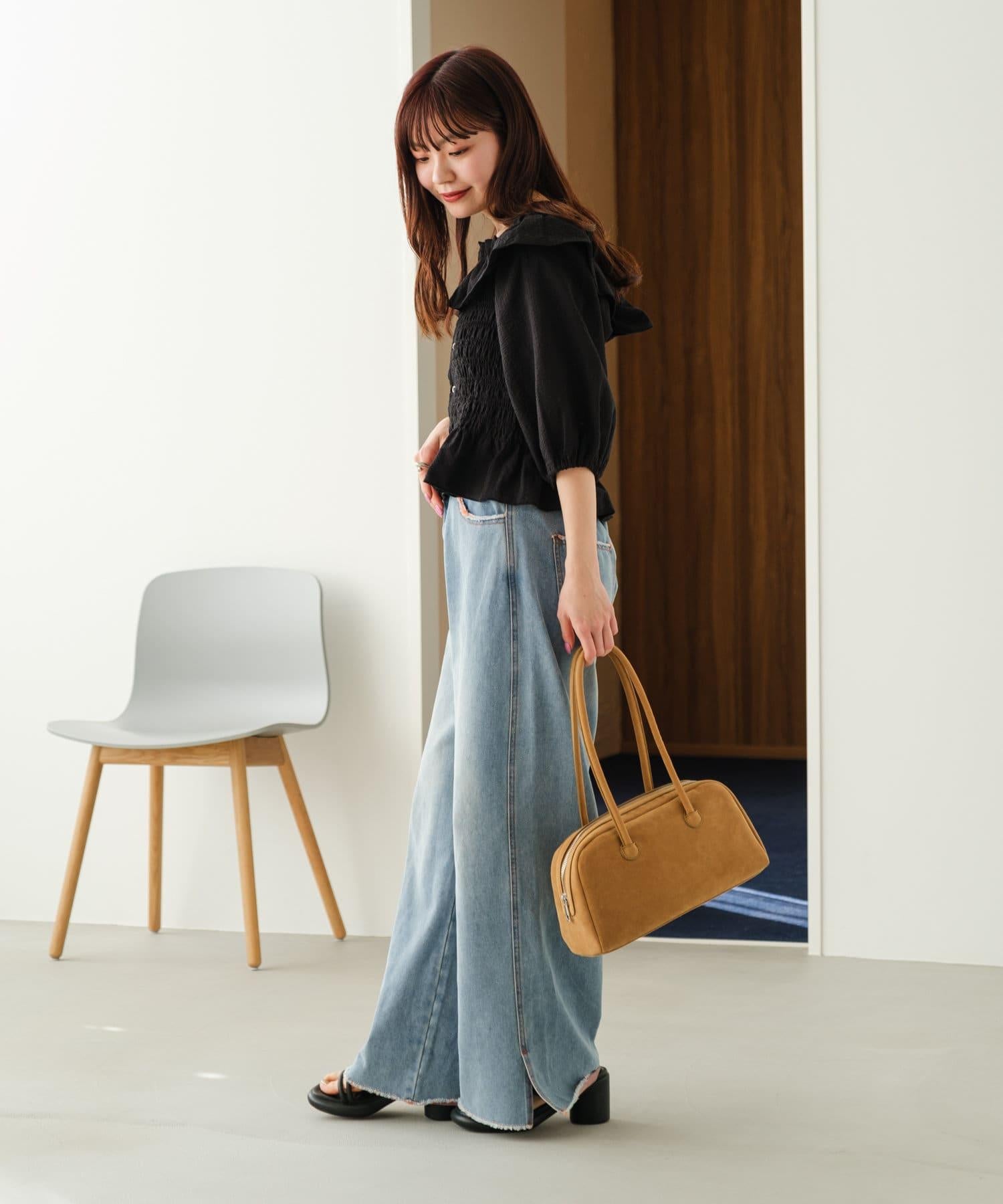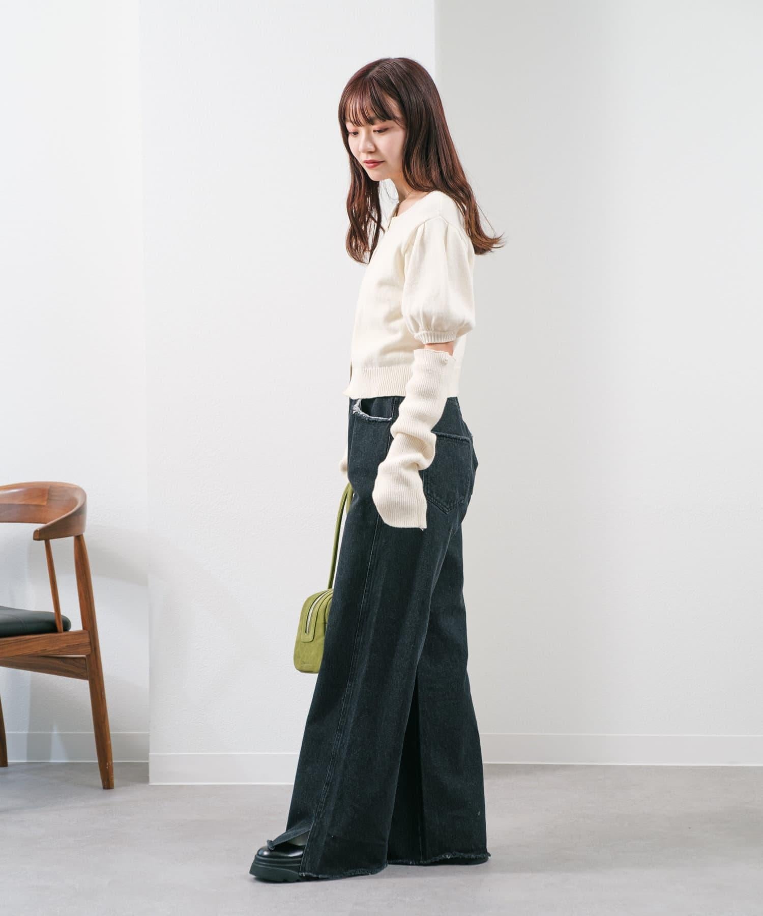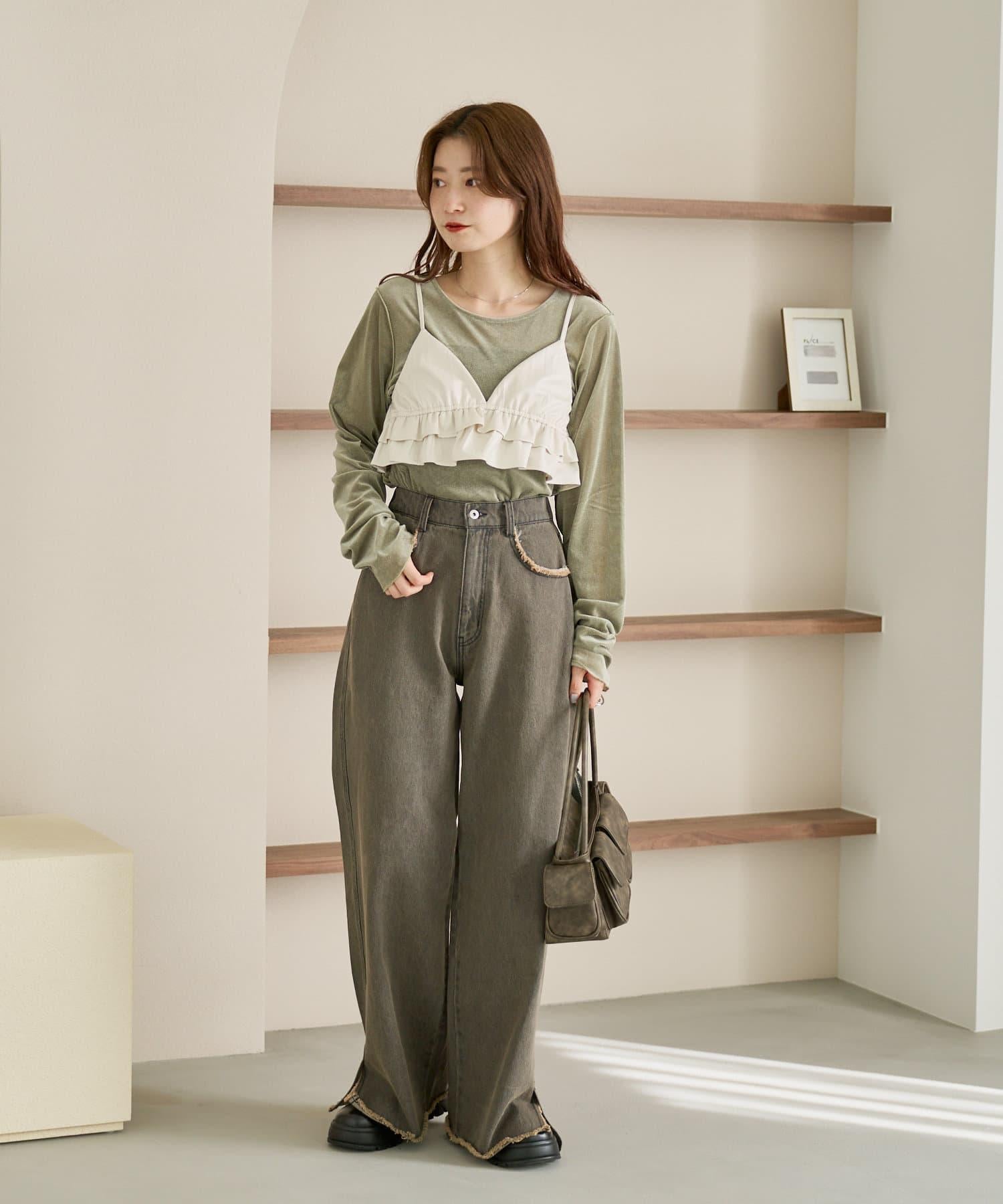 【低身高尺寸/2尺寸】牛仔褲開叉寬鬆褲