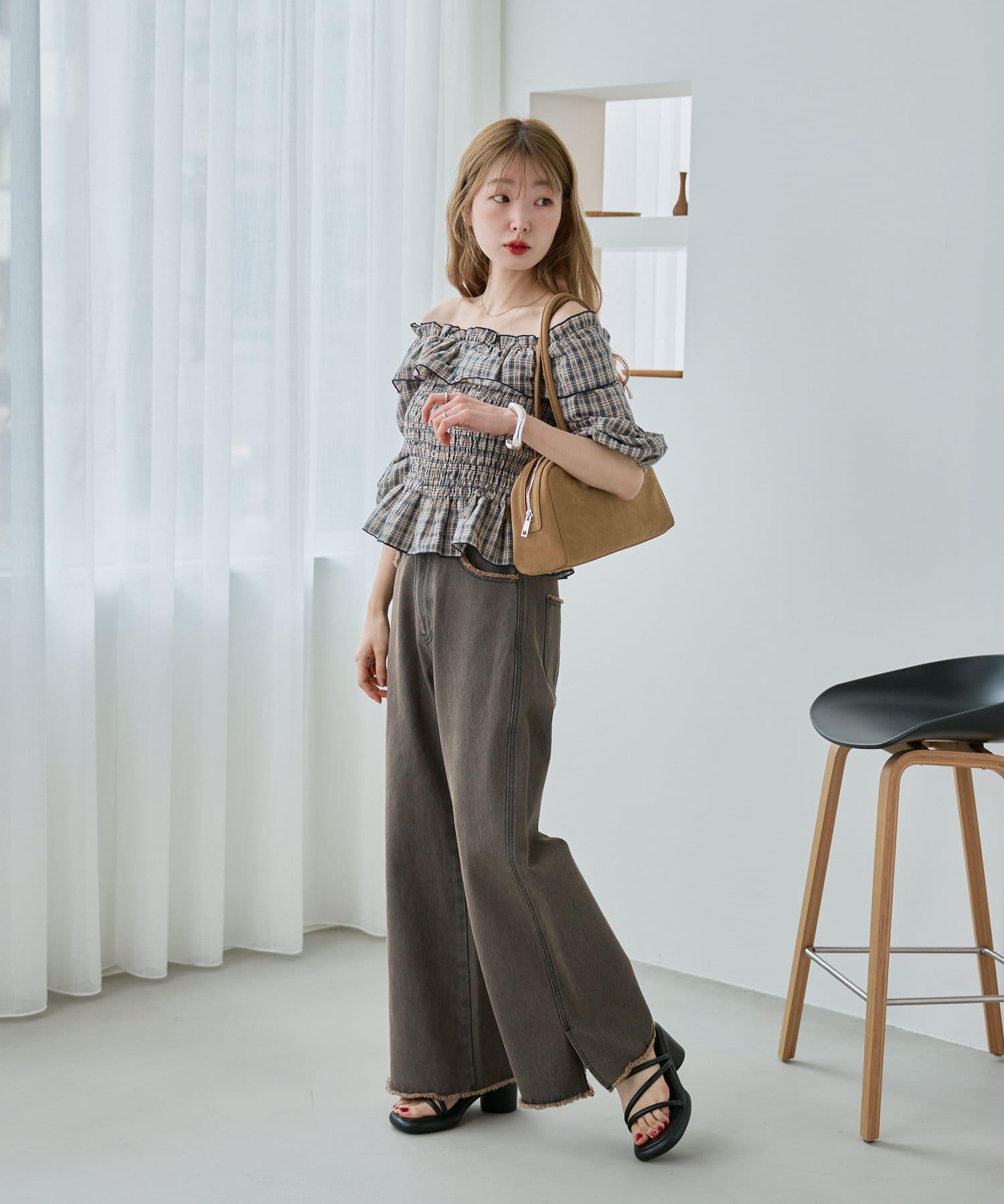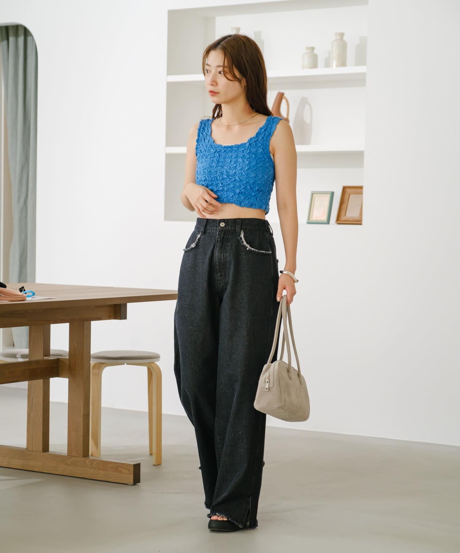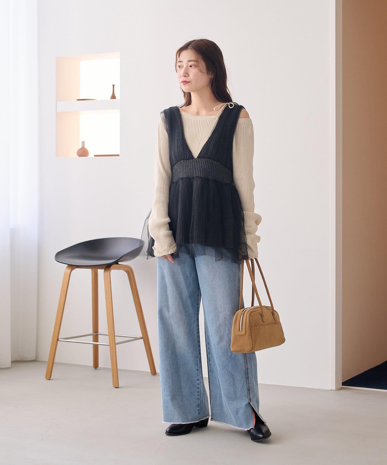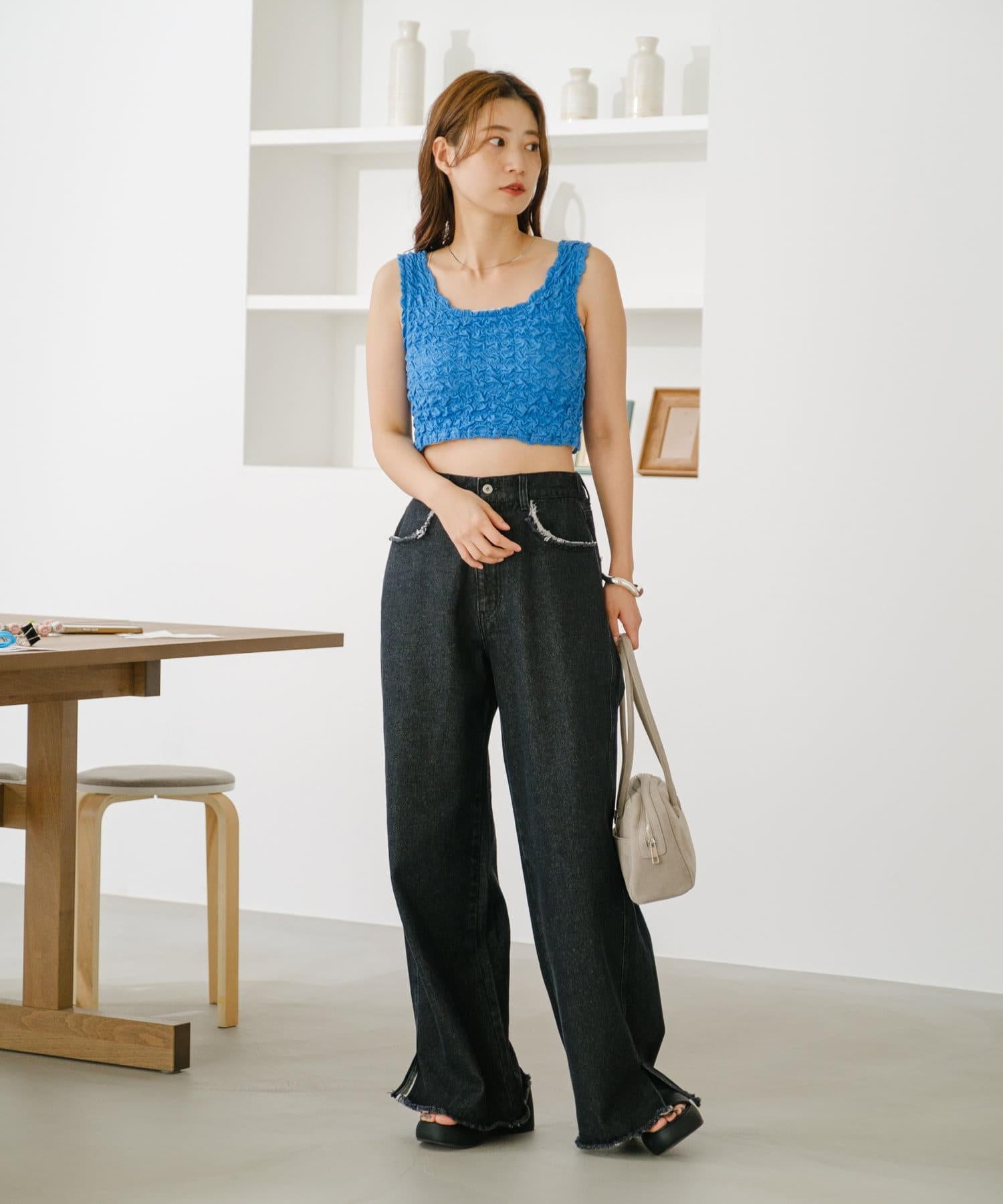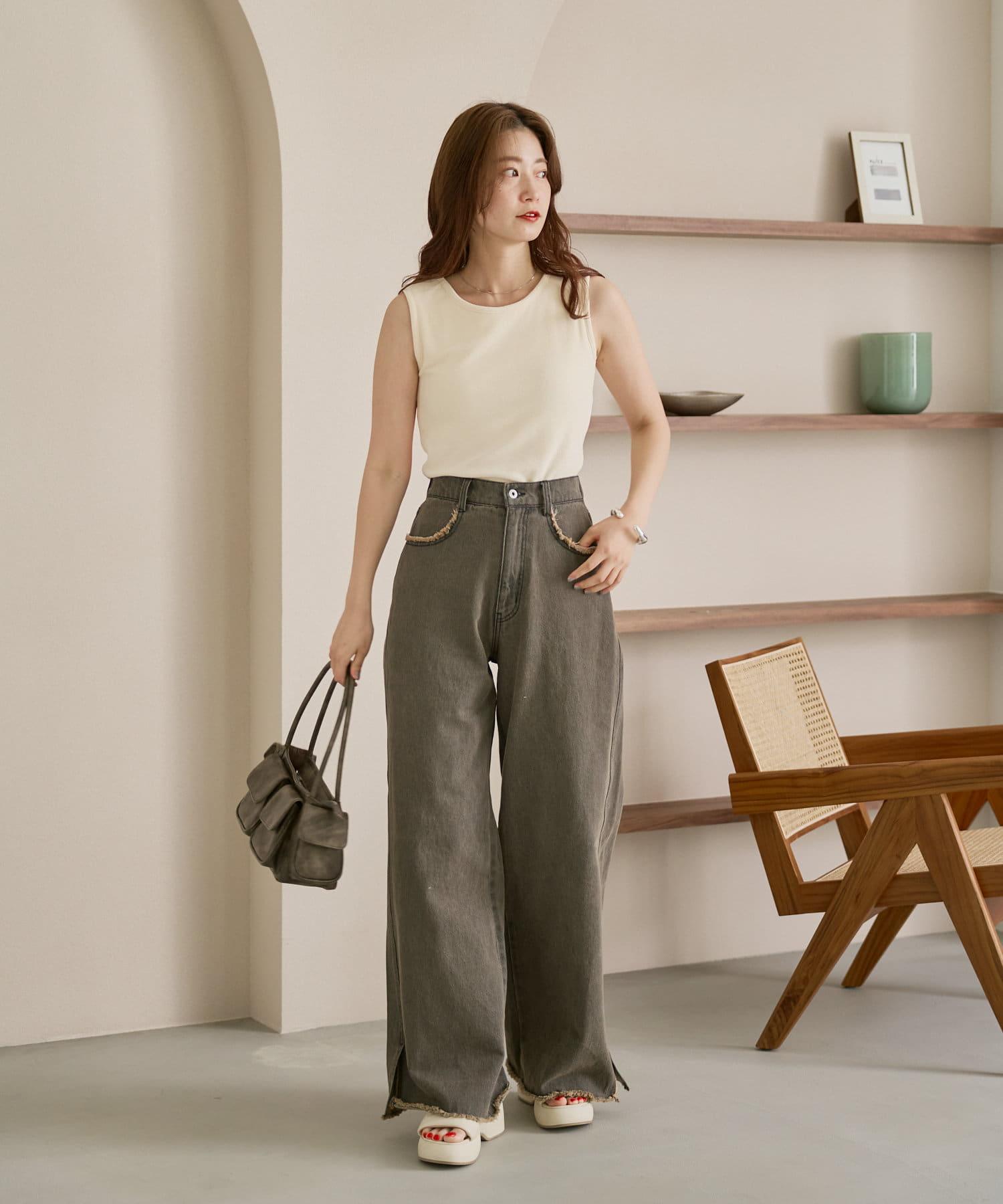 【低身高尺寸/2尺寸】牛仔褲開叉寬鬆褲