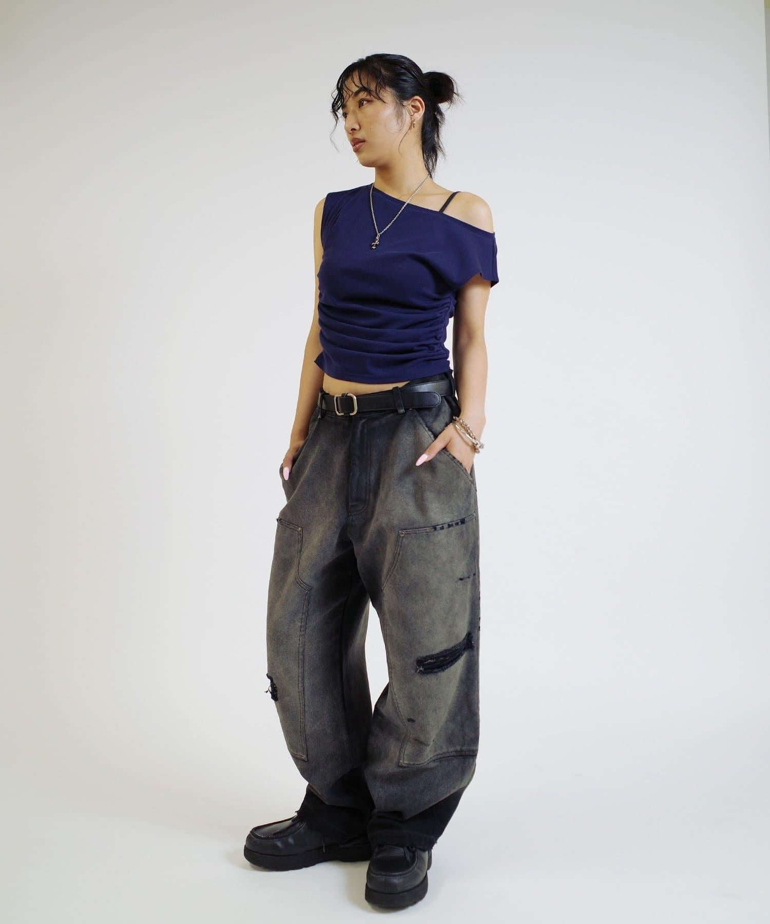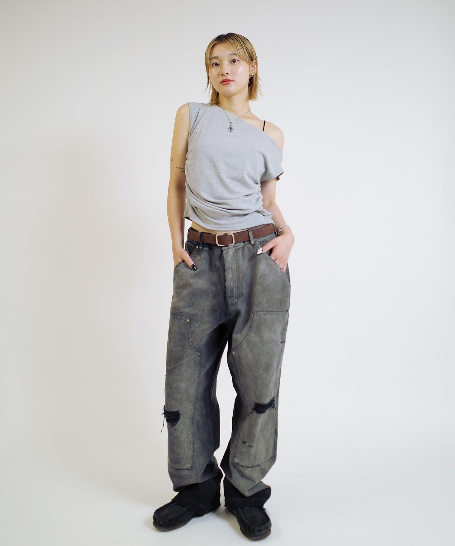 在褪色處理中堅持細節的損傷處理,彷彿穿了很多年。