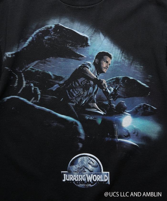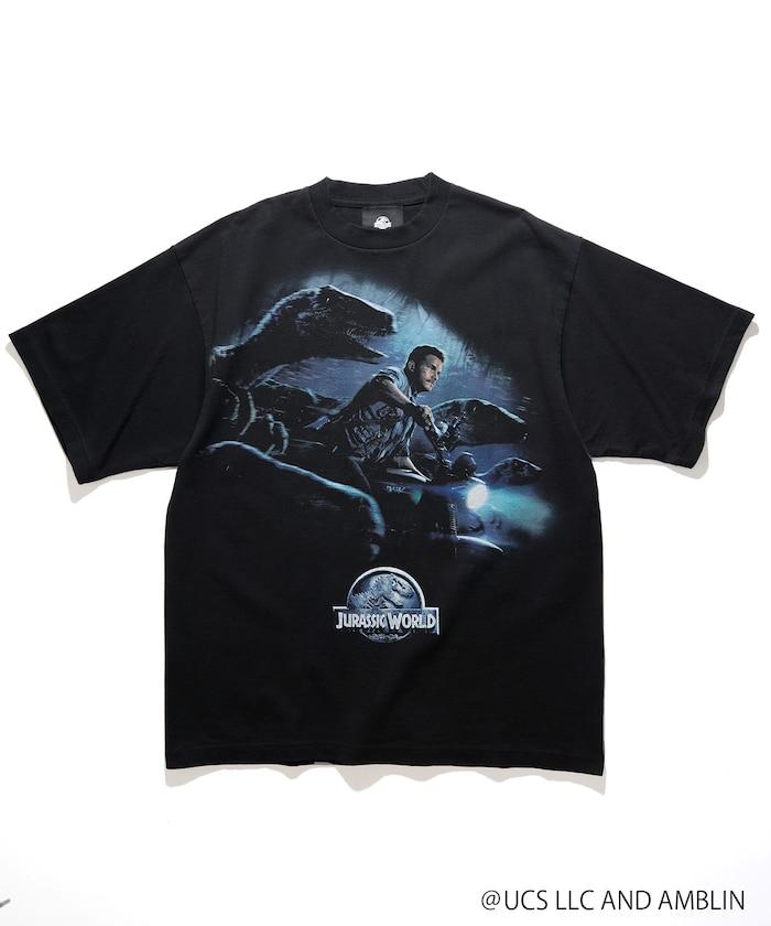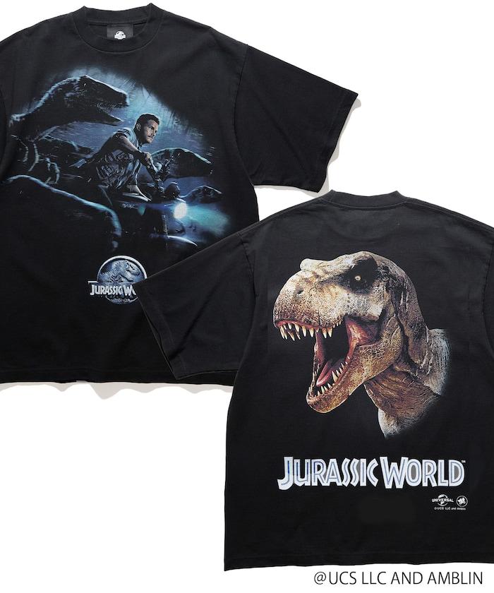侏羅紀世界》T恤於 2015 年上映,是《侏羅紀公園》系列的第四部電影,也是《侏羅紀世界》三部曲的👍部電影。正面大面積印有影片的主要視覺效果,主演克里斯-普拉特騎著摩托車穿越叢林,三隻猛禽在他身旁奔跑。設計中還有一張克里斯-普拉特的罕見照片。背面是巨大的 T-REX 臉部和徽標圖案。下面還印有環球影業和 Amblin 的標誌。