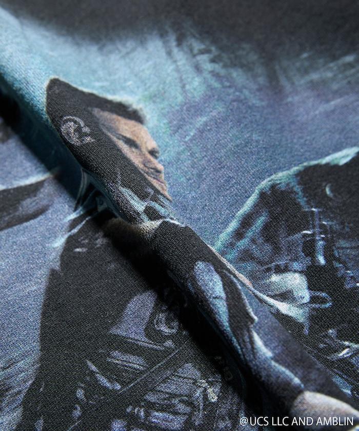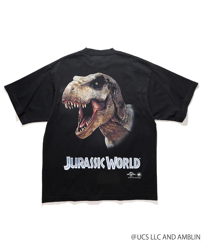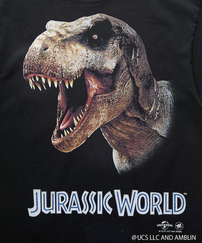 侏羅紀世界》T恤於 2015 年上映,是《侏羅紀公園》系列的第四部電影,也是《侏羅紀世界》三部曲的👍部電影。正面印有影片的主要視覺大圖,主演克里斯-普拉特騎著摩托車在叢林中穿行,三隻猛禽在他身旁奔跑。設計中還有一張克里斯-普拉特的罕見照片。背面是巨大的 T-REX 臉部和徽標圖案。下方還印有環球影業和 Amblin 的標誌。