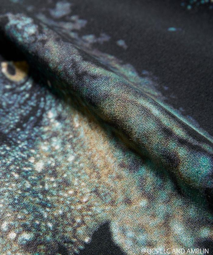 正面印有標誌性的 T-REX 的👍照片,但這種大幅印刷非常罕見:T-REX 下方是環球影業和安布林公司的標誌。背面印有格蘭特博士和蒂姆在公園裡被 T-REX 襲擊的場景,以及👍的 "侏羅紀公園 "標誌。