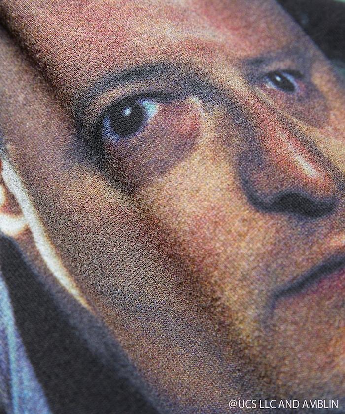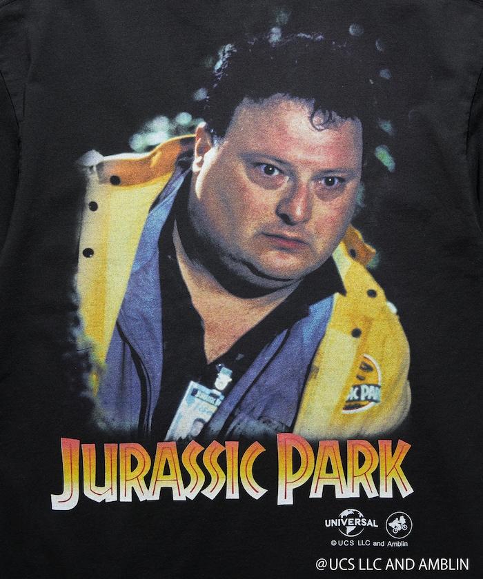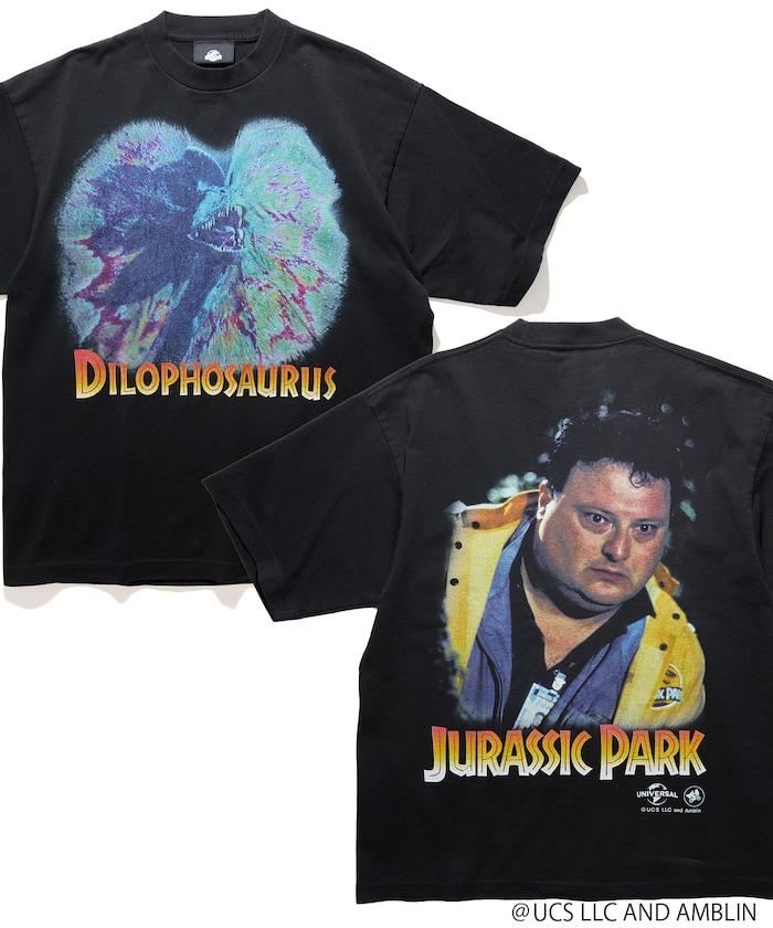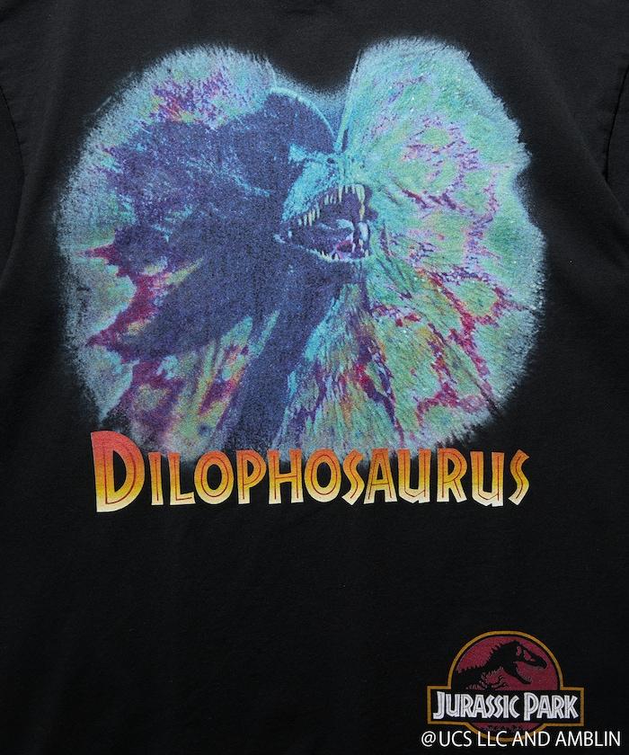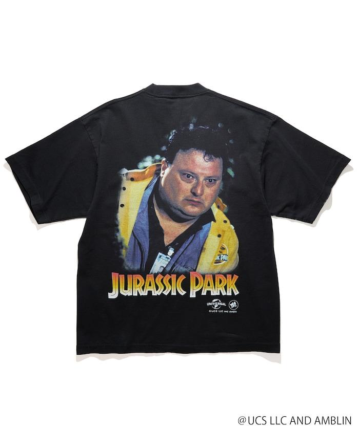 選自史蒂文-斯皮爾伯格 1993 年執導的電影《侏羅紀公園》。正面是一隻迪洛普龍,這是一種長著流蘇的蜥蜴狀恐龍,在影片中大放異彩。背面則是一個被地龍攻擊的貪婪但又可愛的男子奈德利的大幅圖案。在《侏羅紀公園》的官方 T 恤上印有奈德利的圖案,實屬罕見。電影徽標下方還印有環球公司和安布林公司的徽標。