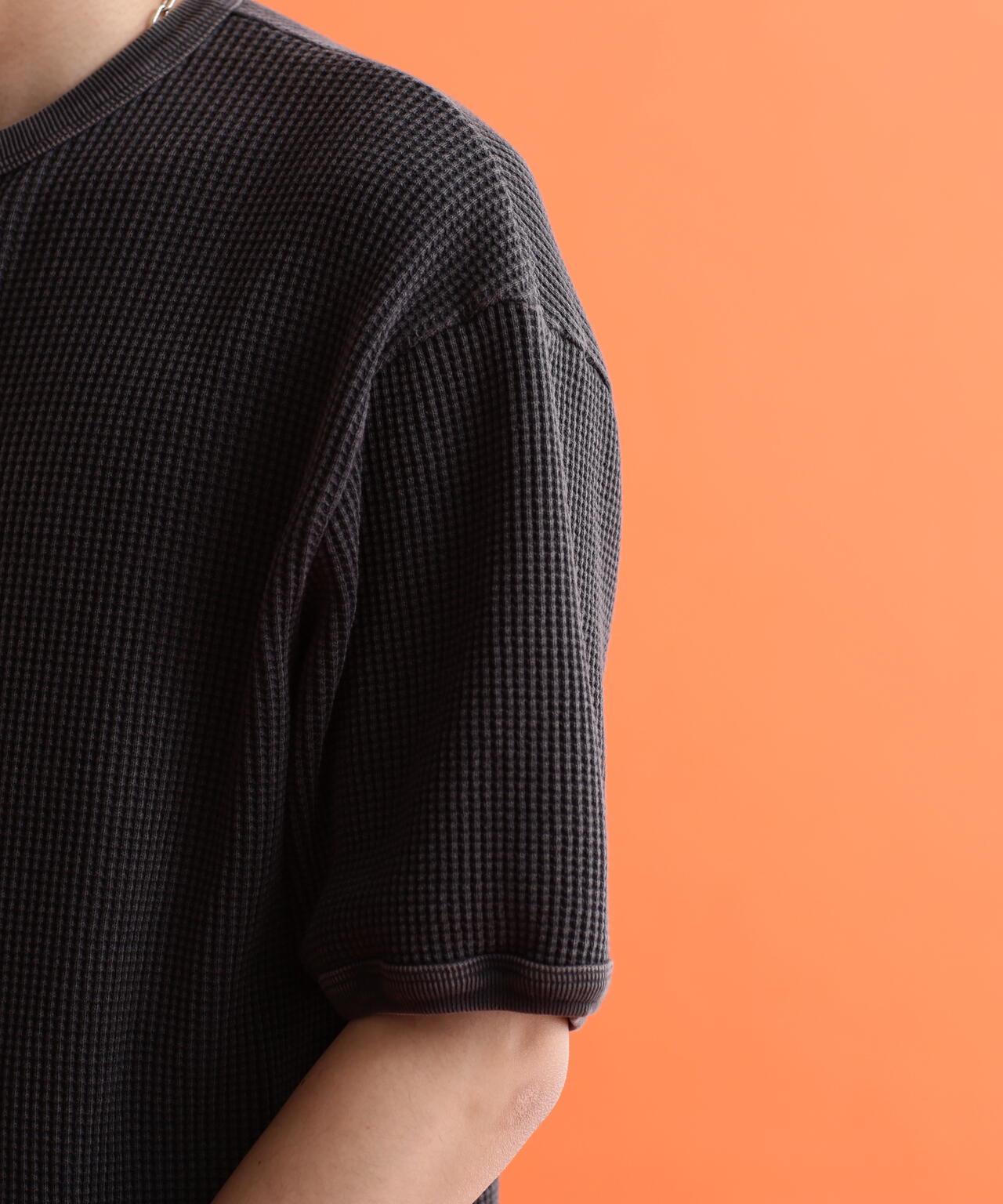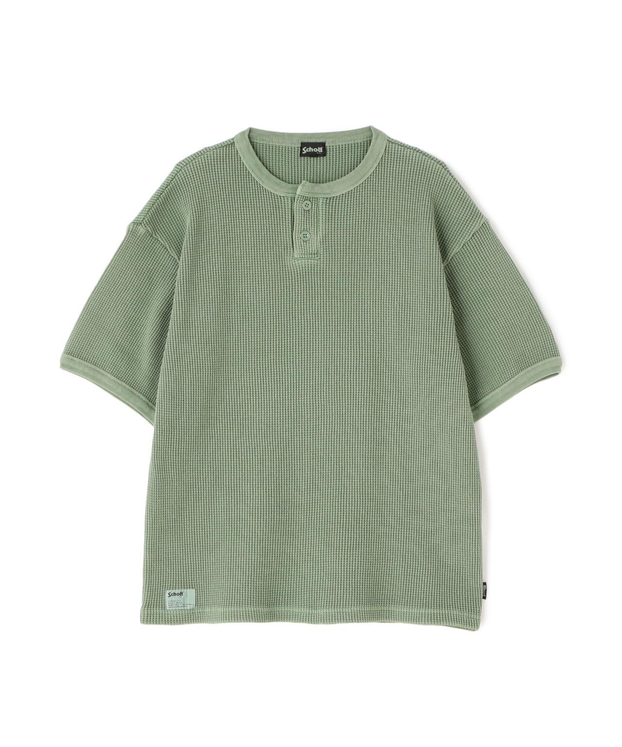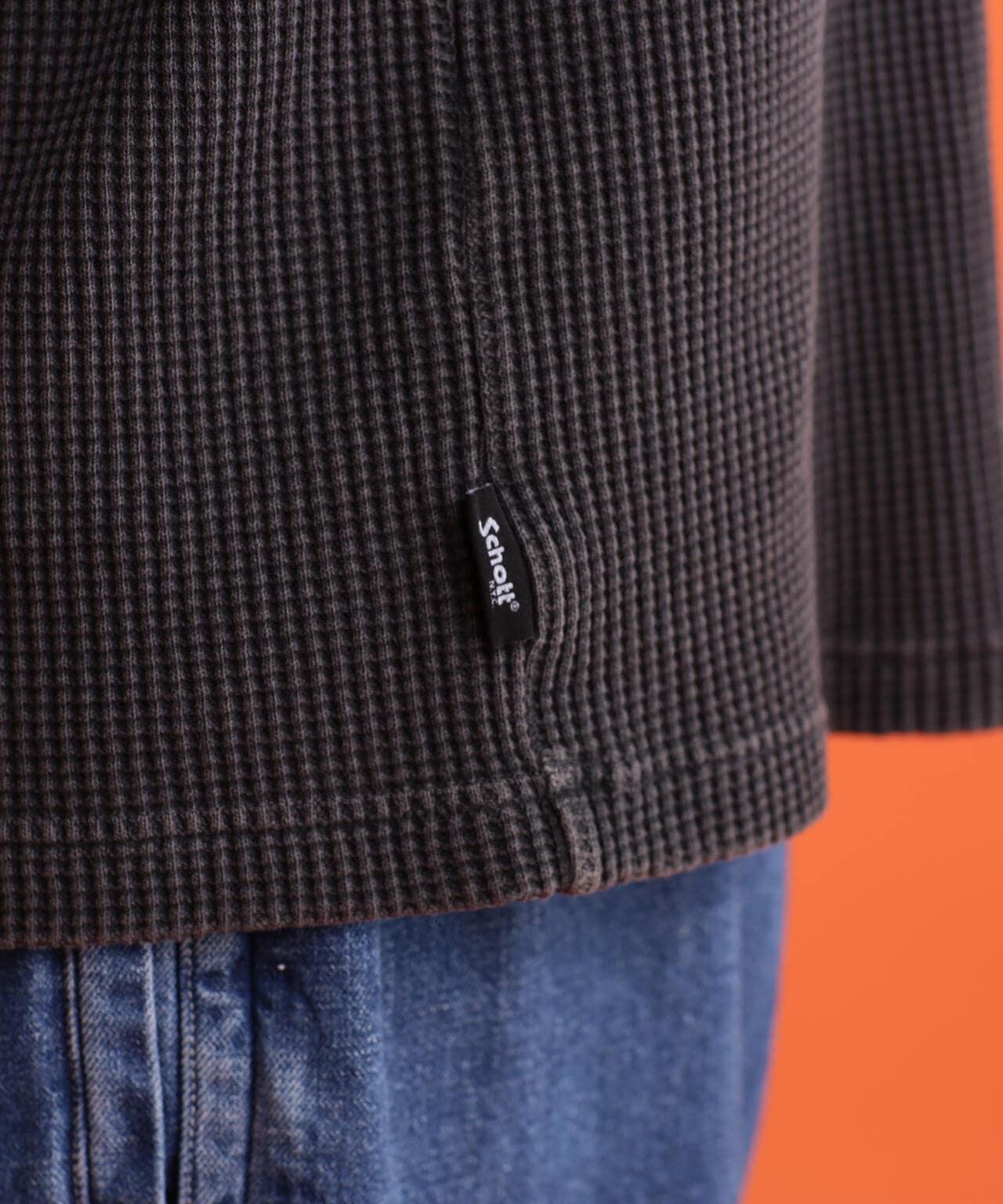13.5 盎司的華夫格 T 恤運動衫採用了第二大尺碼的較粗紗線,因此重量也很厚實,其厚度可想而知,因為它是重量級的盎司。符合當前尺碼的寬鬆剪裁是前所未有的新鮮單品。T-SHIRT 經過顏料染色,呈現出做舊的效果。設計簡潔,下襬兩處僅有一個髓質標籤。肖特] 肖特是騎手夾克的代名詞,其歷史始於 1913 年,由歐文-肖特和傑克-肖特兄弟在紐約創立。起初,他們只是一家生產雨衣的工廠,1928 年,他們成為世界上👍批使用前拉鍊的騎手。