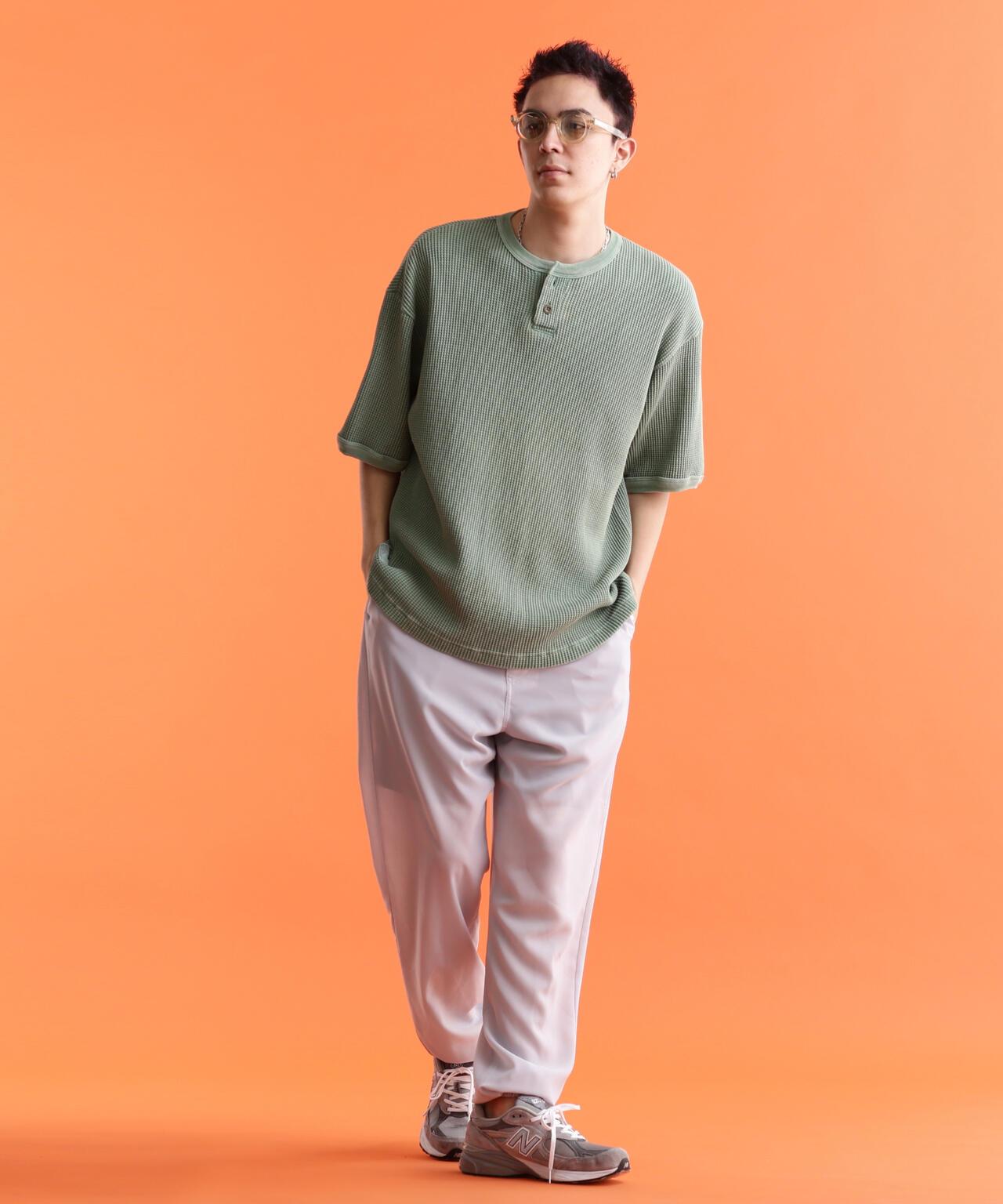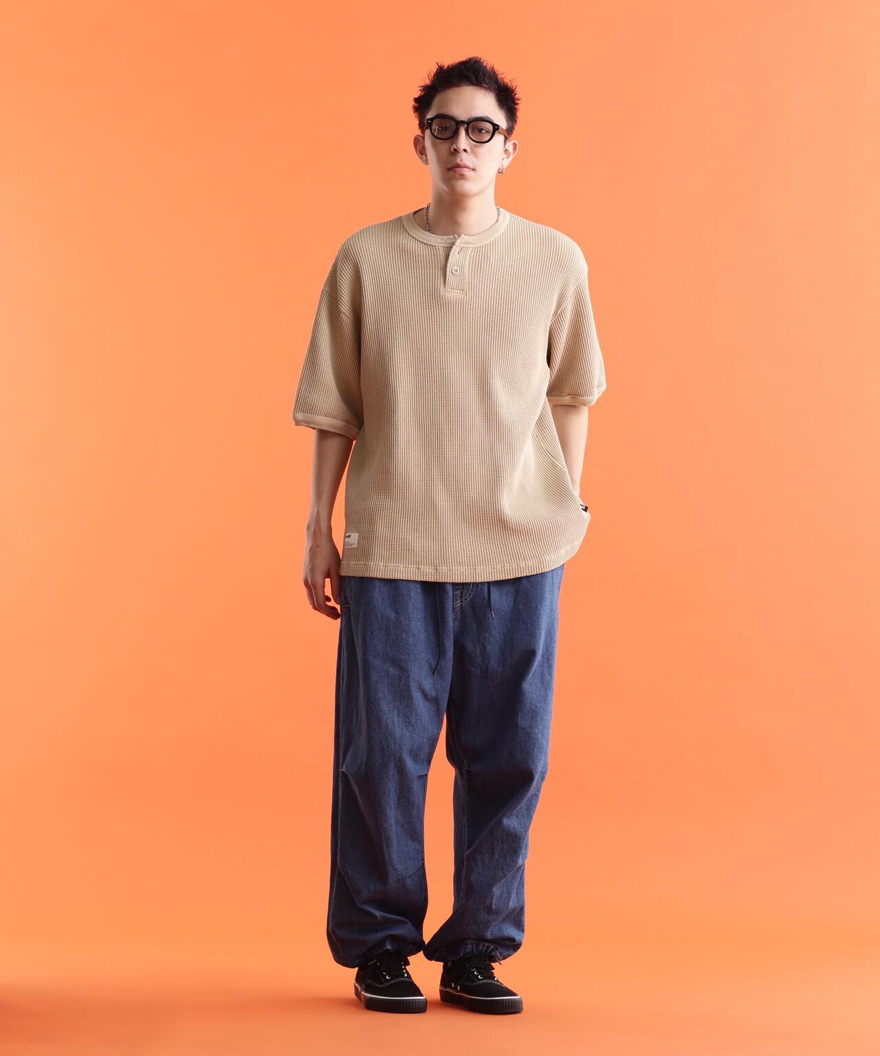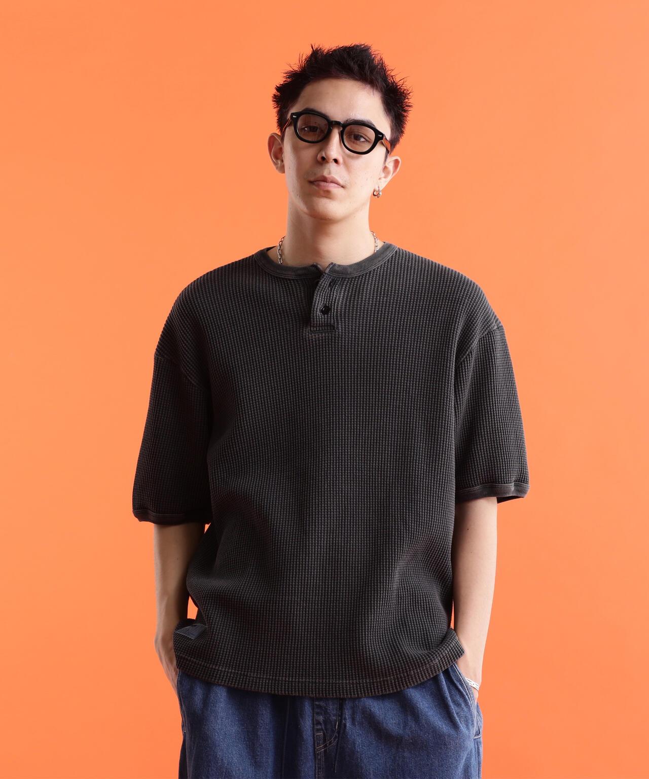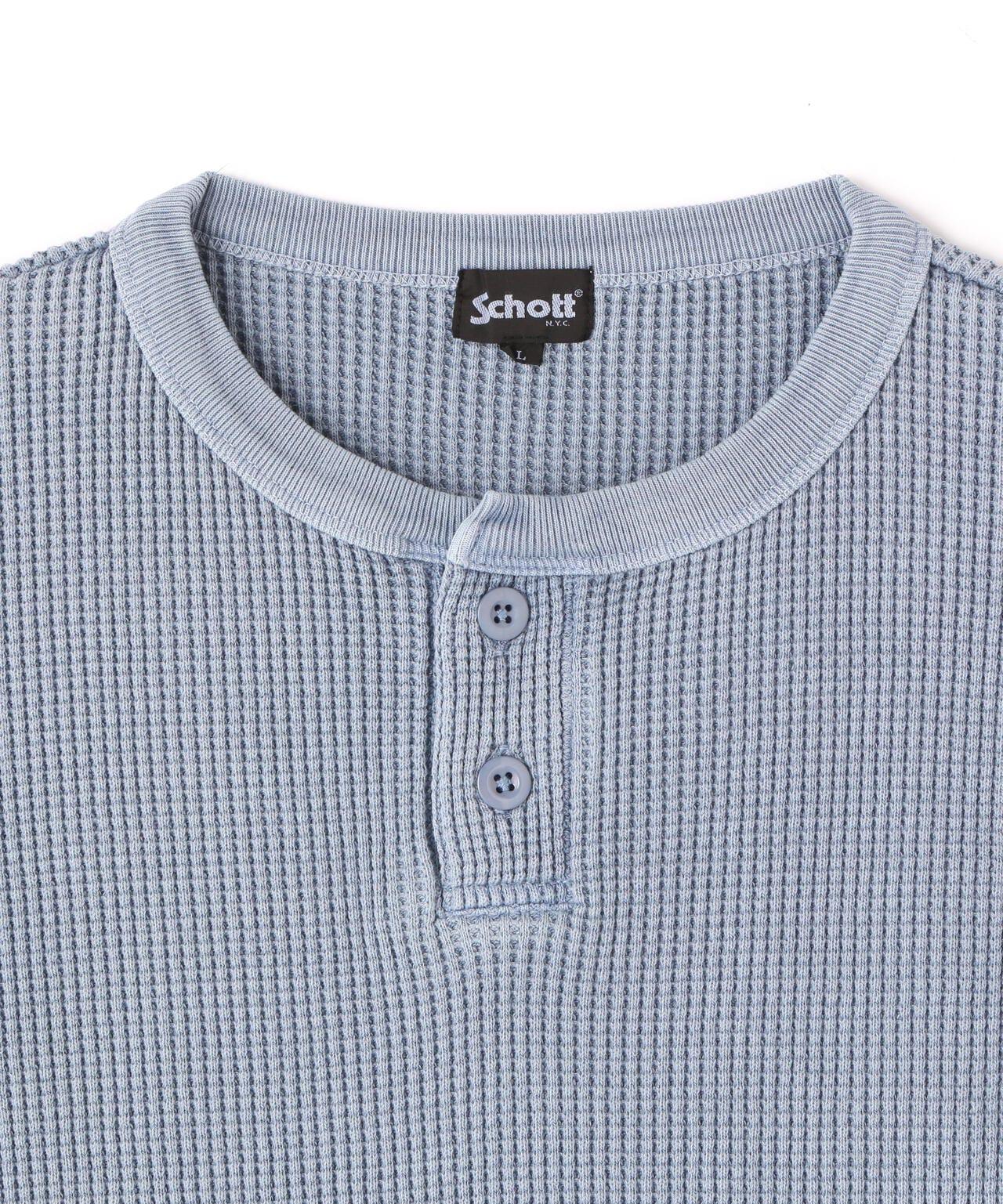 13.5 盎司的華夫格 T 恤運動衫採用了第二大尺碼的較粗紗線,因此重量也很厚實,其厚度可想而知,因為它是重量級的盎司。符合當前尺碼的寬鬆剪裁是前所未有的新鮮單品。T-SHIRT 經過顏料染色,呈現出做舊的效果。設計簡潔,下襬兩處僅有一個髓質標籤。肖特] 肖特是騎手夾克的代名詞,其歷史始於 1913 年,由歐文-肖特和傑克-肖特兄弟在紐約創立。起初,他們只是一家生產雨衣的工廠,1928 年,他們成為世界上👍批使用前拉鍊的騎手。