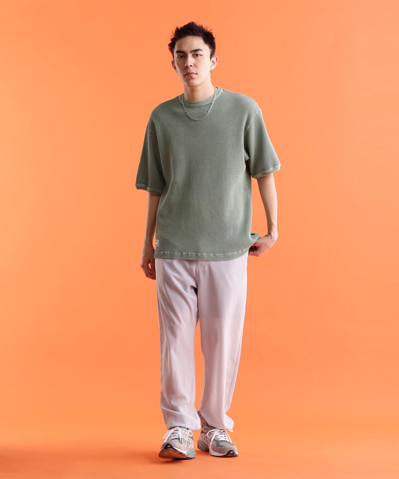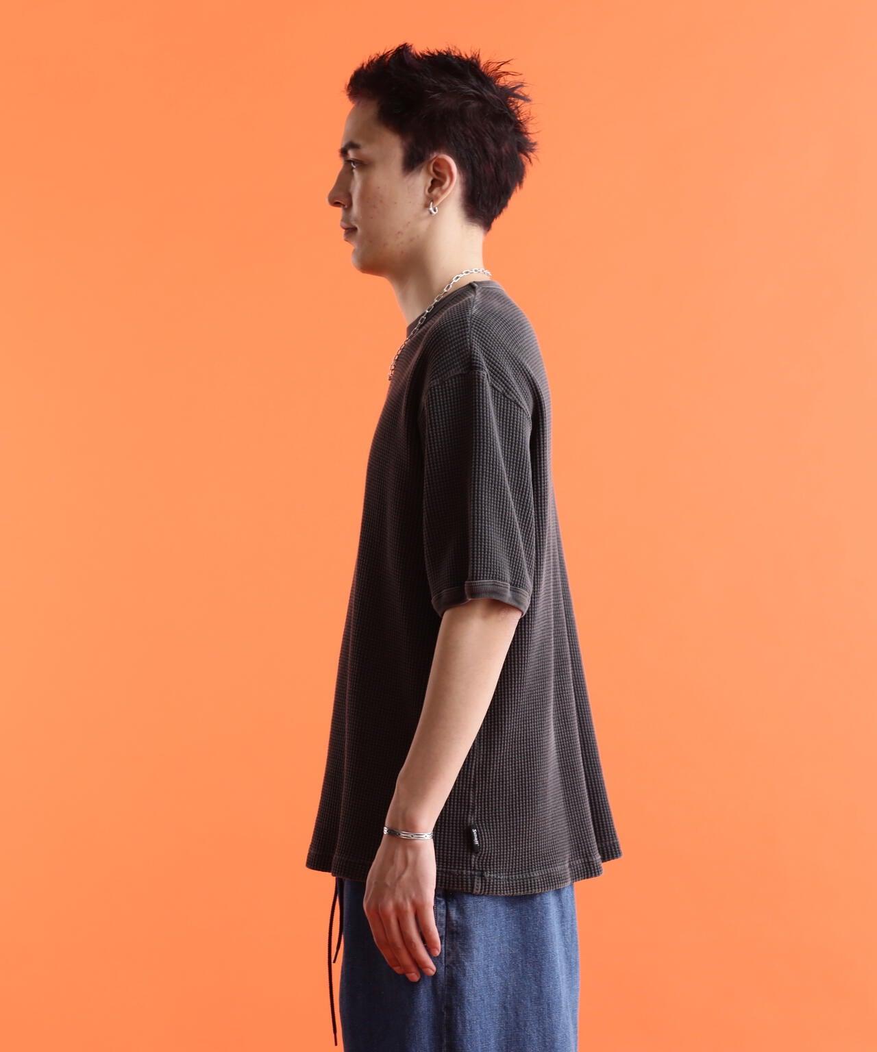 13.5 盎司的華夫格 T 恤,將第二大尺碼的較粗紗線抽在一起,重量很重。 您可以想象一下這件運動衫的厚度,因為它是重量級的盎司。寬鬆的輪廓符合當前的尺碼,是一款前所未有的新鮮產品。T-SHIRT 經過顏料染色,呈現出做舊的效果。設計簡潔,下襬兩處僅有一個髓質標籤。肖特] 肖特是騎手夾克的代名詞,其歷史始於 1913 年,由歐文-肖特和傑克-肖特兄弟在紐約創立。起初,他們只是一家生產雨衣的工廠,1928 年,他們推出了世界上👍件帶有前拉鍊的騎手夾克。